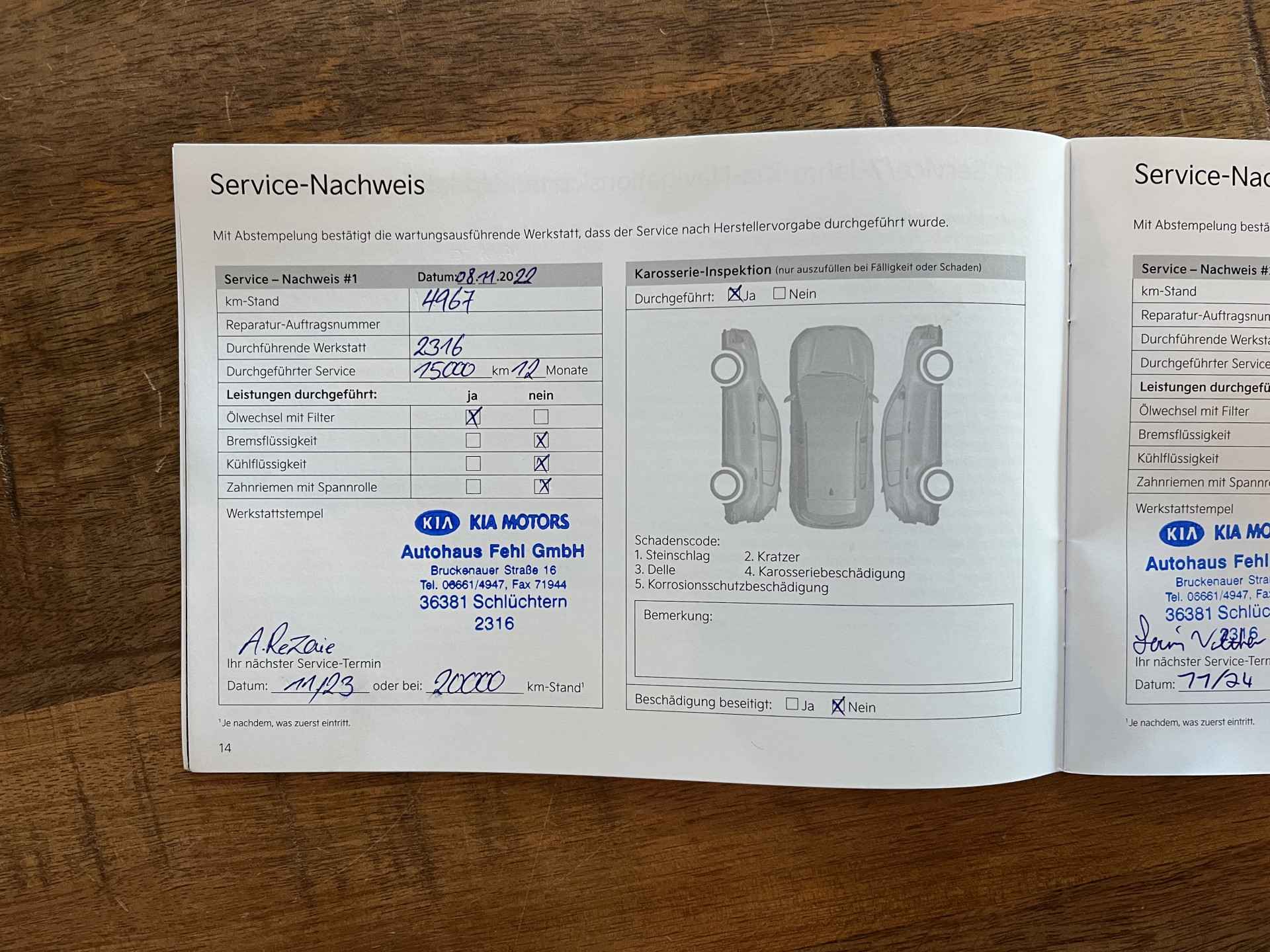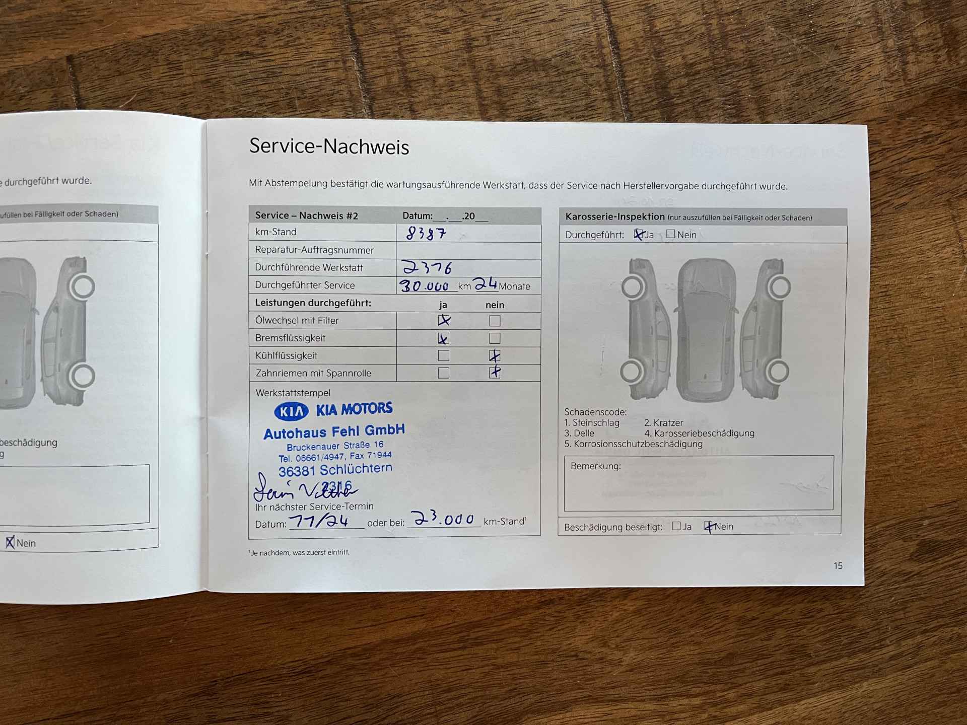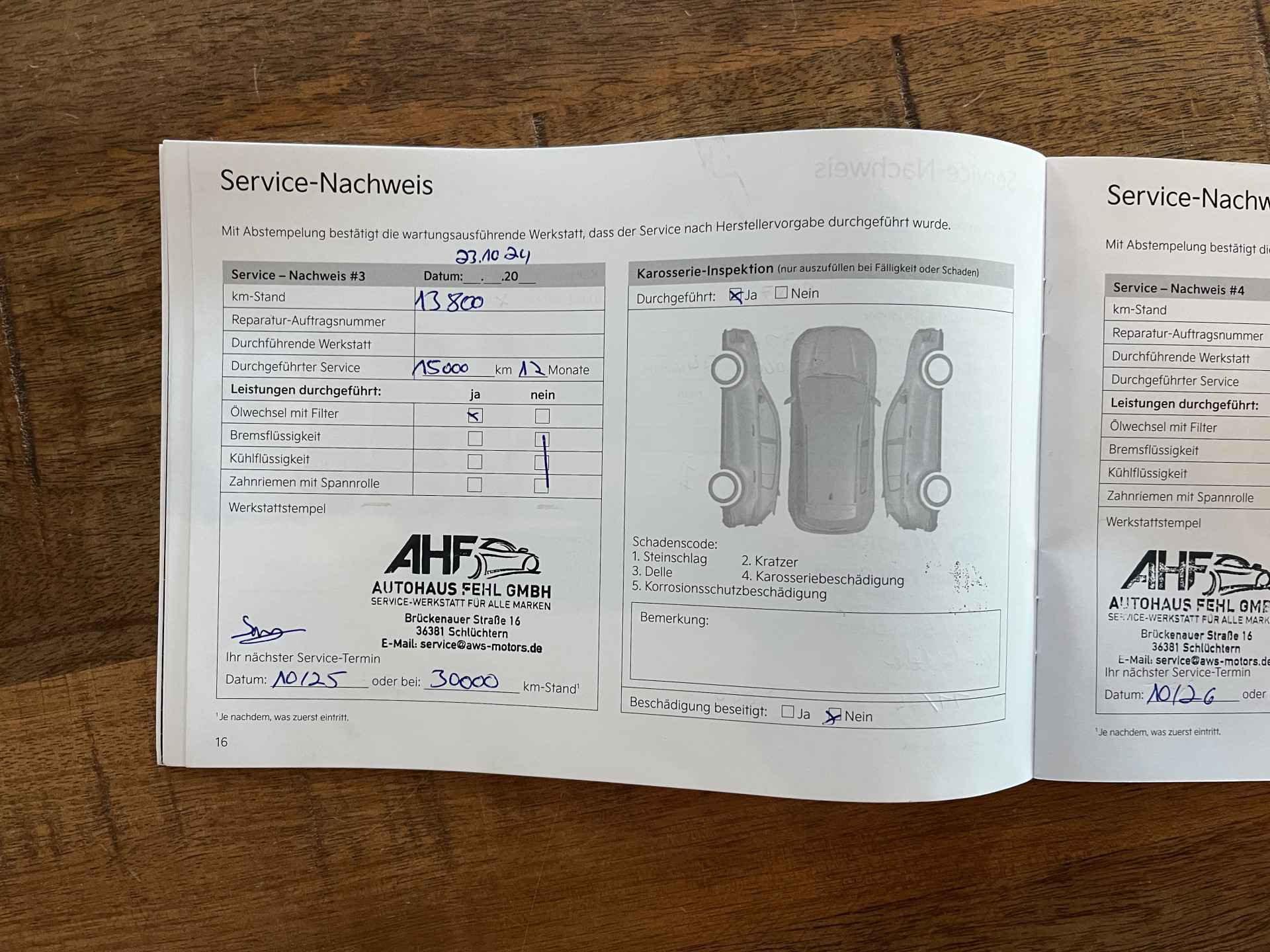 De auto heeft de volgende onderhoudsbeurten