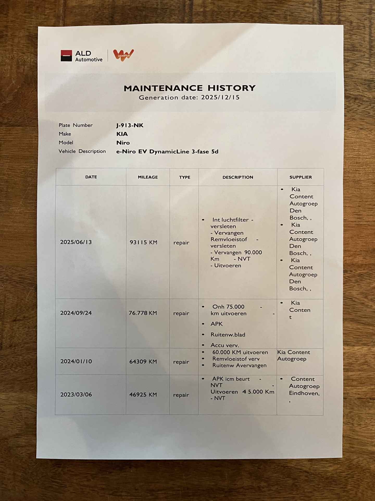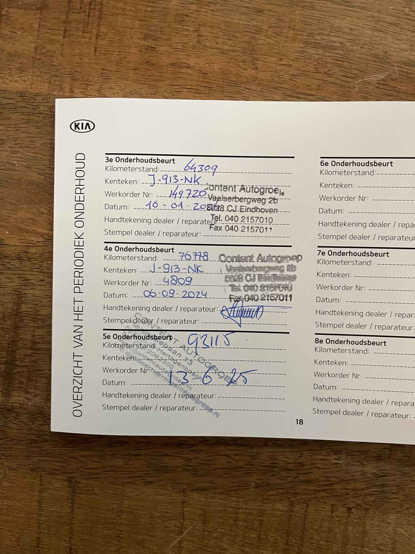 logische Nationale Auto Pas, onderhoudshistorie
