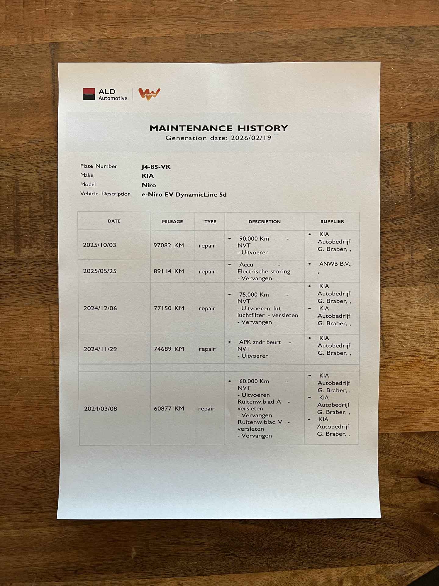 onderhoudshistorie, logische Nationale