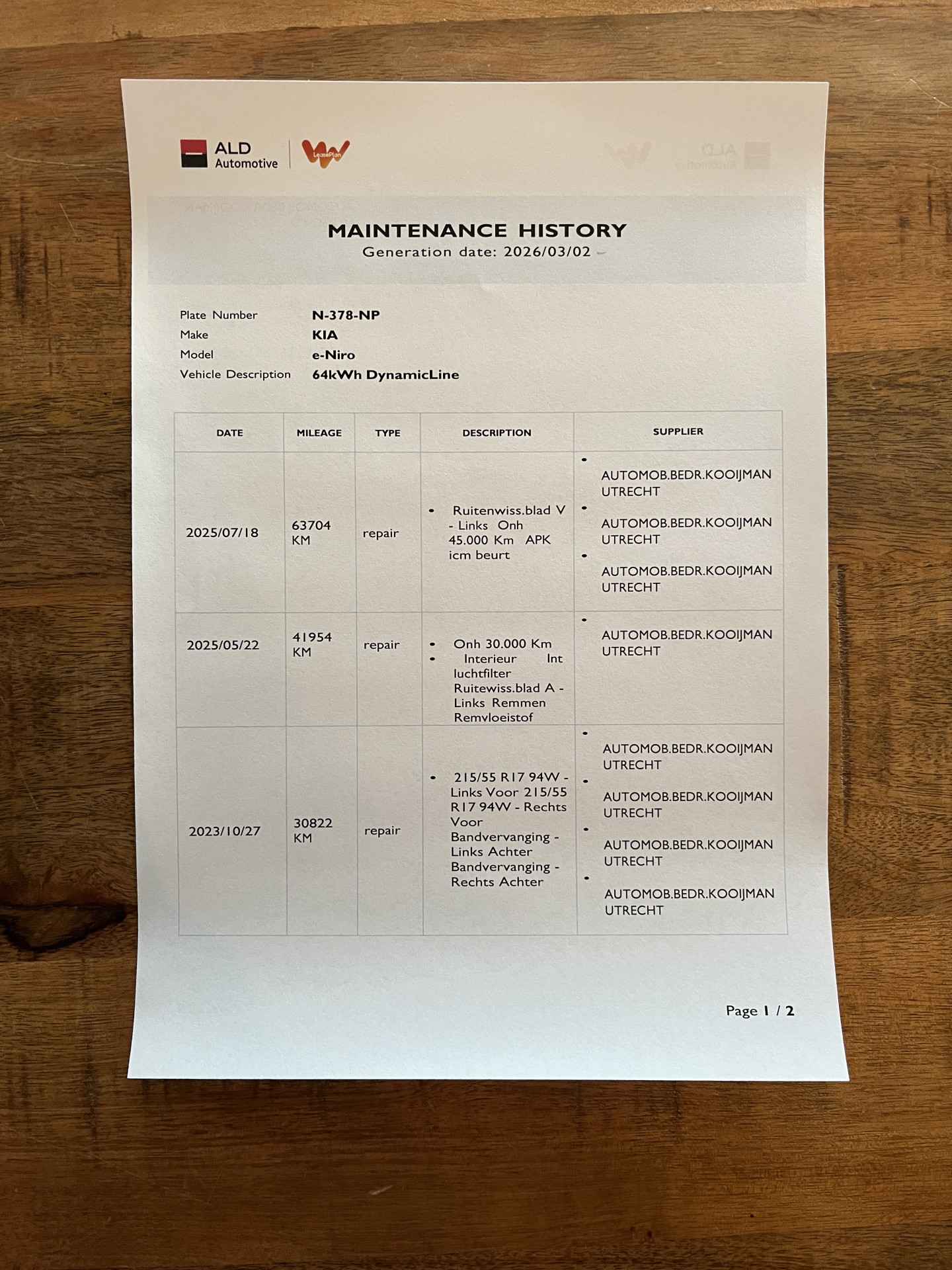 onderhoudshistorie, logische Nationale