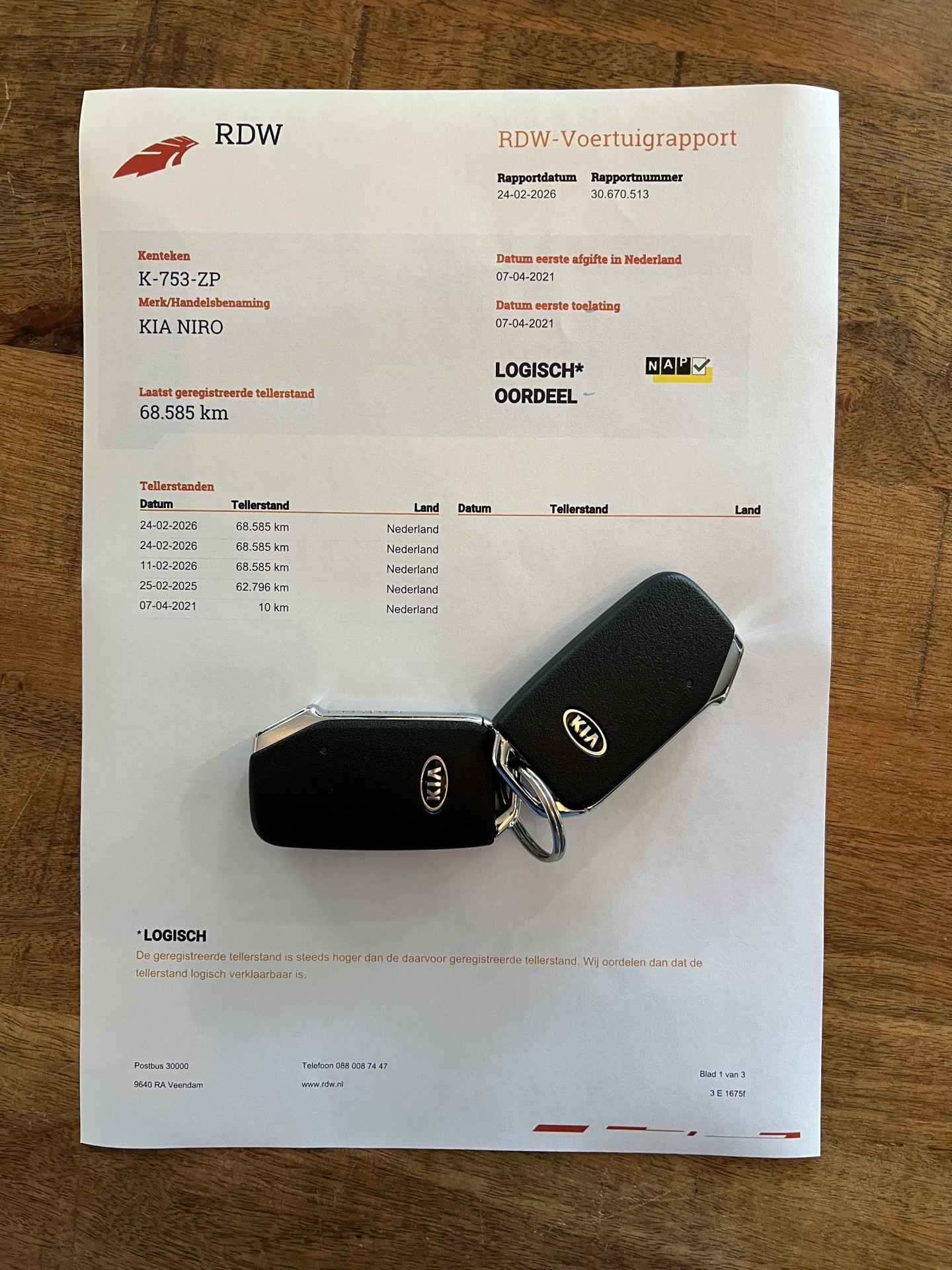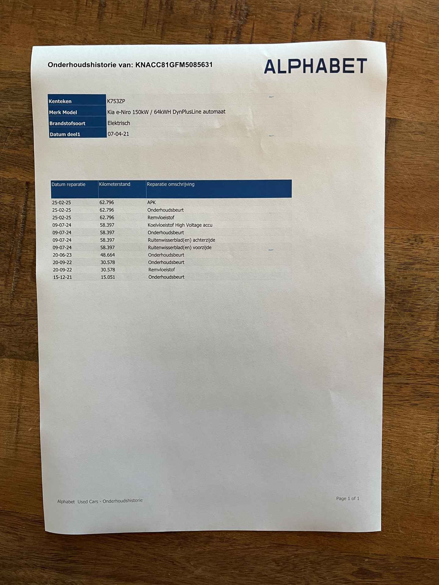 logische Nationale Auto Pas, onderhoudshistorie