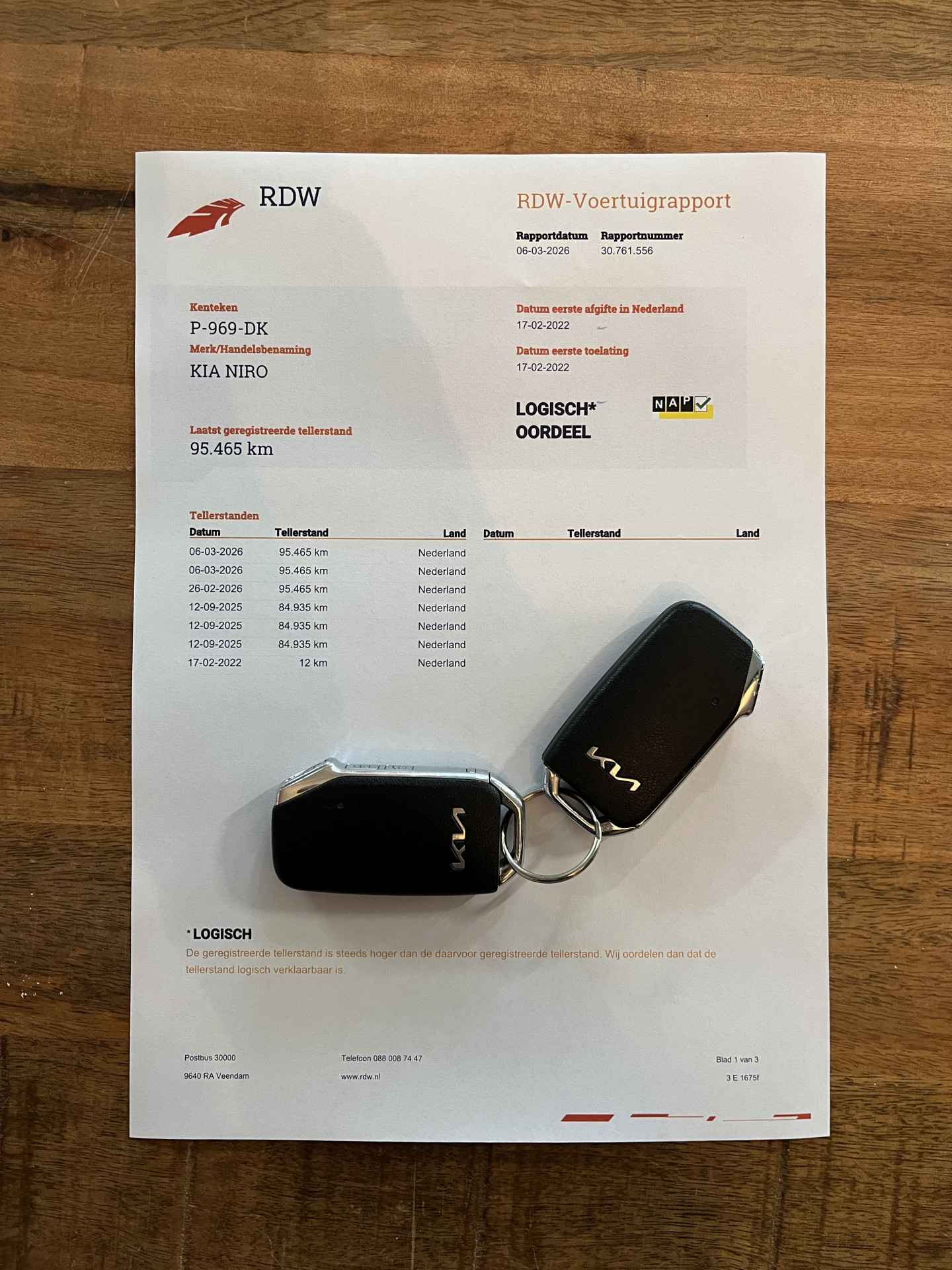 Auto Pas(NAP) en twee sleutels.