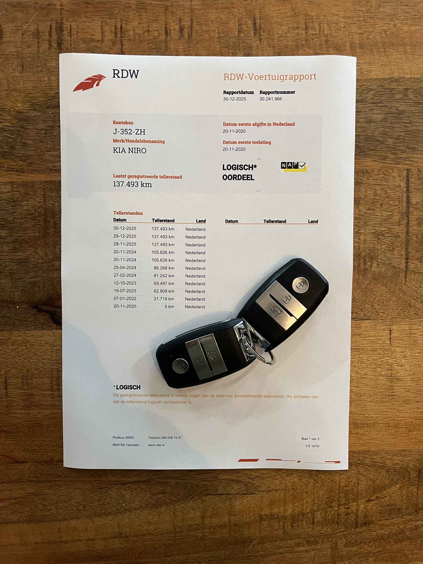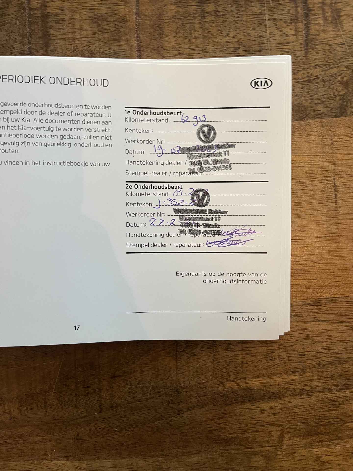 logische Nationale Auto Pas, onderhoudshistorie