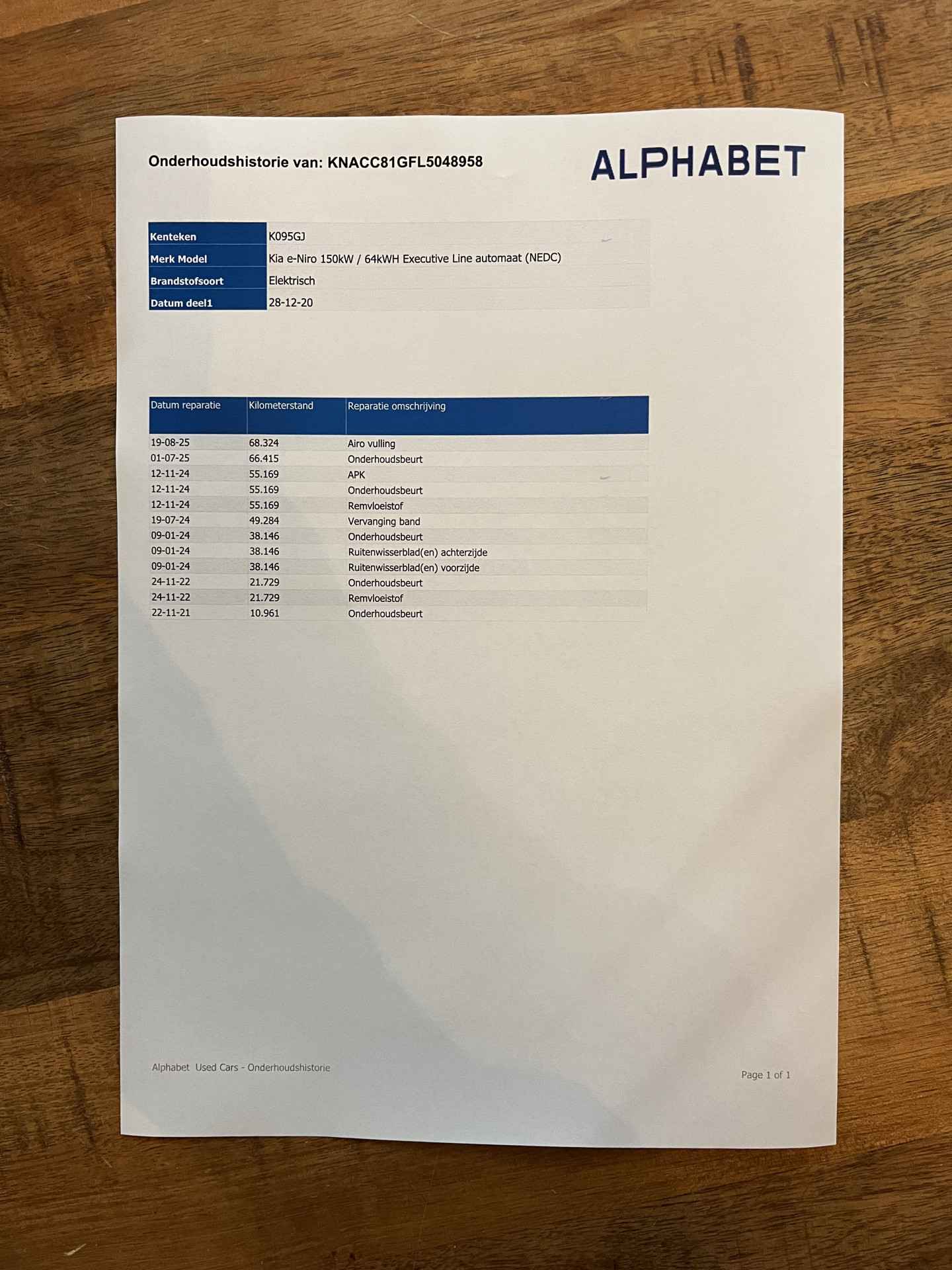 logische Nationale Auto Pas, onderhoudshistorie