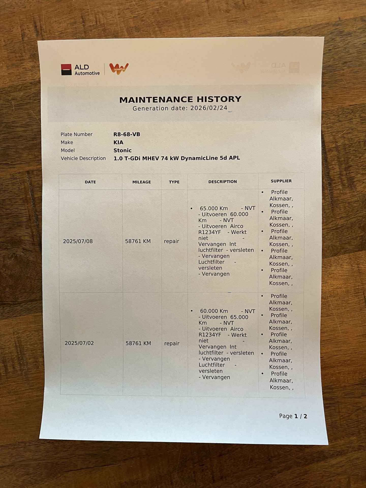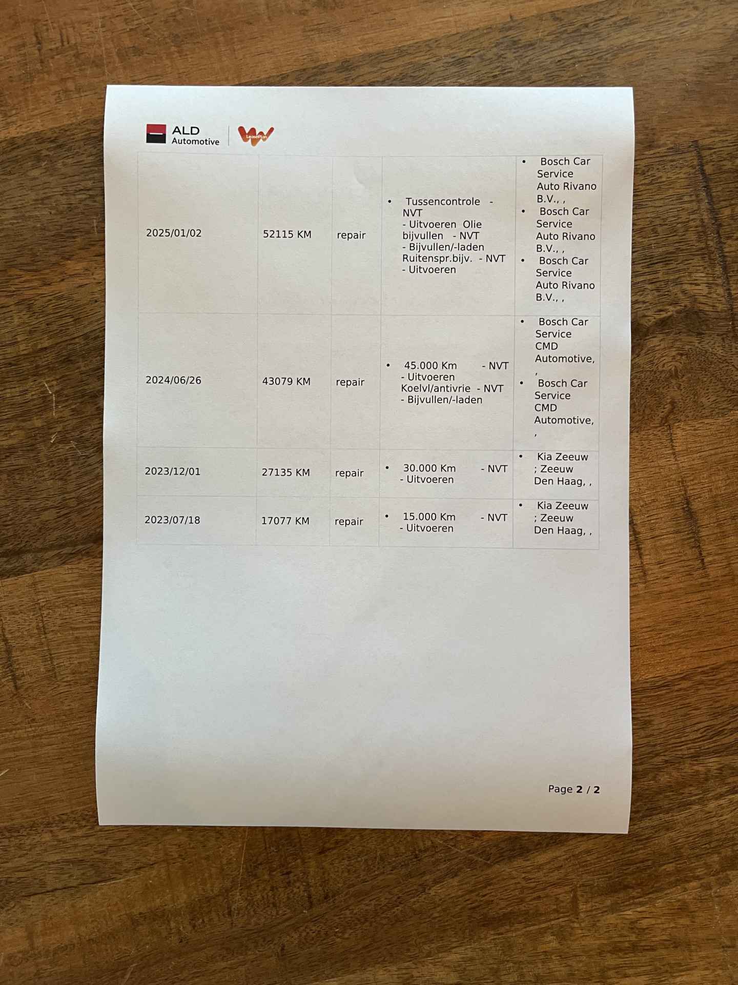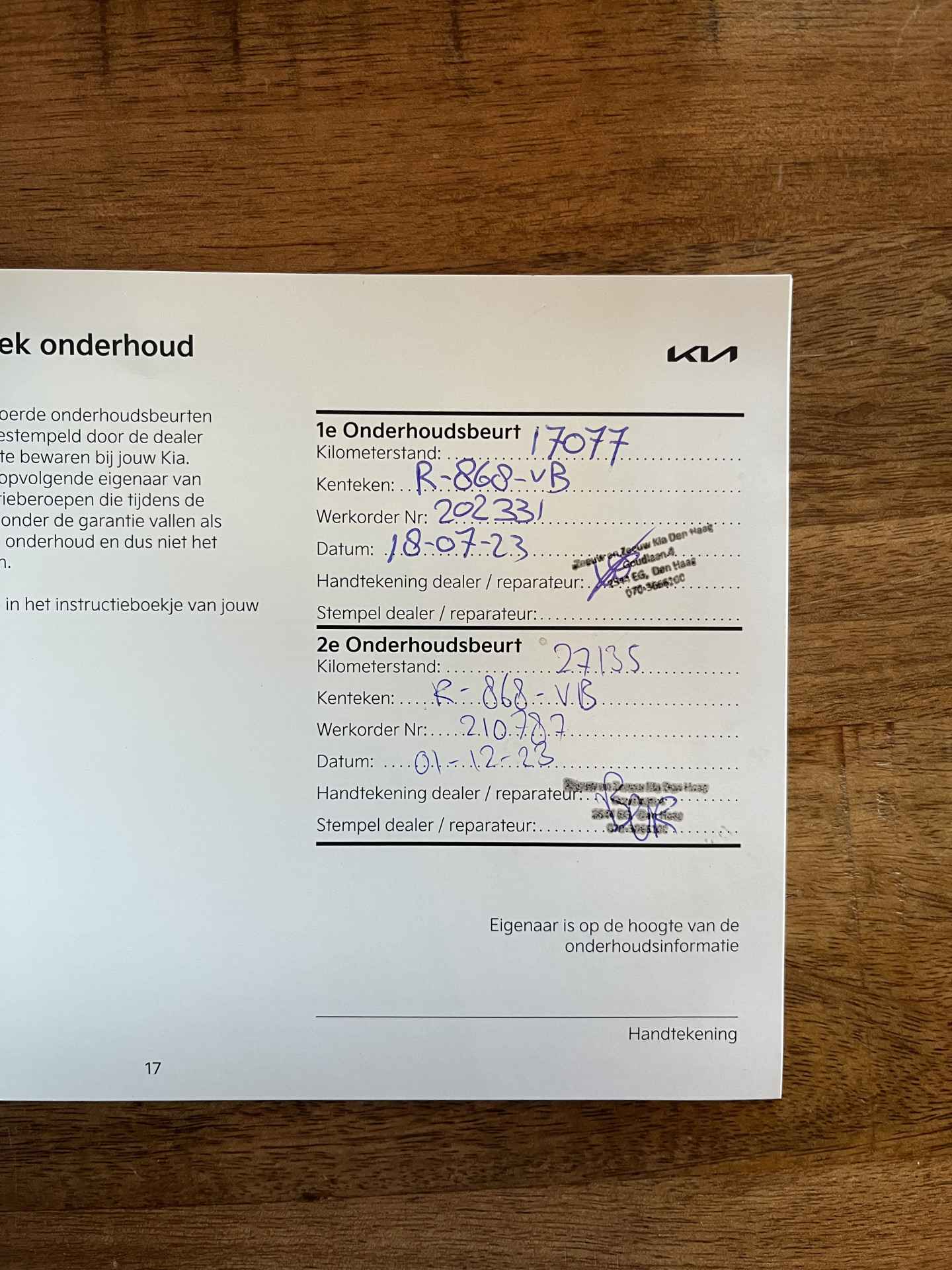 laatste onderhoudsbeurt uitgevoerd