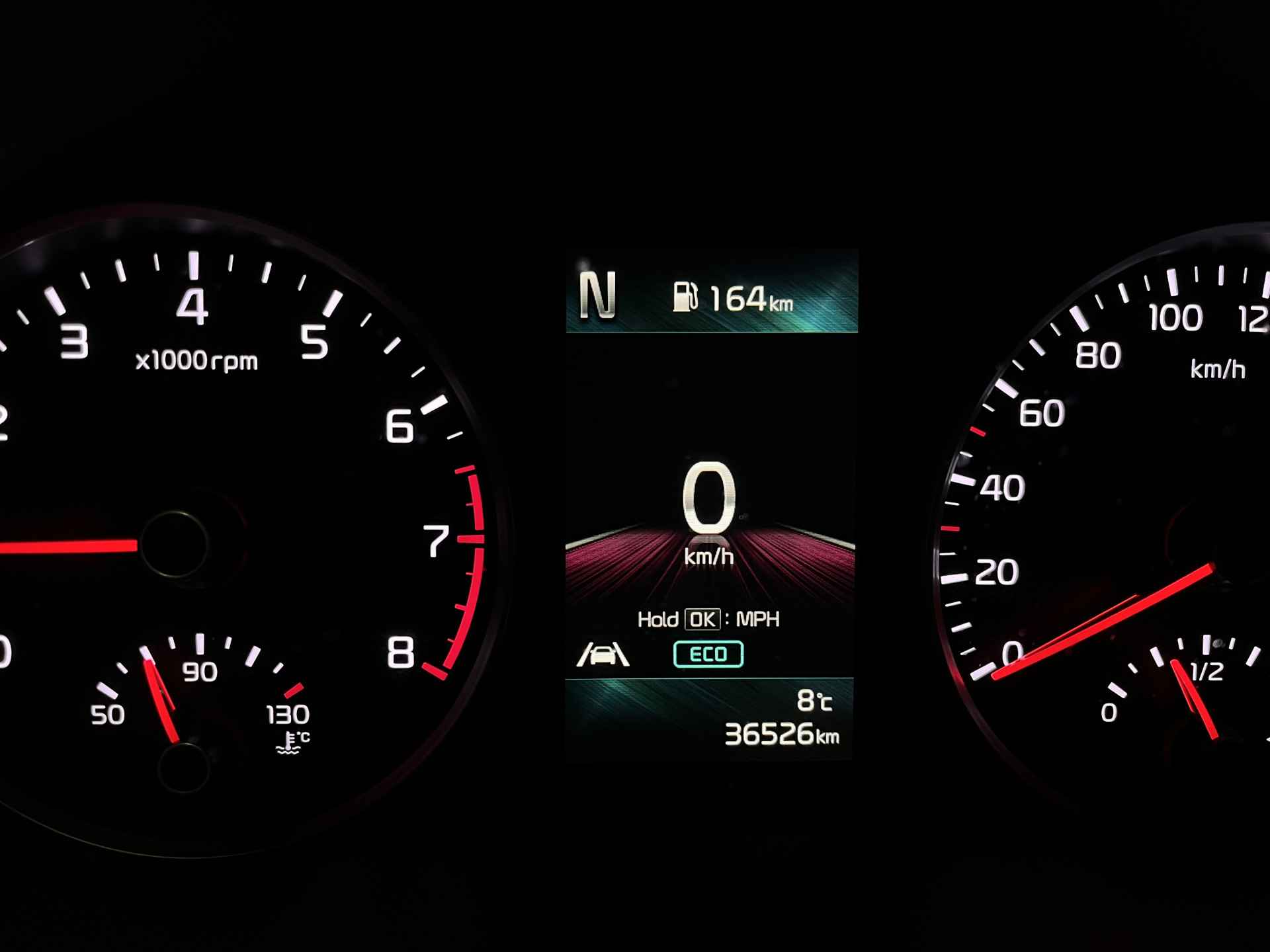 De Kia heeft een mooie lage kilometerstand,