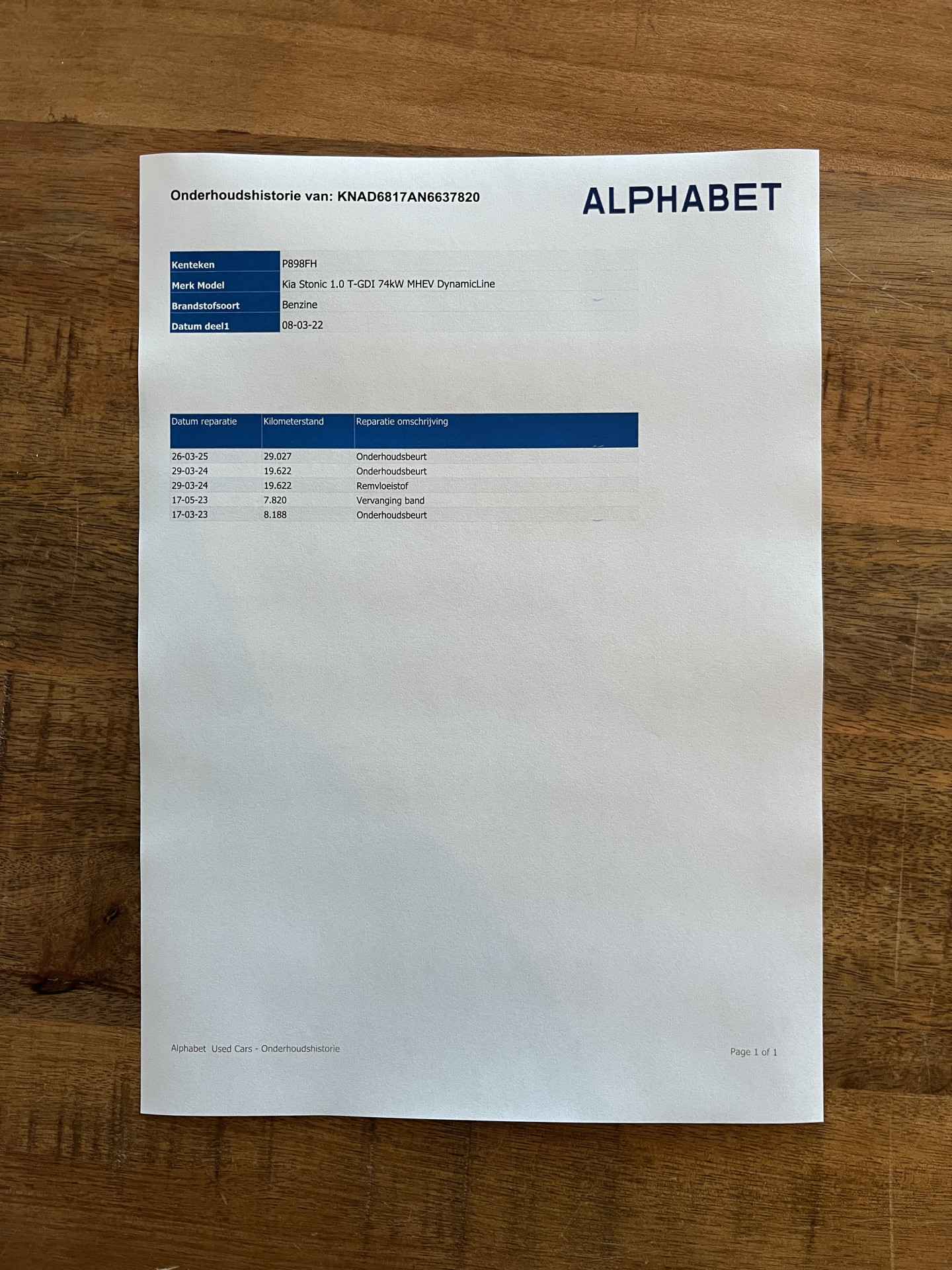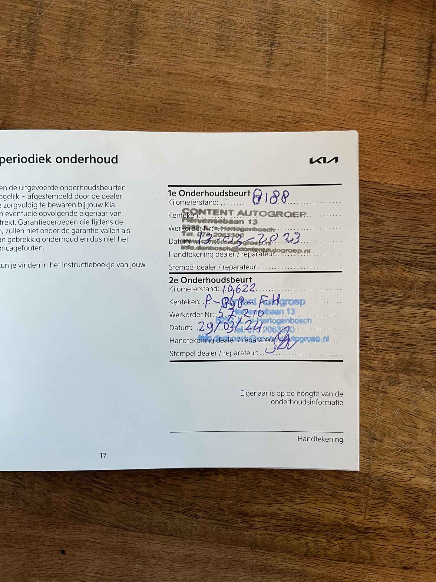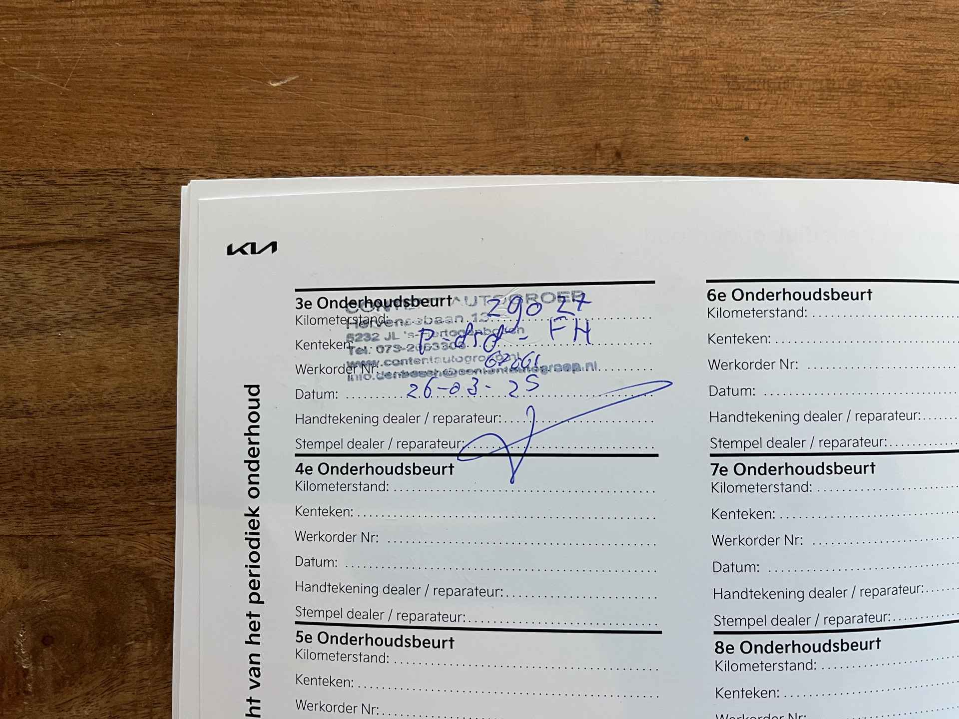 laatste onderhoudsbeurt uitgevoerd