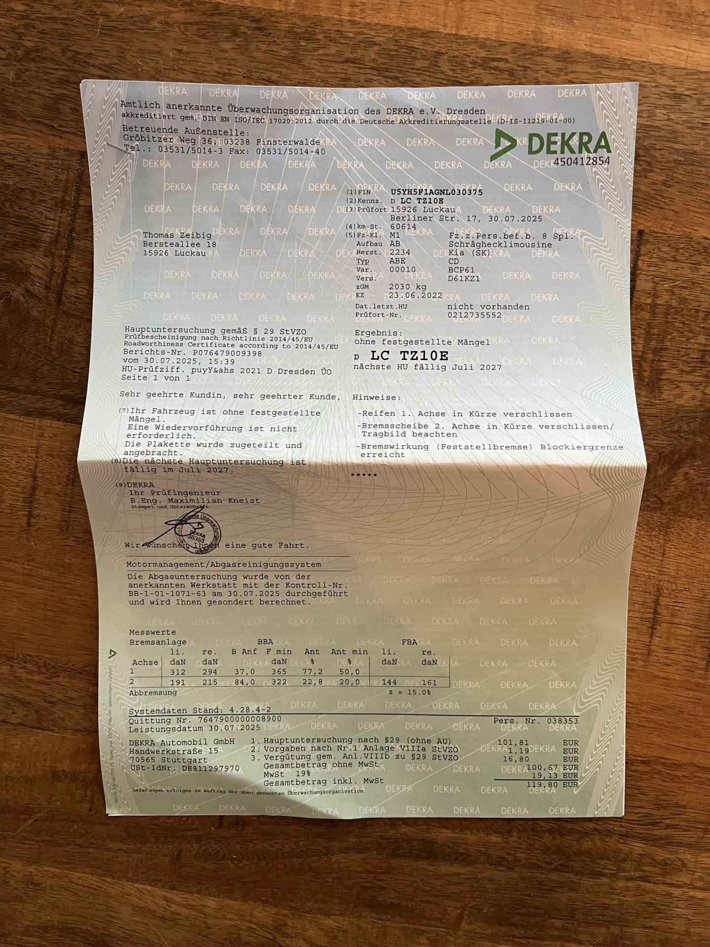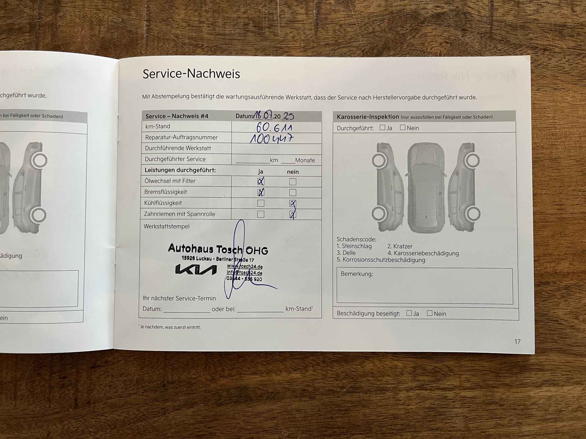 Laatste onderhoudsbeurt bij 60.611 kilometer.