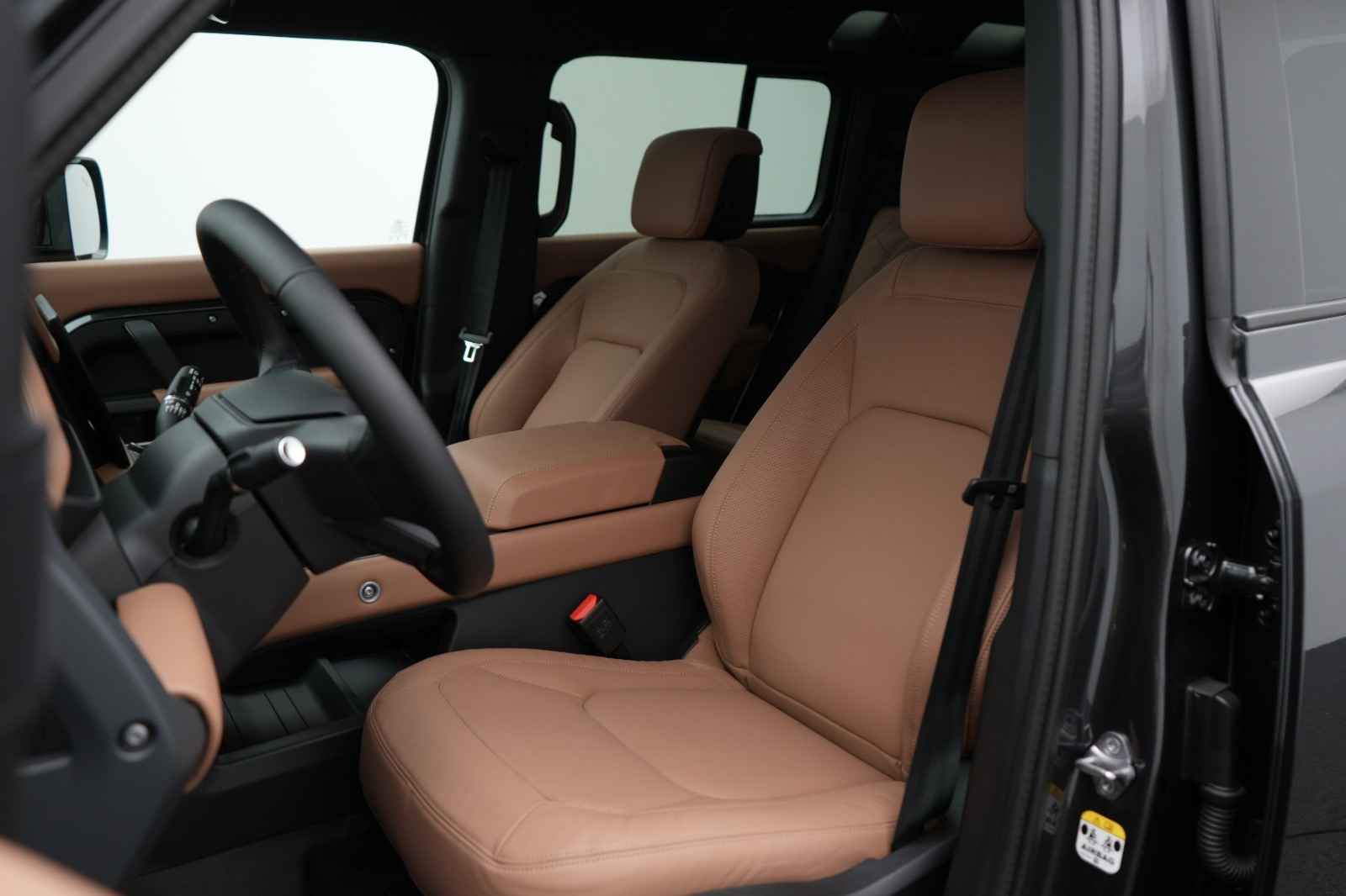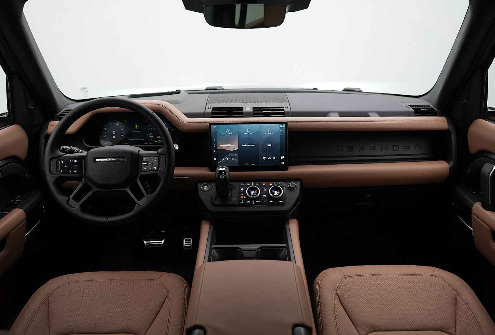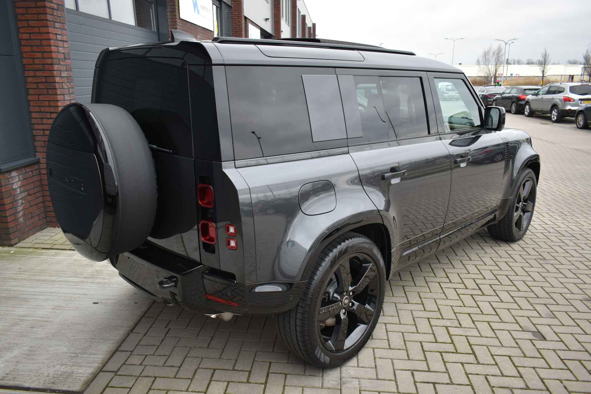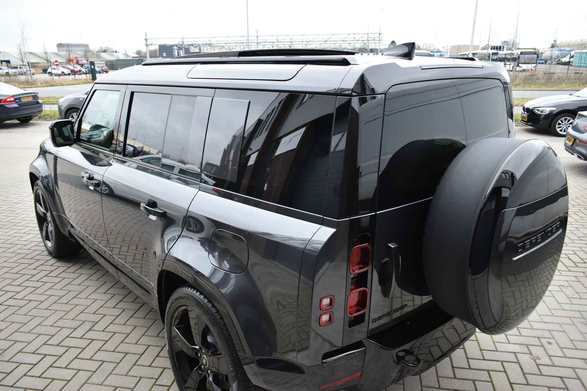 Prachtige combinatie: Carpathian Premium Grijs Metallic met Caraway-interieur. Door SV uitgevoerde Black Badge met zwarte remklauwen voorzien van Land Rover-opschrift. Volledig uitgeruste Defender, een absolute must-have voor liefhebbers!