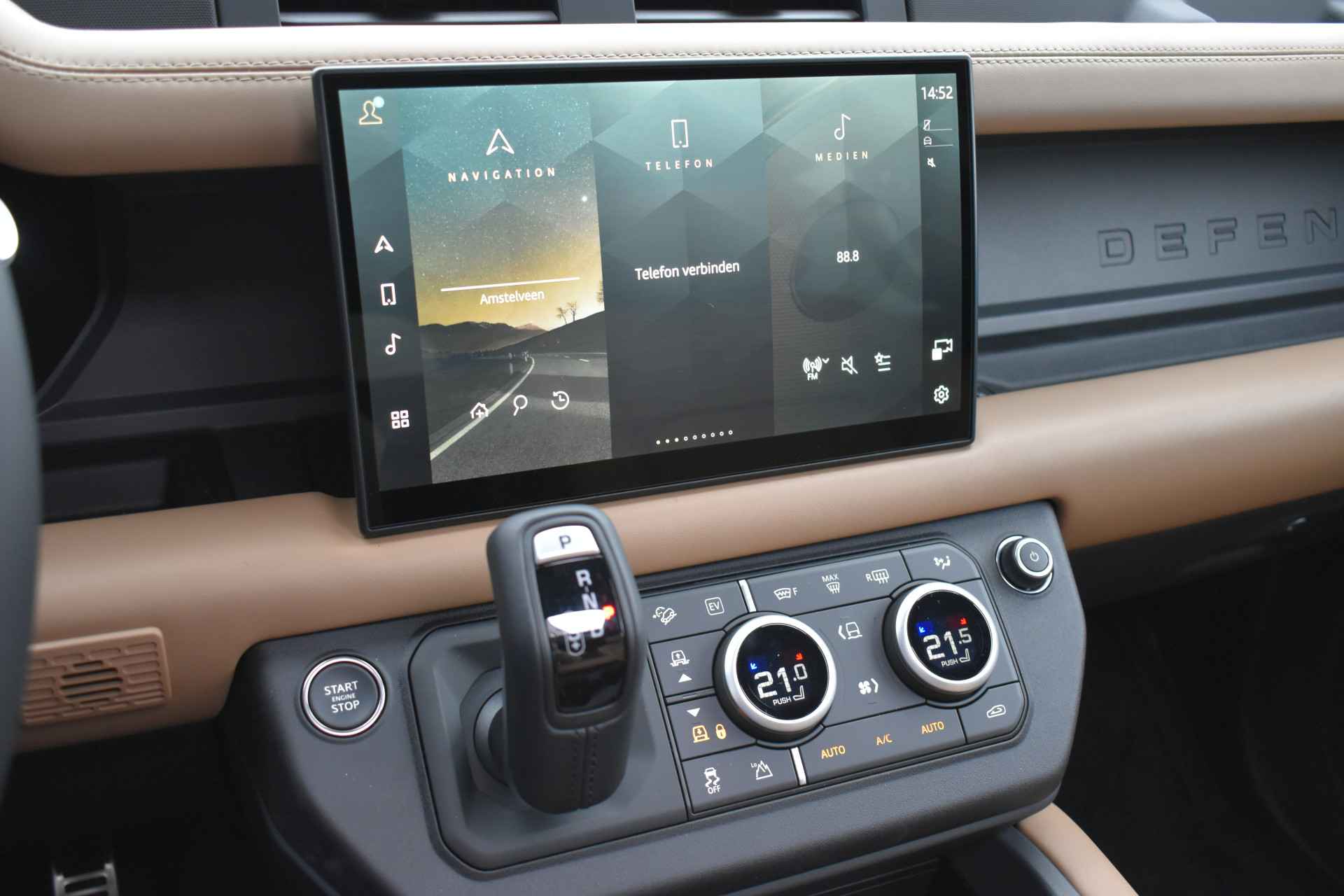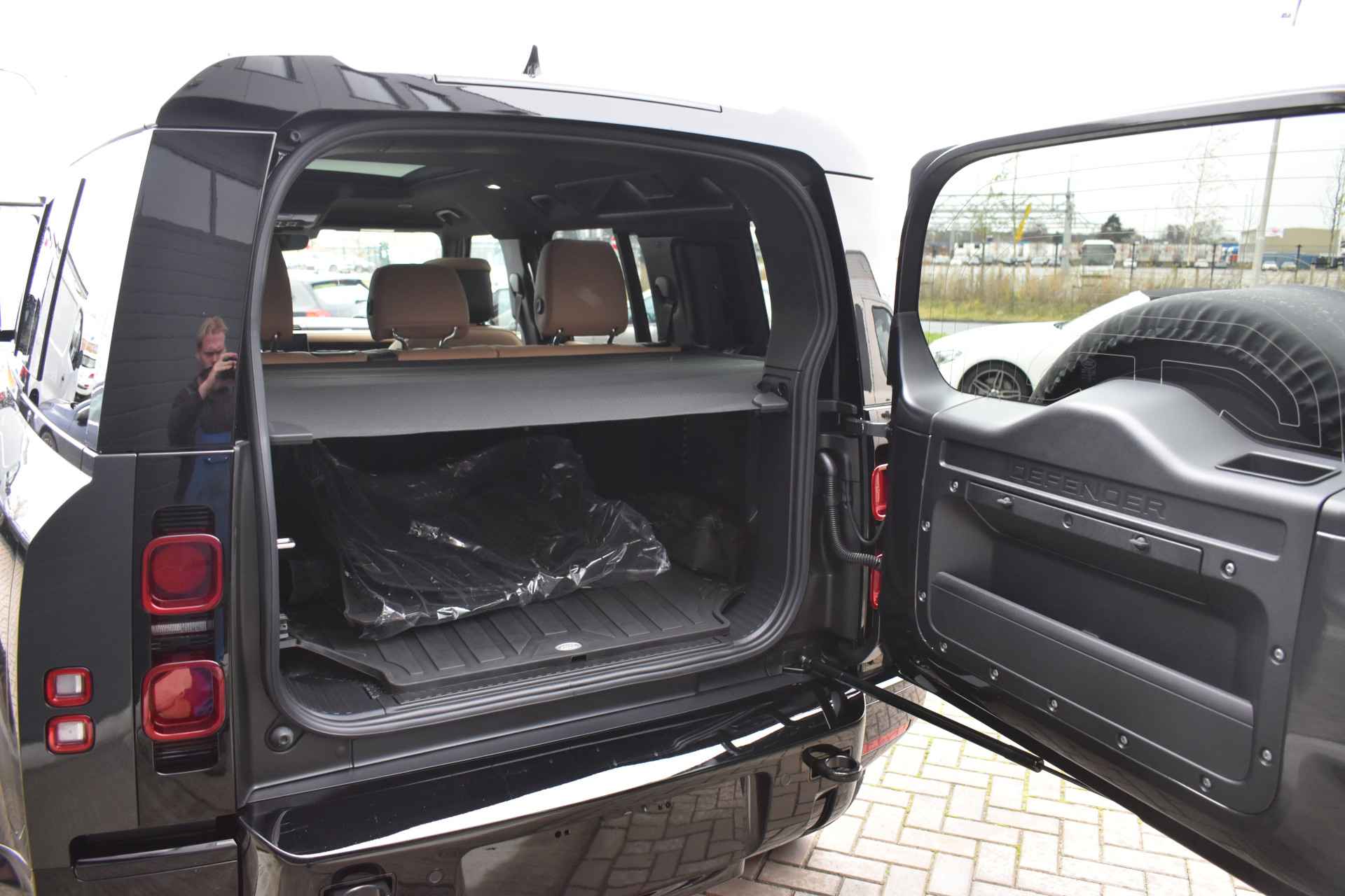 NH Opties 022 BG 3 Zonen Climatronic 022 FA Luchtkwaliteit sensor 022 GH Luchtkwaliteit Plus voor interieur 025 CT Garage deur opener[Homelink] 028 LD Trekhaak automatisch in – en - uitklapbaar 039 IB Head Up Display 045 CB Koelkast in middenconsole front 048 BD Instaplijsten voor portieren verlicht met Defender schrift 027 BI Winterpakket 032 DV Stuurwielverwarming 040 AK Voorruit verwarming 040 AQ Ruitensproeier reservoir verwarmd 064 BV Koplamp reiniging systeem 075 QD Uitgebreid Black Exterieur pakket 245 AD Langsdrager dashboard in Dark Grey, geborsteld donker grijs 328 AD Reservewiel afdekking 188 HD Ebony zwart hemelbekleding 070 BC Soft Close achterdeur 086 GP Surround camerasystem 087 AW 11.4 Inch Touchscreen 031 SZ 22 Inch lichtmetalen Velgen Style 5098 in Gloss Black 041 CZ Panorama Schuifkantel dak 000 00 Black Badge uitgevoerd 000 00 Remtangen in zwart uitgevoerd met Land Rover schrift VPLWS0475 Pedalenset aluminium