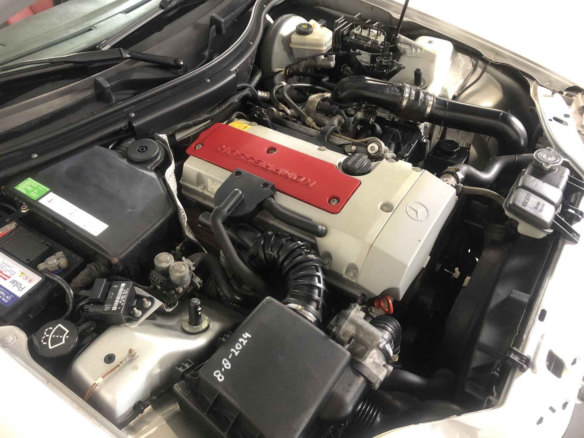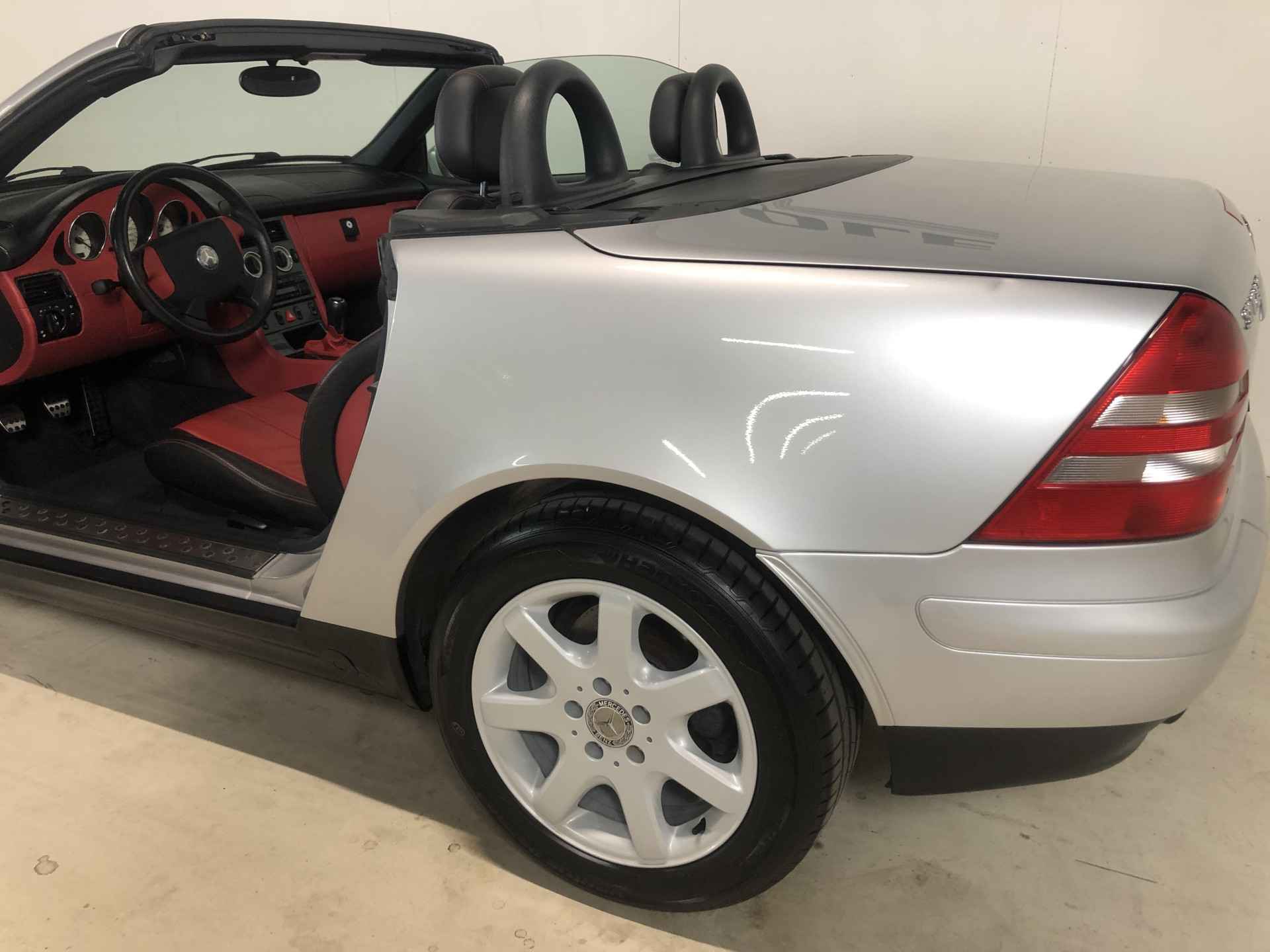 Deze hier gepresenteerde SLK is een 230 Kompressor met 193 pk en een top snelhied van 231 km/h en heeft dus voldoende vermogen om goed mee te komen. Deze auto een een origineel Nederlandse uitlevering met handbak maar heeft enige tijd stil gestaan en daarom slechts 28.000 km gereden!! Onder de motorkap zie je daarom een bijna nieuwe motor. Vervolgens heeft de auto een grote beurt gehad waarbij er nieuwe banden zijn gemonteerd, een nieuwe brandstolpomp is geinstalleerd en de remschijven en blokken zijn vervangen. Verder is de distributieriem vervangen en het klapdak gerepareerd. Nu staat er bijna een nieuwe auto klaar voor de koper met echt maar 28.000 km !!