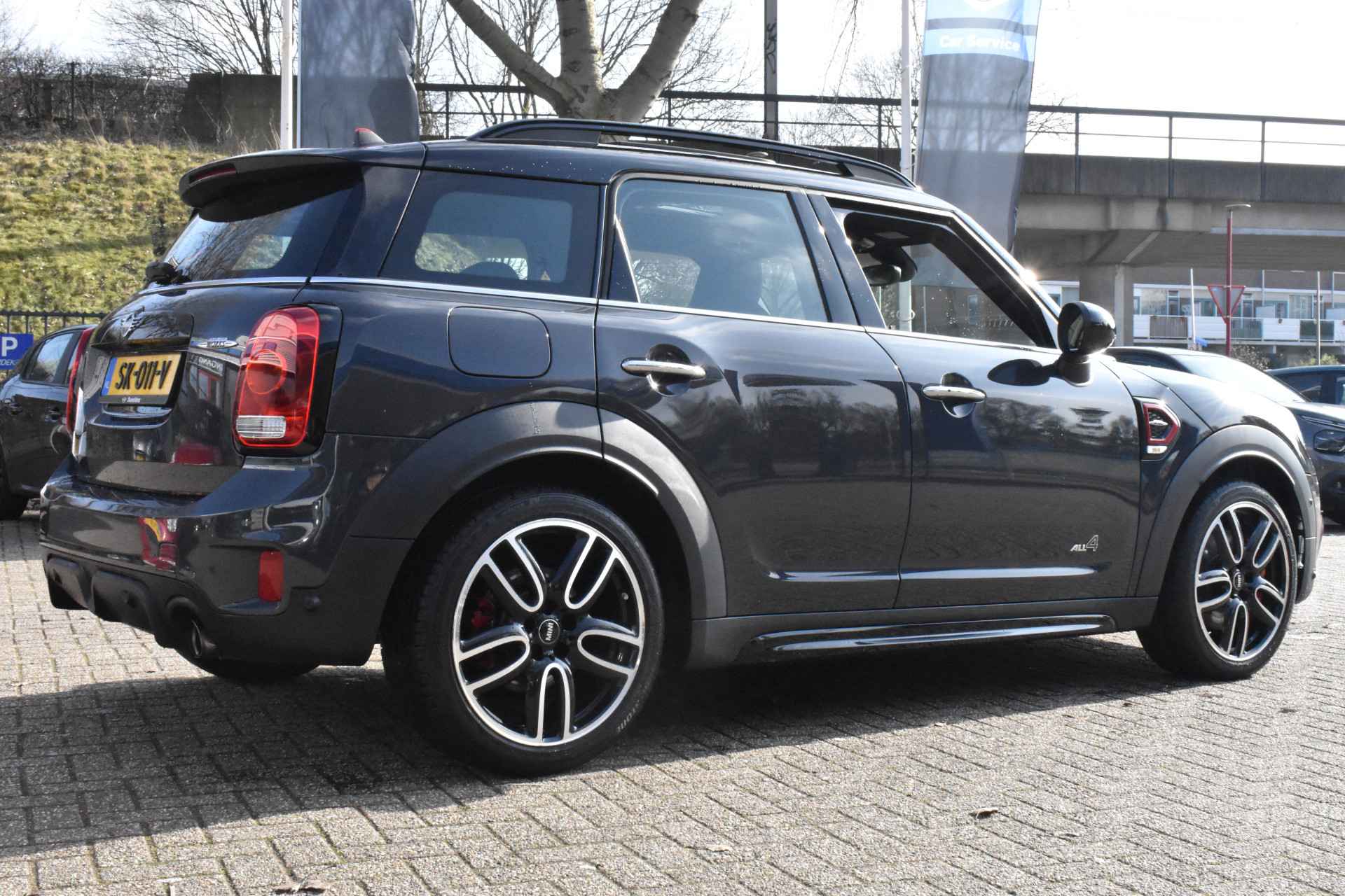 Wat een plaat van een wagen, de Mini Countryman 2.0 John Cooper Works ALL4! Origineel Nederland geleverd, volledige historie aantoonbaar (100% onderhouden). Deze Countryman is voorzien van een elektrisch glazen schuif/kantel-dak, Navigatie, Parkeersensoren voor en achter, de stoere 19 inch lichtmetalen velgen, Sfeerverlichting, Keyless entry en start en natuurlijk nog veel meer. Kom he m