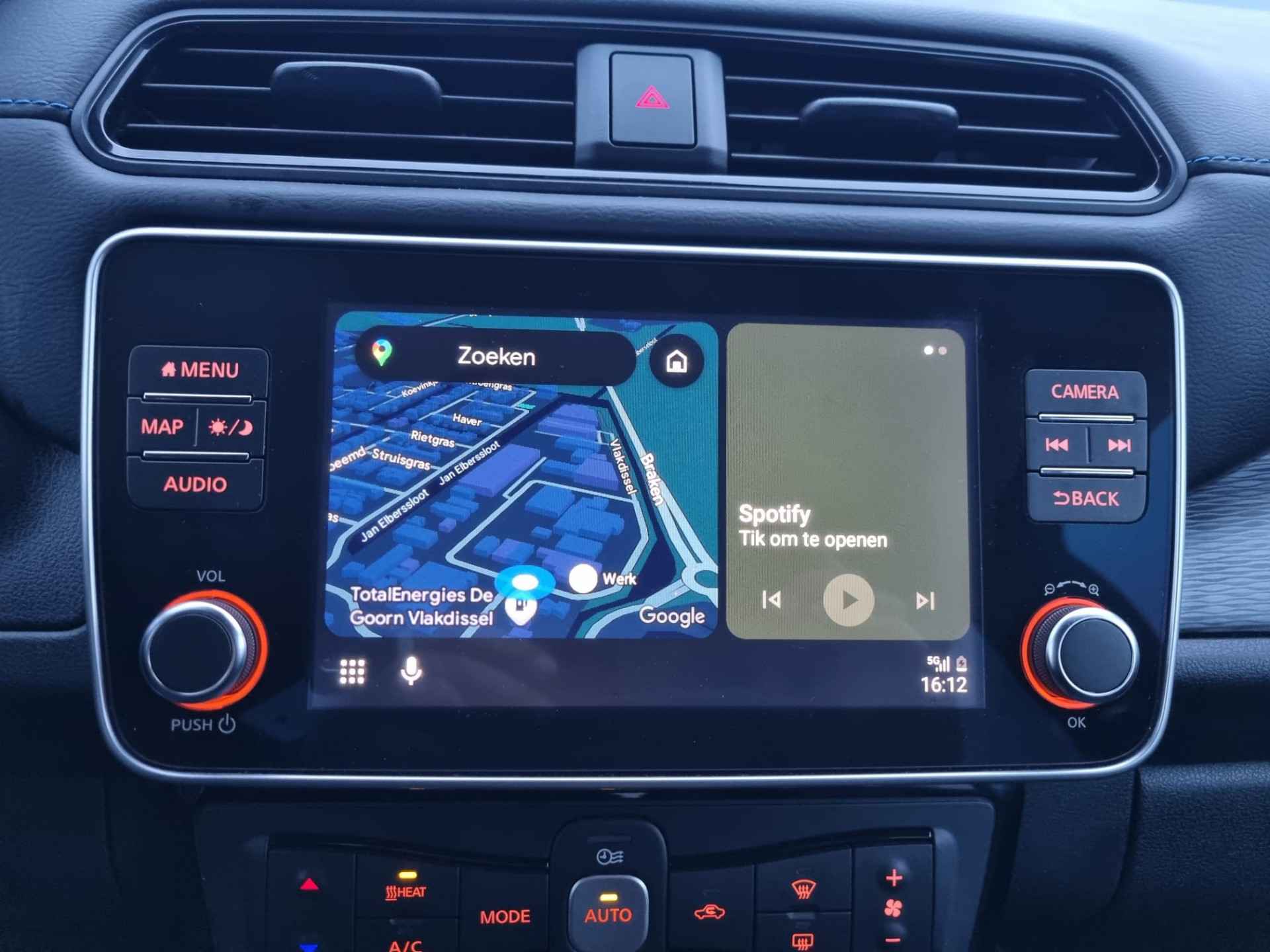 Deze volledig elektrische Nissan Leaf is rijk uitgerust en verkeert in een nette en goed onderhouden conditie. De auto beschikt over een accu met een SOH van maar liefst 95%, wat garant staat voor een gezonde batterij en betrouwbare actieradius. Dankzij de zeer luxe uitvoering geniet u van o.a. Apple CarPlay/Android Auto, stoelverwarming vóór én achter, stuurverwarming, een 360 graden camera en adaptieve cruise control. Dit zorgt voor maximaal comfort en veiligheid tijdens elke rit. Elektrisch rijden betekent daarnaast lage gebruikskosten en een stille, soepele rijervaring.