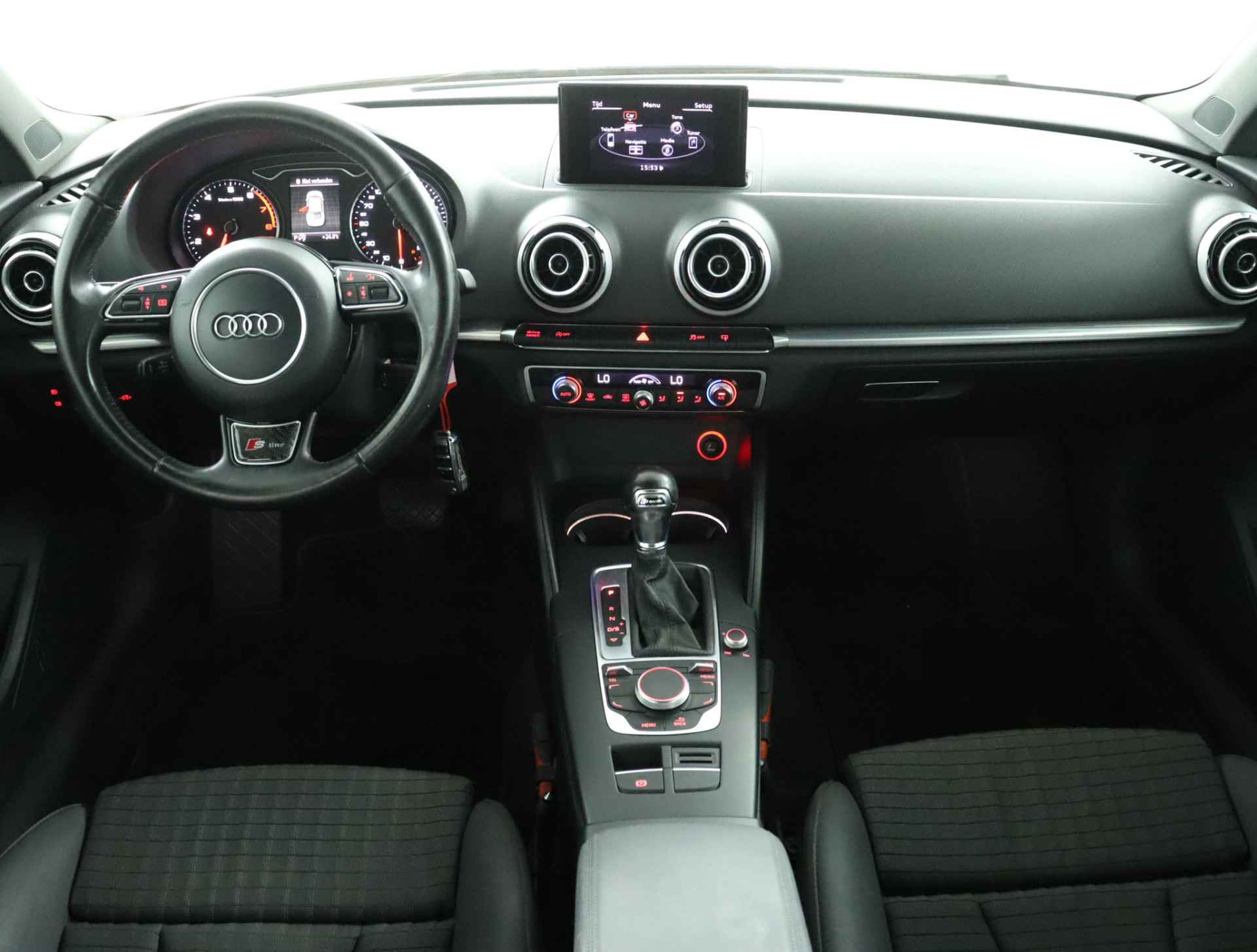 In deze auto kunt u de belangrijkste functies bedienen met uw stem. Wegwijs in elke wijk, stad of reisbestemming? Daarvoor zorgt het navigatiesysteem met harde schijf! Het comfort wordt verhoogd door de aanwezige electronic climate control. Boem is ho? Niet bij deze Audi A3 Limousine. De piepjes van de parkeersensoren waarschuwen u op tijd voor obstakels. De automatisch inschakelbare verlichting en regen- en lichtsensor zorgen dat onderweg automatisch de verlichting en de ruitenwissers worden ingeschakeld. Daarmee nemen ze u veel werk uit handen. Deze Audi is voorzien van cruise control, keyless entry, lederen stuur, centrale deurvergrendeling met afstandsbediening en bestuurders informatiesysteem met kleurendisplay.