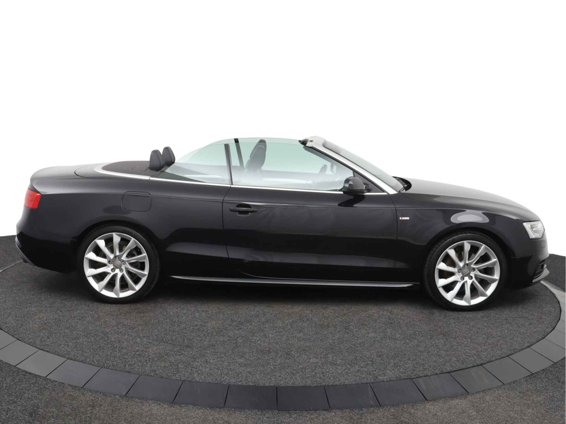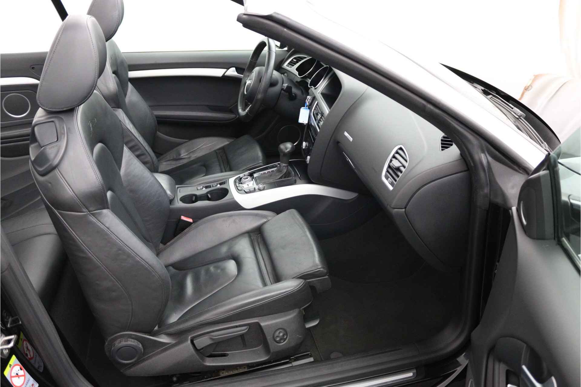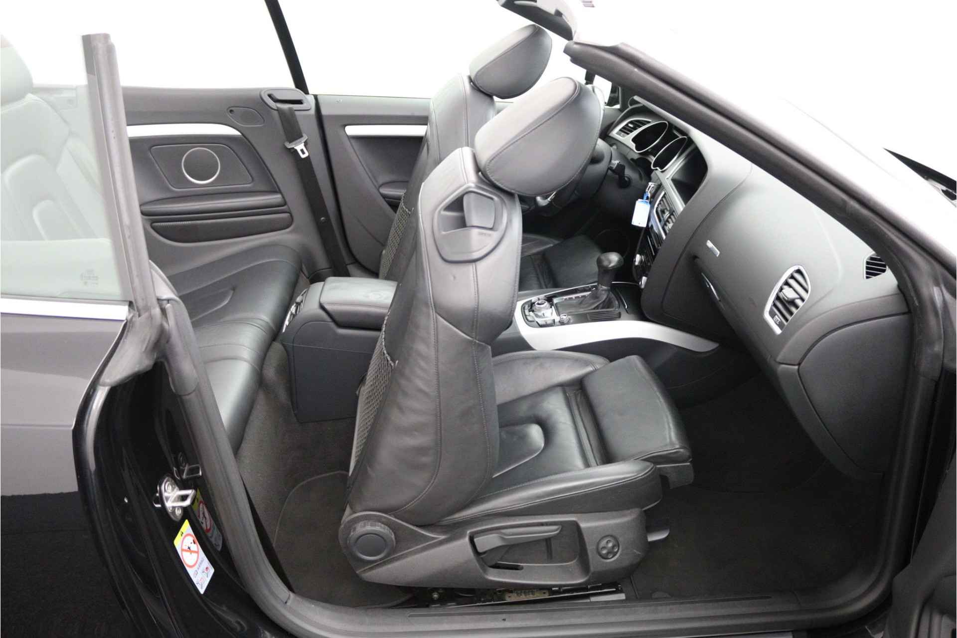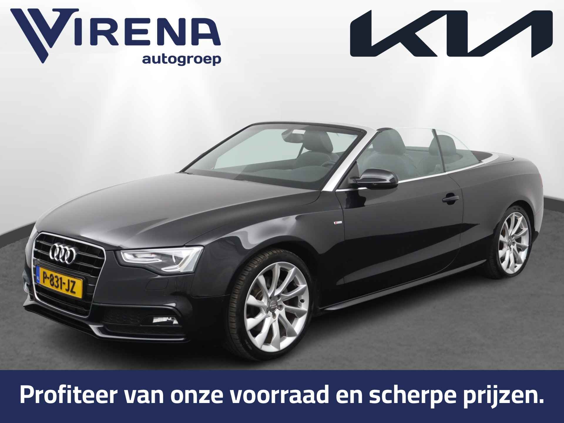 Zodra de zon zich laat zien, kunt u heerlijk genieten achter het stuur van deze cabriolet. Laat u niets wijsmaken, deze Audi A5 Cabriolet biedt alles wat u van een auto verlangt. Deze auto komt uit 2013. Exclusiviteit en sportiviteit komen samen in de S-Line styling. Een viercilinder benzinemotor en een automatische transmissie zorgen voor de uitstekende prestaties van deze auto. Deze Audi A5 Cabriolet heeft verwarmbare voorstoelen, voor zowel bestuurder als bijrijder. Ziet er goed uit, die sportstoelen. Maar waar het om gaat, is de solide zit onder alle omstandigheden. Het elektrische cabriodak opent snel en soepel. Zo geniet u maximaal van elke kilometer die u open rijdt. Met de krachtige xenonverlichting rijdt u ontspannen in het donker. Bij de rijke uitrusting horen ook 18 inch lichtmetalen velgen, sportonderstel en verstelbare lendensteunen.
