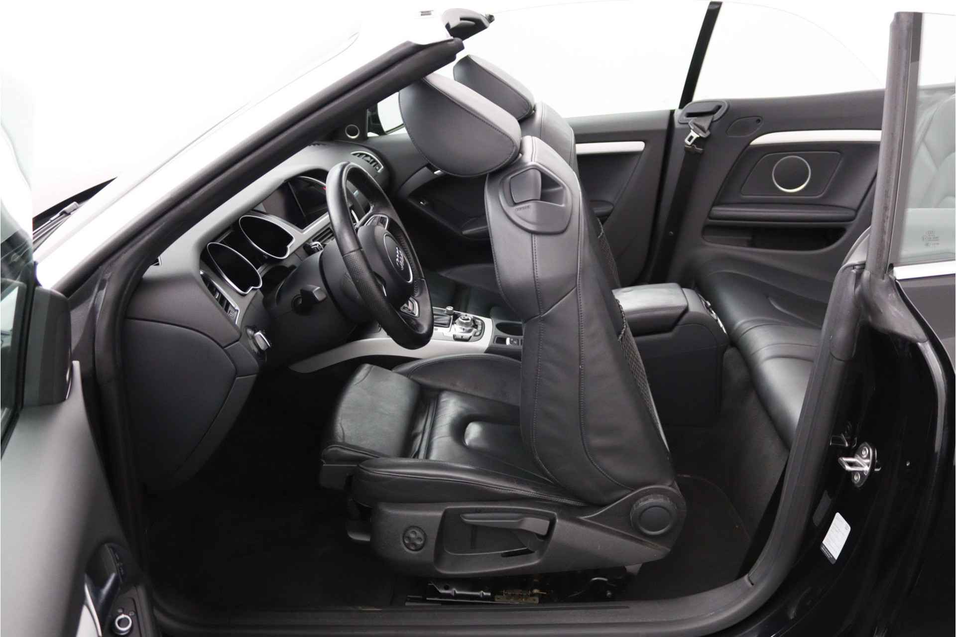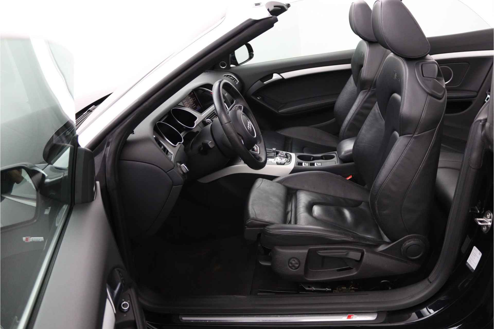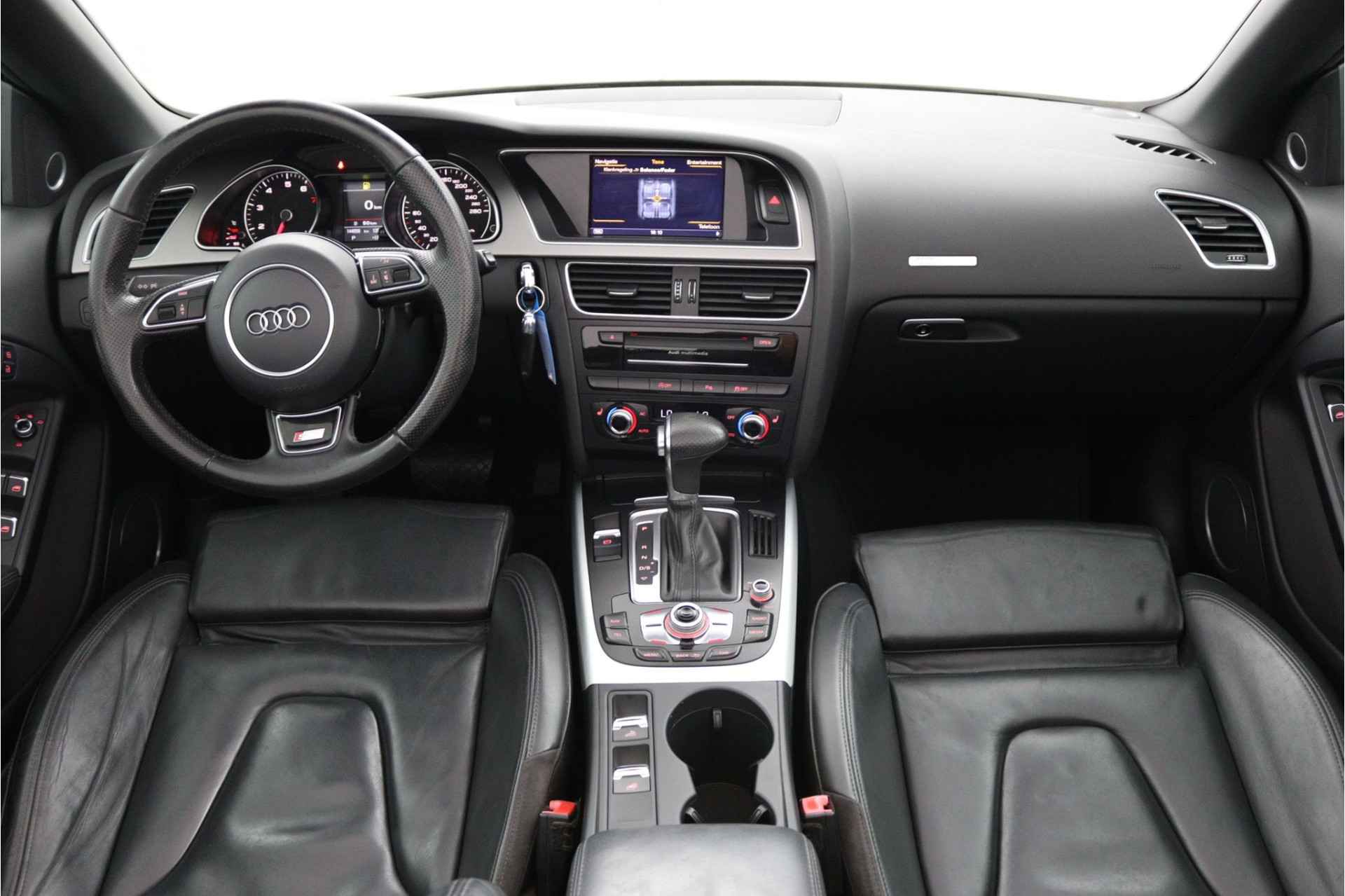 Zodra de zon zich laat zien, kunt u heerlijk genieten achter het stuur van deze cabriolet. Laat u niets wijsmaken, deze Audi A5 Cabriolet biedt alles wat u van een auto verlangt. Deze auto komt uit 2013. Exclusiviteit en sportiviteit komen samen in de S-Line styling. Een viercilinder benzinemotor en een automatische transmissie zorgen voor de uitstekende prestaties van deze auto. Deze Audi A5 Cabriolet heeft verwarmbare voorstoelen, voor zowel bestuurder als bijrijder. Ziet er goed uit, die sportstoelen. Maar waar het om gaat, is de solide zit onder alle omstandigheden. Het elektrische cabriodak opent snel en soepel. Zo geniet u maximaal van elke kilometer die u open rijdt. Met de krachtige xenonverlichting rijdt u ontspannen in het donker. Bij de rijke uitrusting horen ook 18 inch lichtmetalen velgen, sportonderstel en verstelbare lendensteunen.