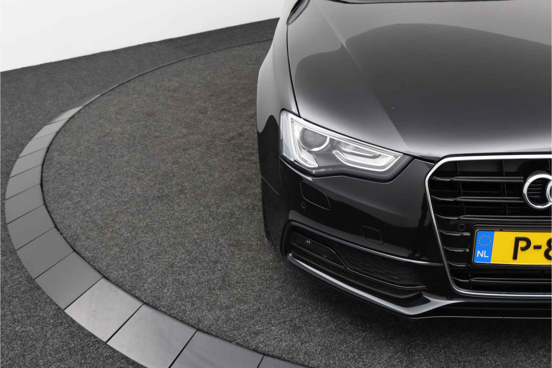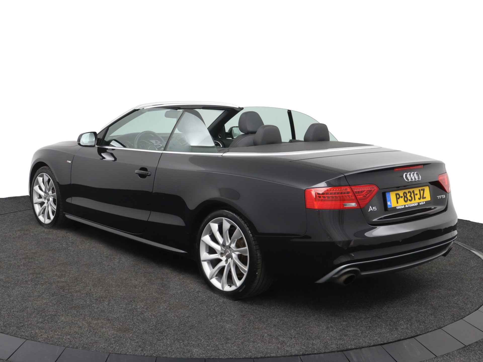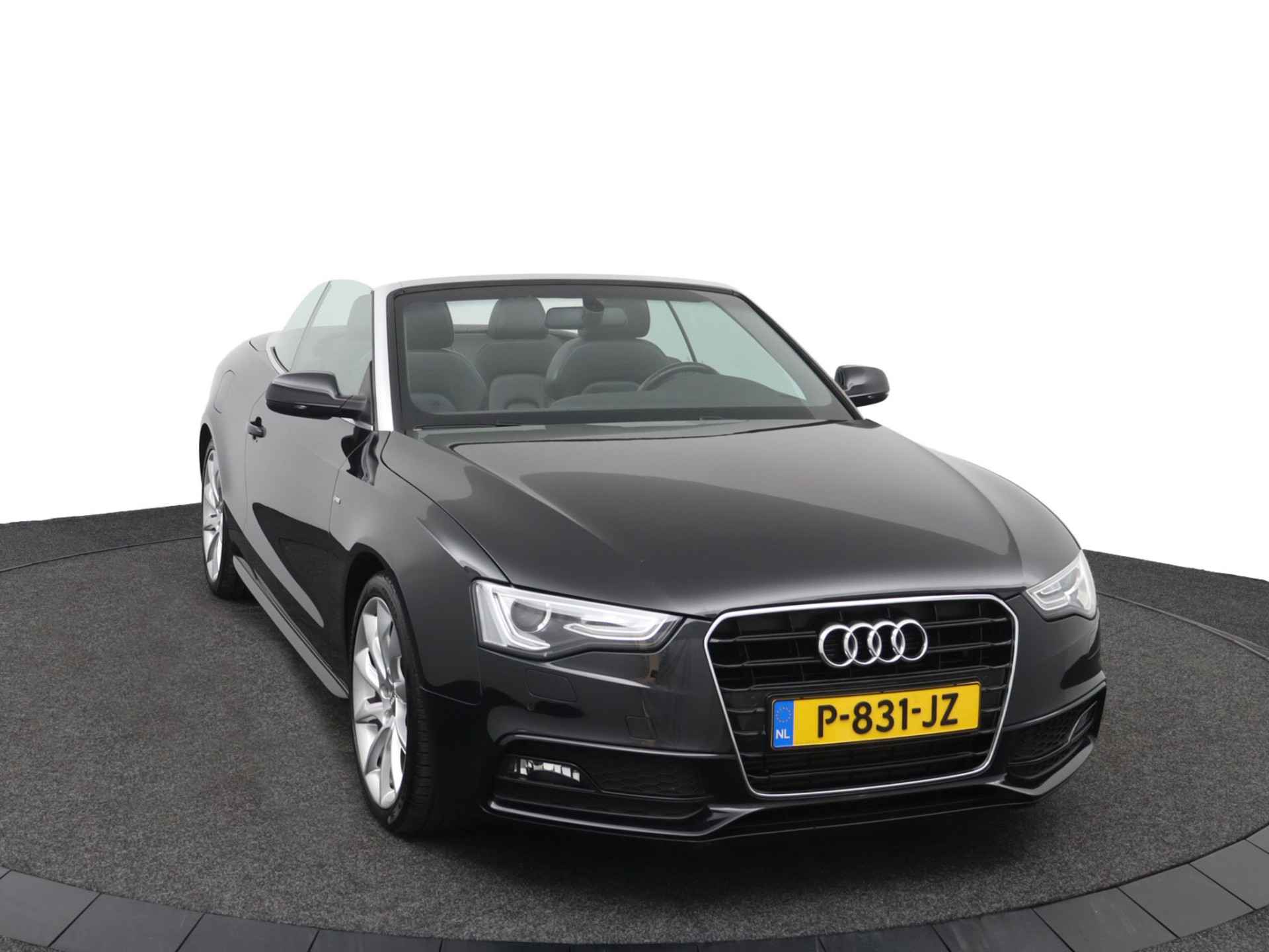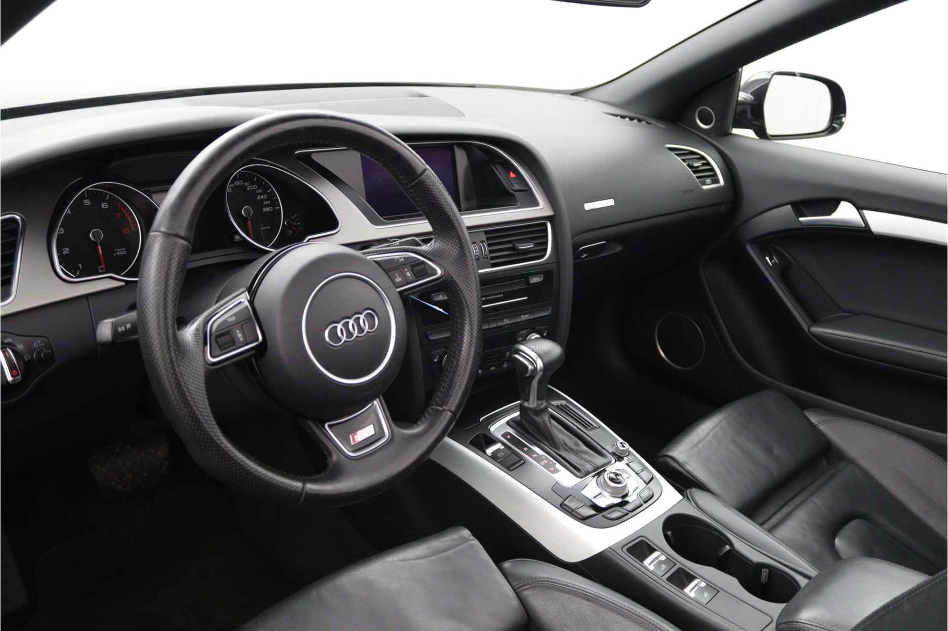 Zodra de zon zich laat zien, kunt u heerlijk genieten achter het stuur van deze cabriolet. Laat u niets wijsmaken, deze Audi A5 Cabriolet biedt alles wat u van een auto verlangt. Deze auto komt uit 2013. Exclusiviteit en sportiviteit komen samen in de S-Line styling. Een viercilinder benzinemotor en een automatische transmissie zorgen voor de uitstekende prestaties van deze auto. Deze Audi A5 Cabriolet heeft verwarmbare voorstoelen, voor zowel bestuurder als bijrijder. Ziet er goed uit, die sportstoelen. Maar waar het om gaat, is de solide zit onder alle omstandigheden. Het elektrische cabriodak opent snel en soepel. Zo geniet u maximaal van elke kilometer die u open rijdt. Met de krachtige xenonverlichting rijdt u ontspannen in het donker. Bij de rijke uitrusting horen ook 18 inch lichtmetalen velgen, sportonderstel en verstelbare lendensteunen.