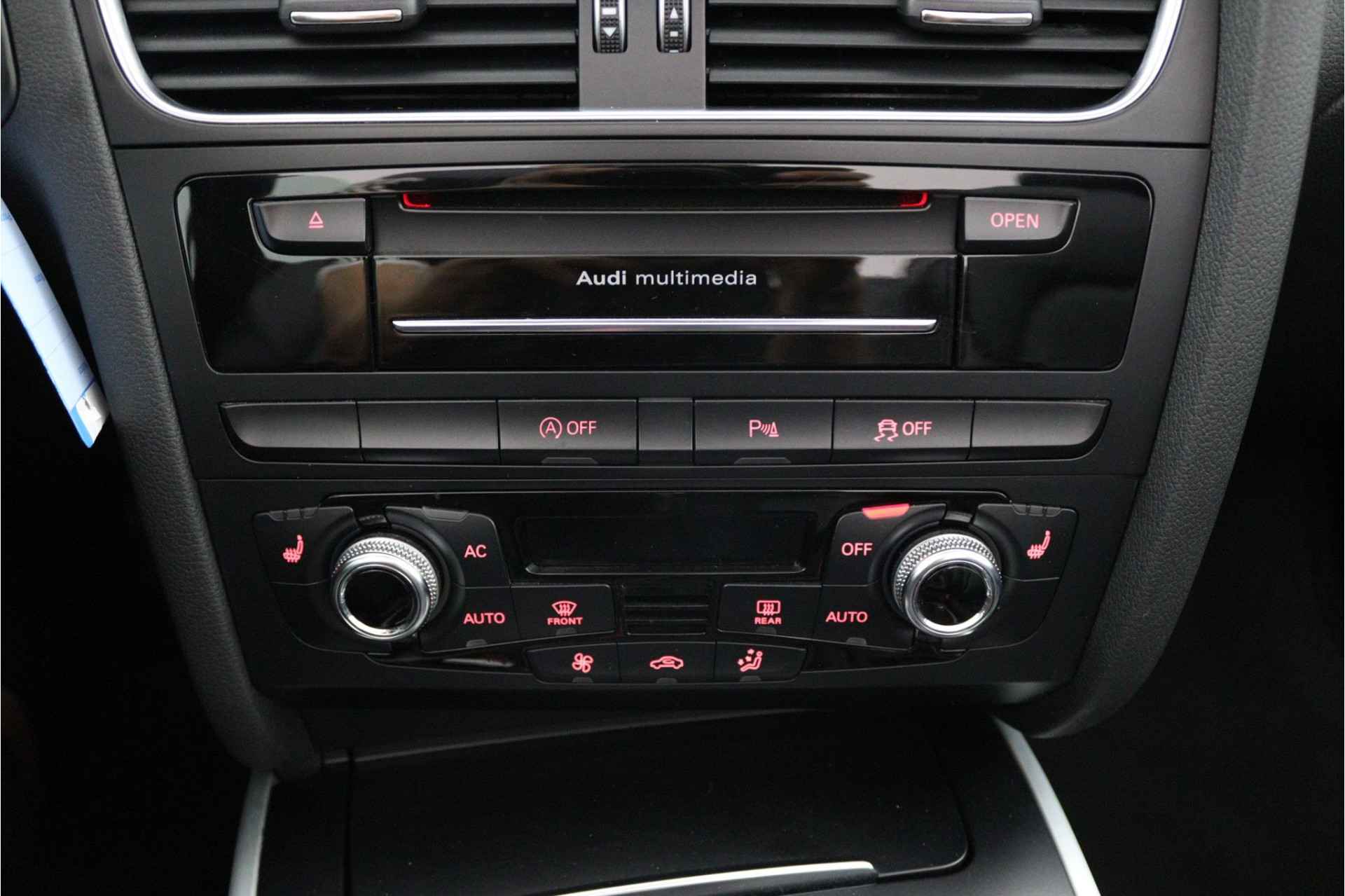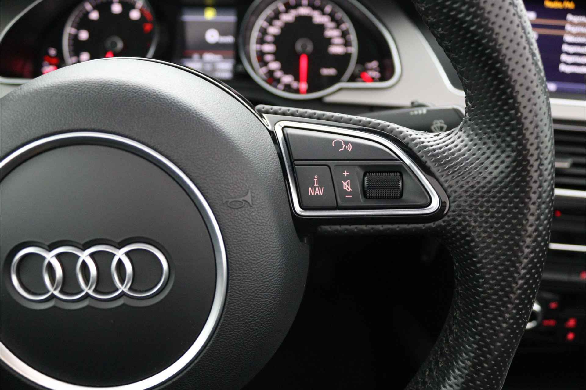 Het complete geluidsspectrum van de hi-fi krijgt een extra boost door het high performance audiosysteem. Automatische airconditioning verwarmt of koelt het interieur met een druk op de knop. Soms heeft u meer parkeerruimte dan u denkt. Maar soms ook niet. De parkeersensoren vertellen precies hoeveel. De auto neemt u werk uit handen doordat hij zelf veel in de gaten houdt. Een regensensor en een automatisch inschakelbare verlichting nemen waar wanneer de ruitenwissers en het licht aan moeten. Met cruise control rijdt u rustiger en meer ontspannen, en bovendien zuiniger. De Audi is standaard voorzien van: navigatiesysteem, keyless entry, lederen stuur, centrale deurvergrendeling met afstandsbediening en boordcomputer.