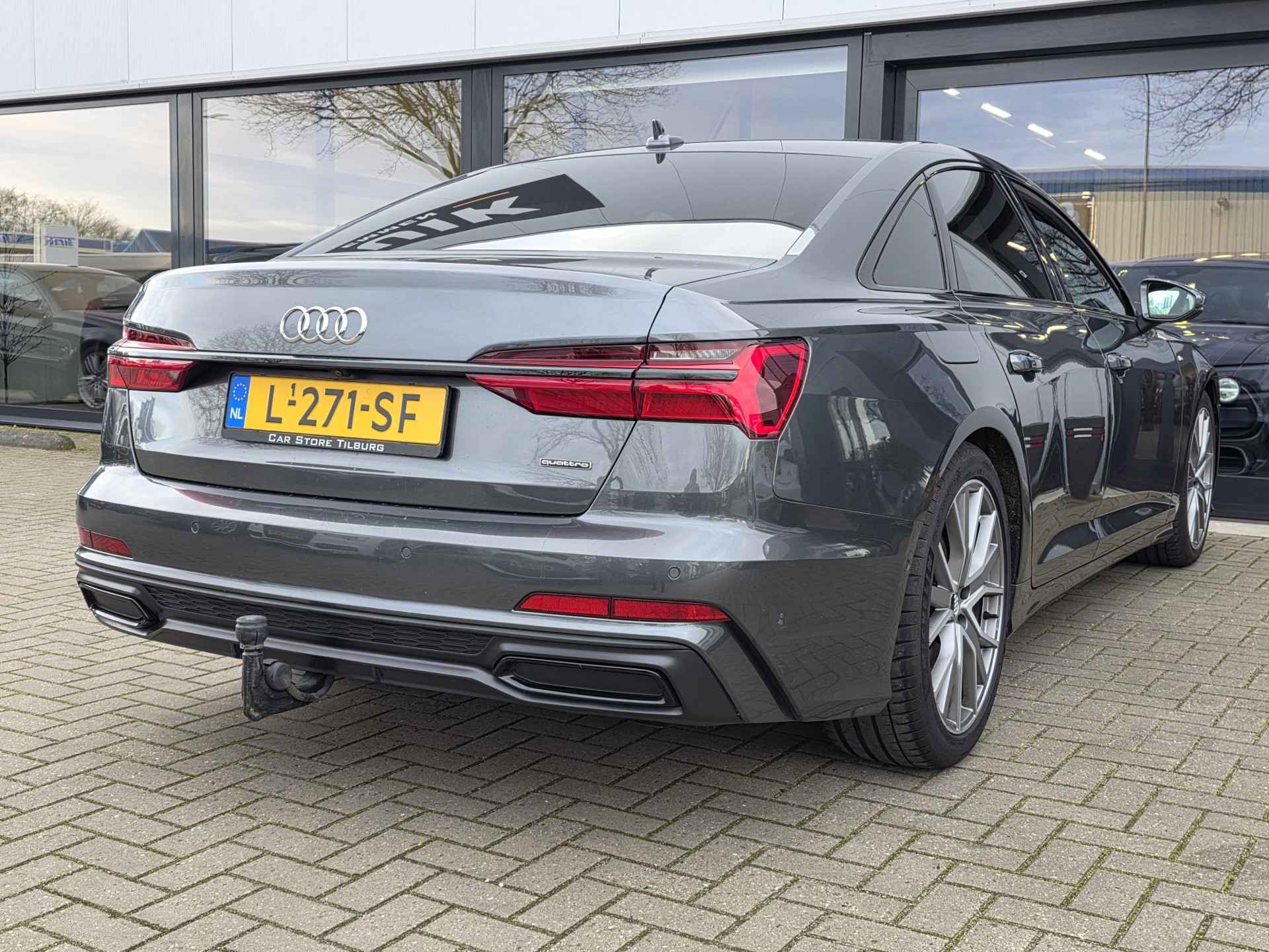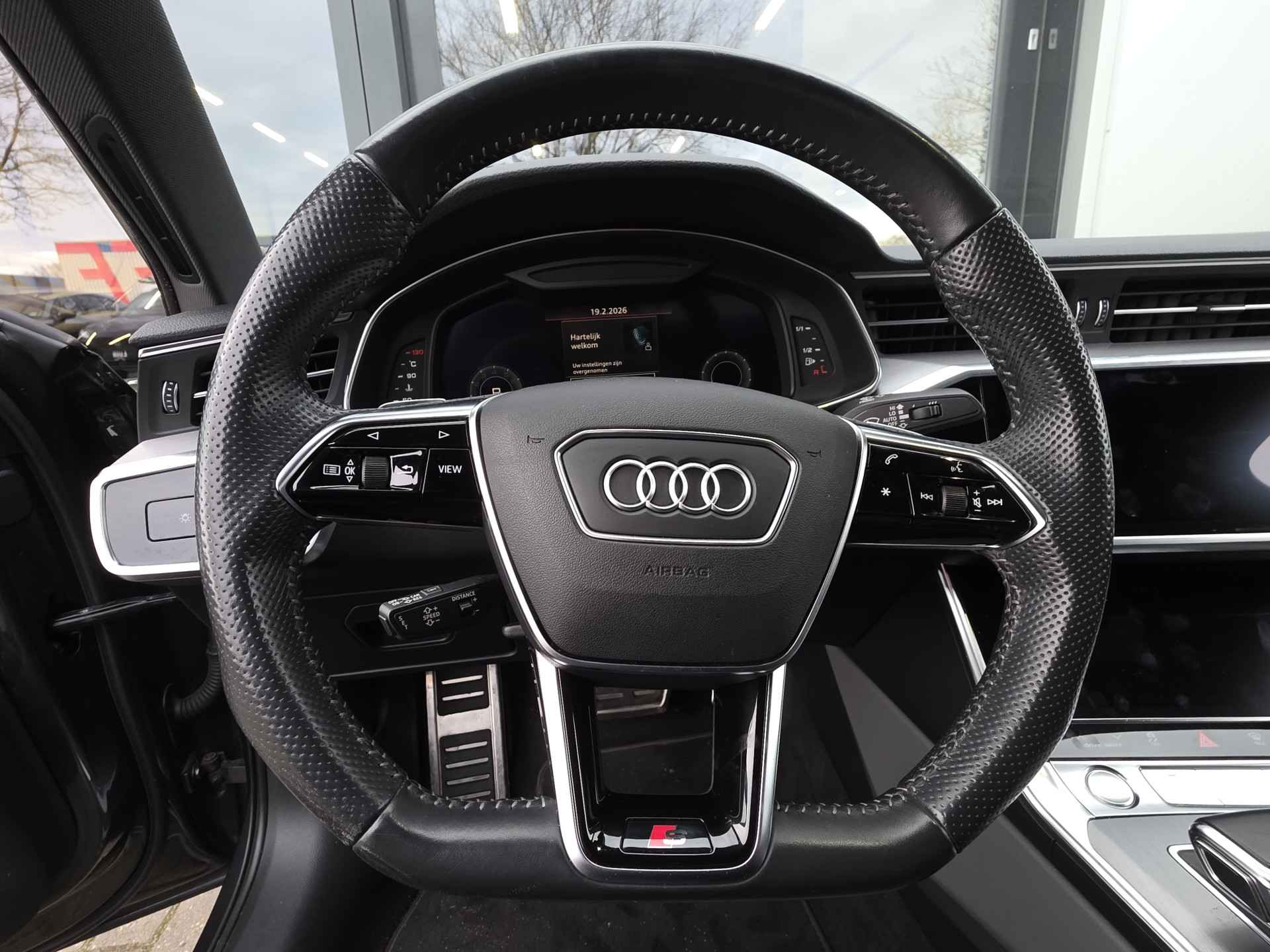 De fijne 6 cilinder! Zeer compleet uitgevoerd in de 3x S-Line, Black optic pakket, Daytona grijs metallic, Audi Sport velgen, adaptieve cruise control, top view, stoel met memory, stoelverwarming, elektrische trekhaak, etc.!