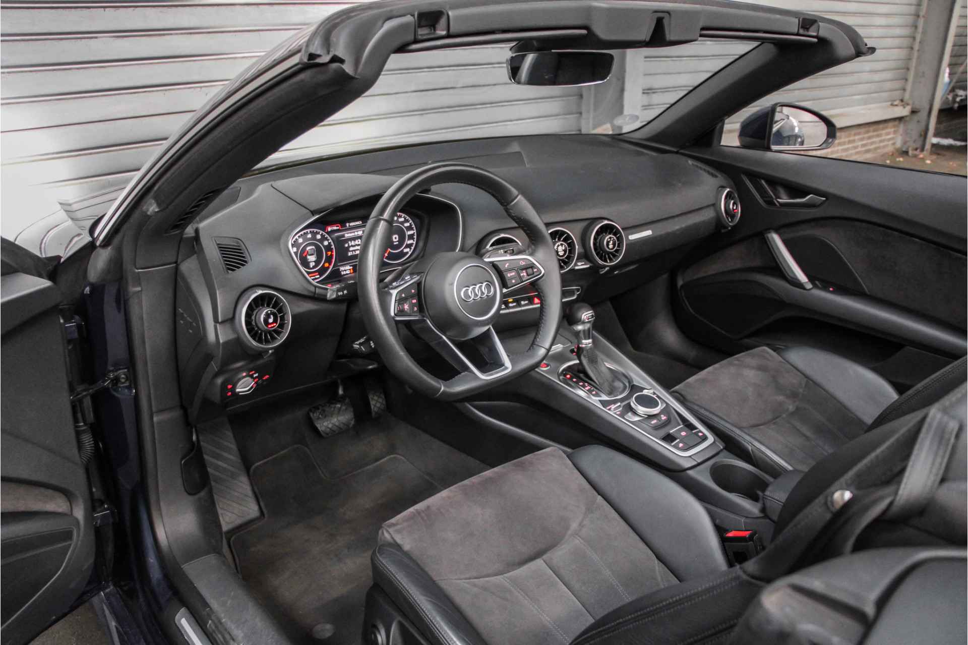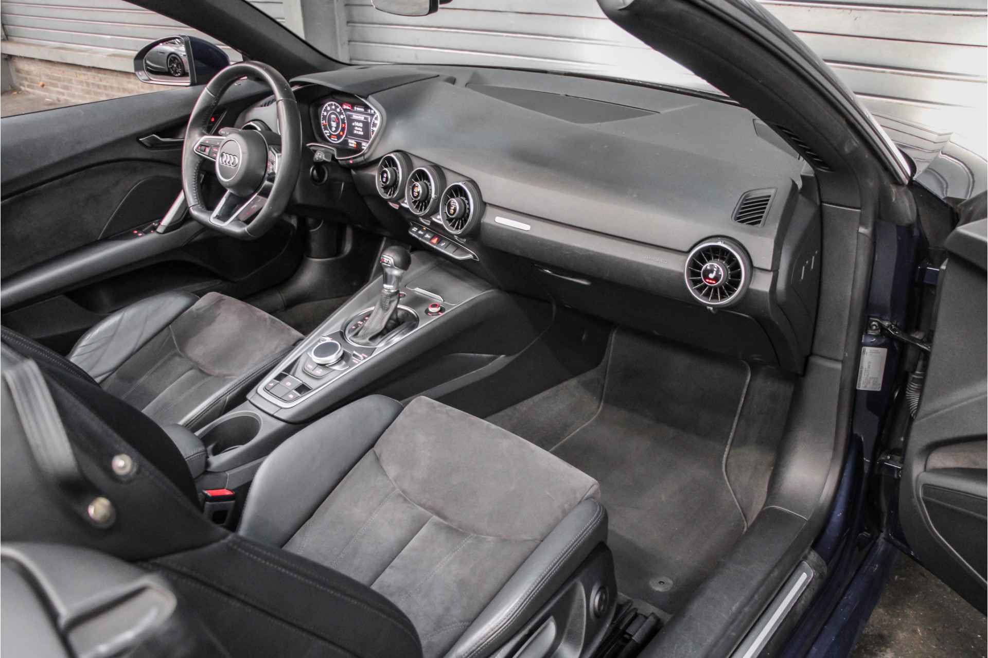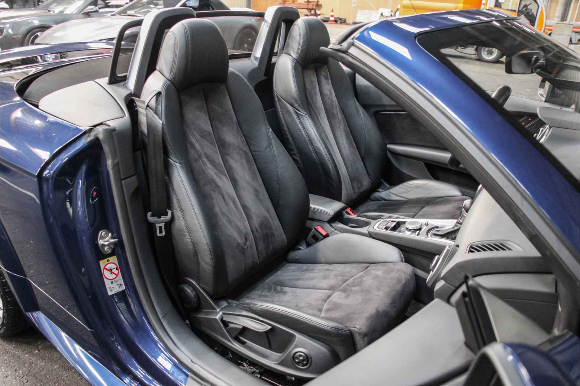 Fantastische kleuren combinatie, scubablue van buiten en half leder van binnen.