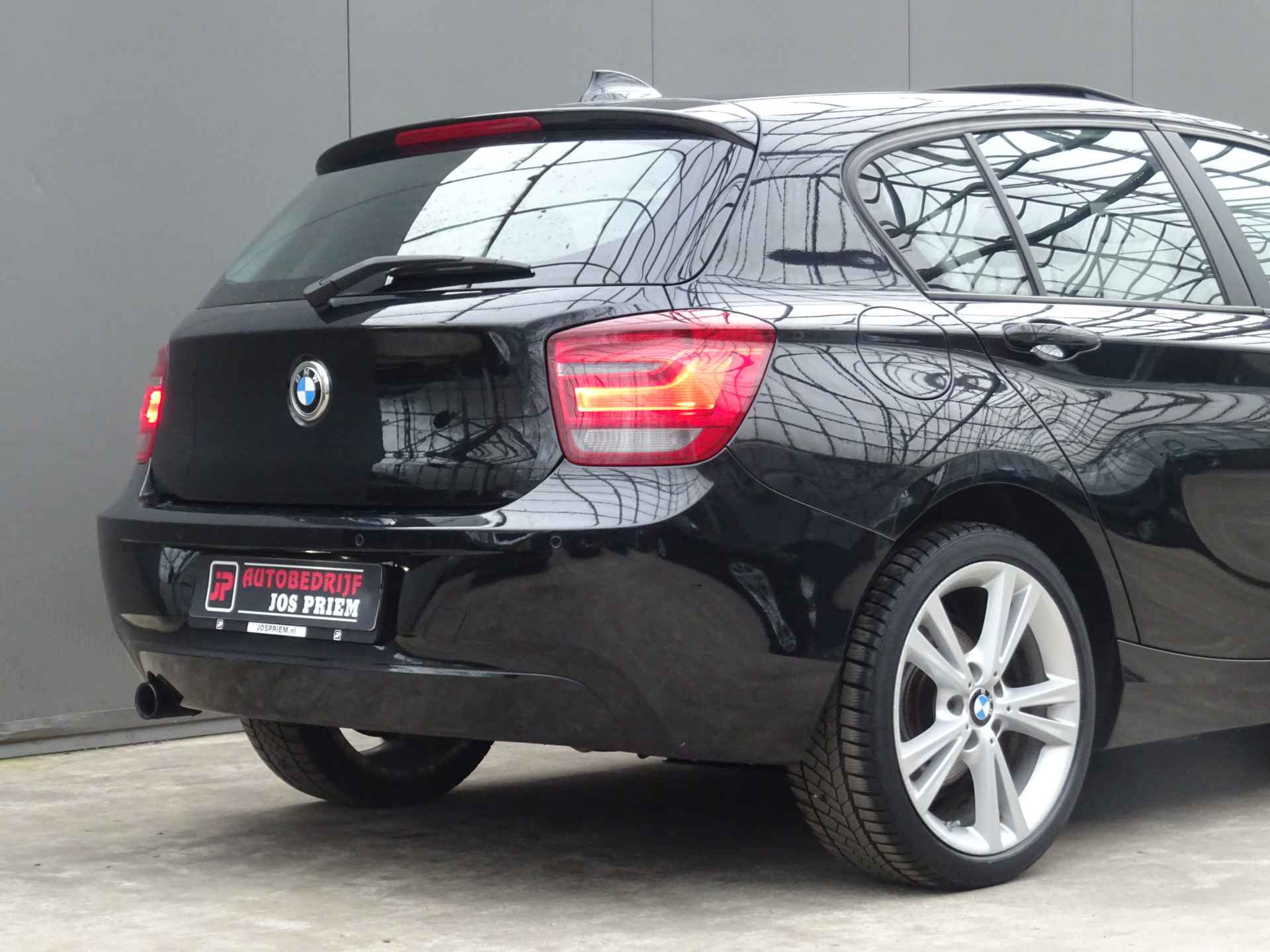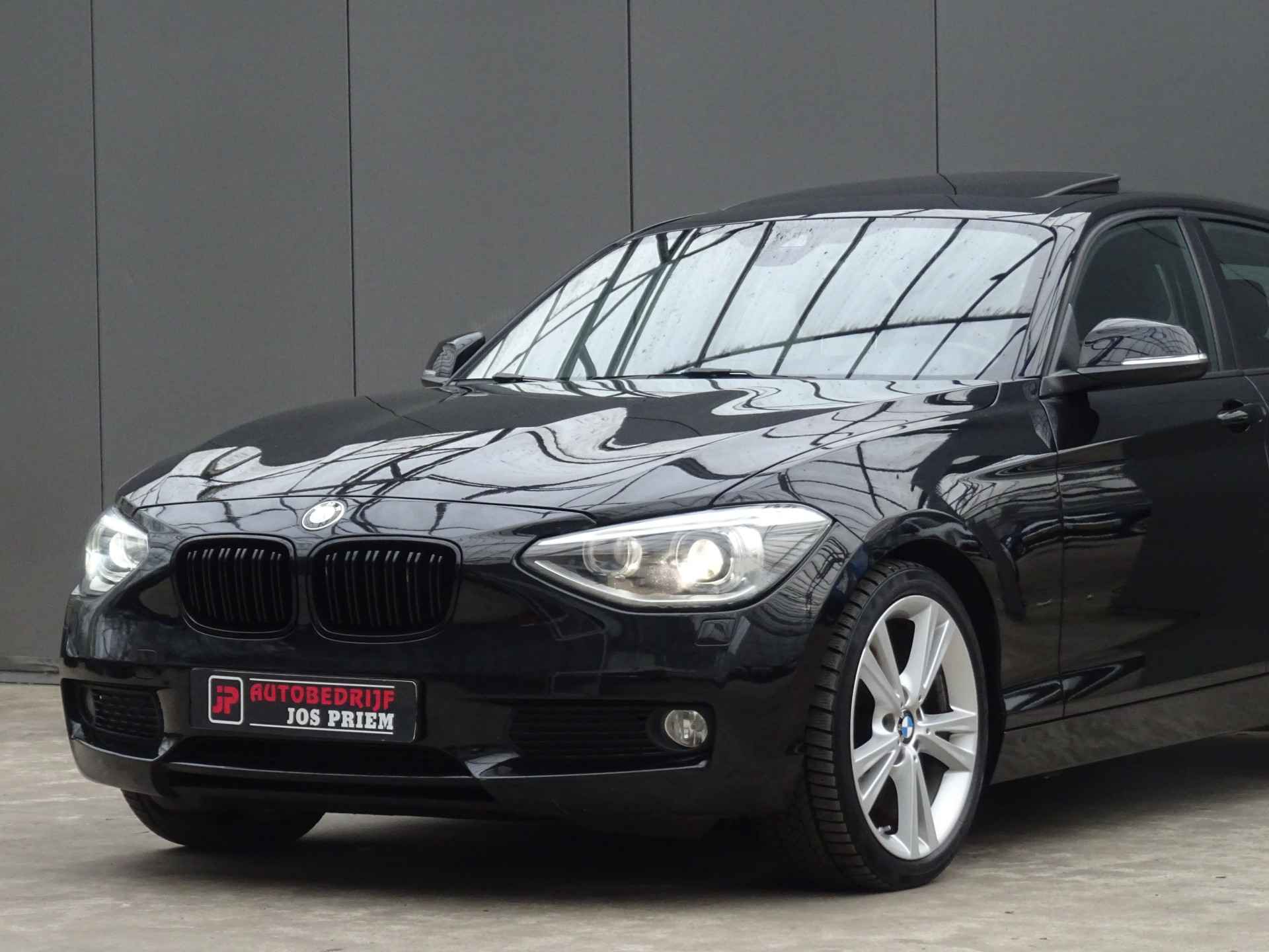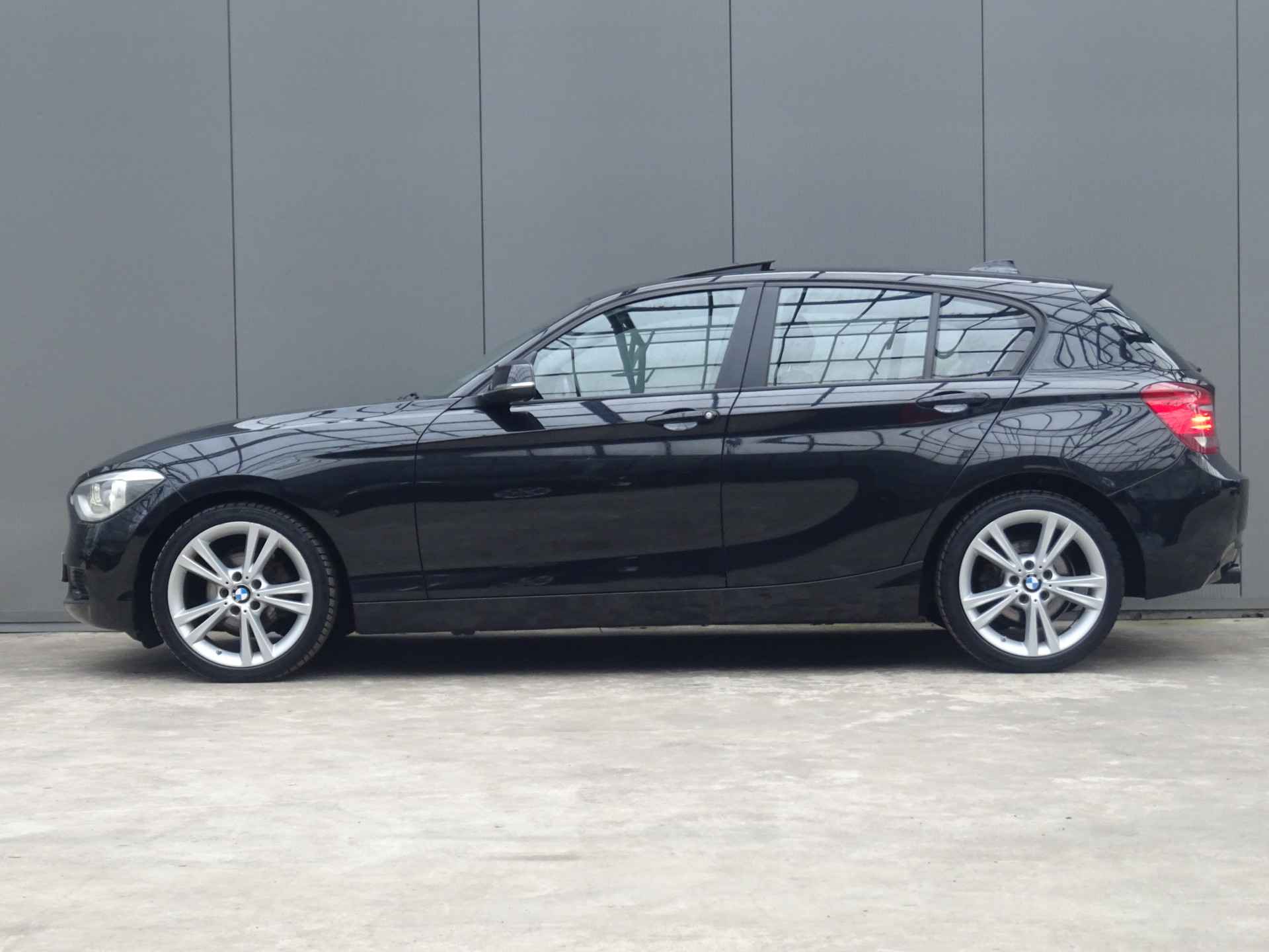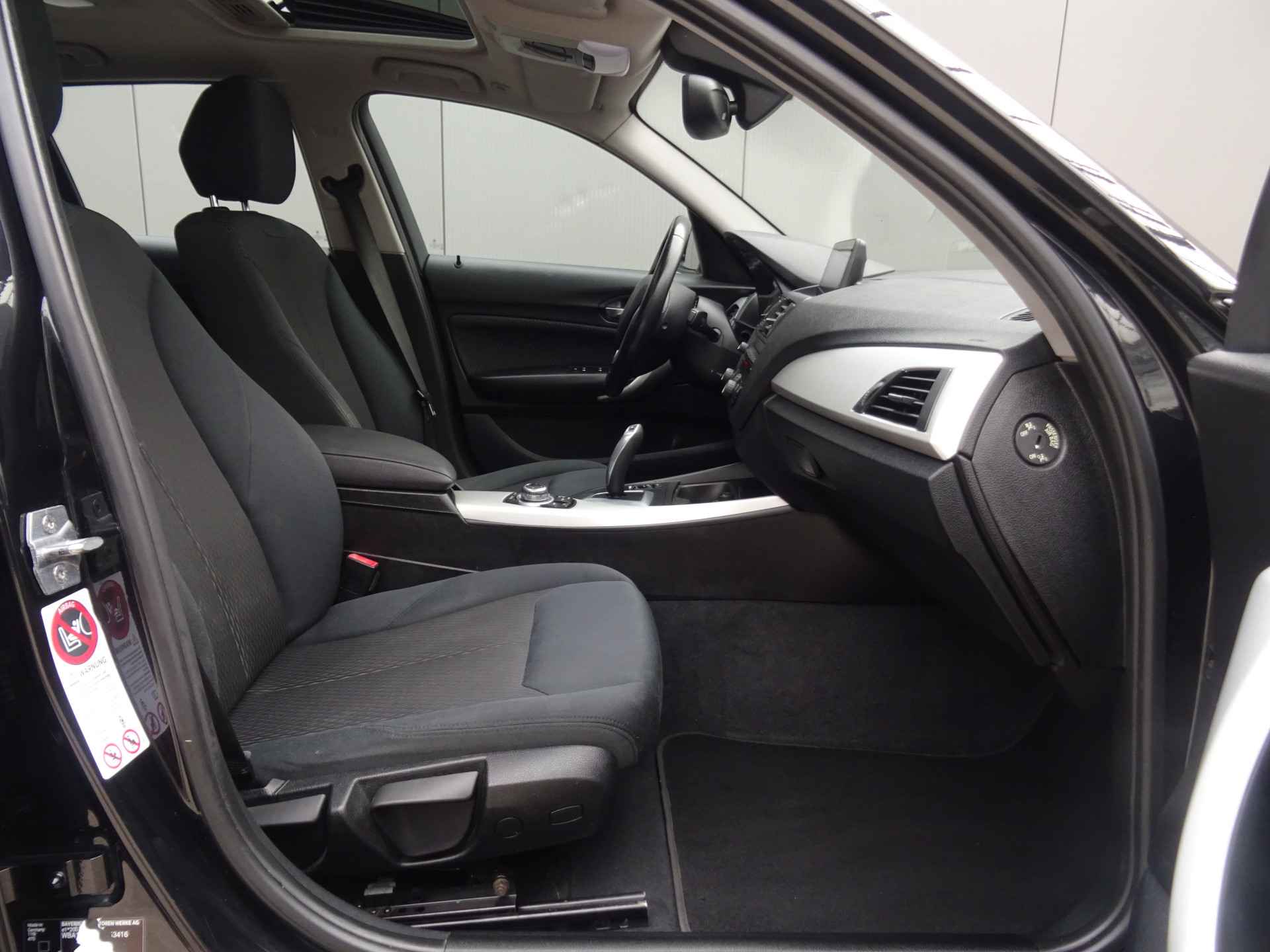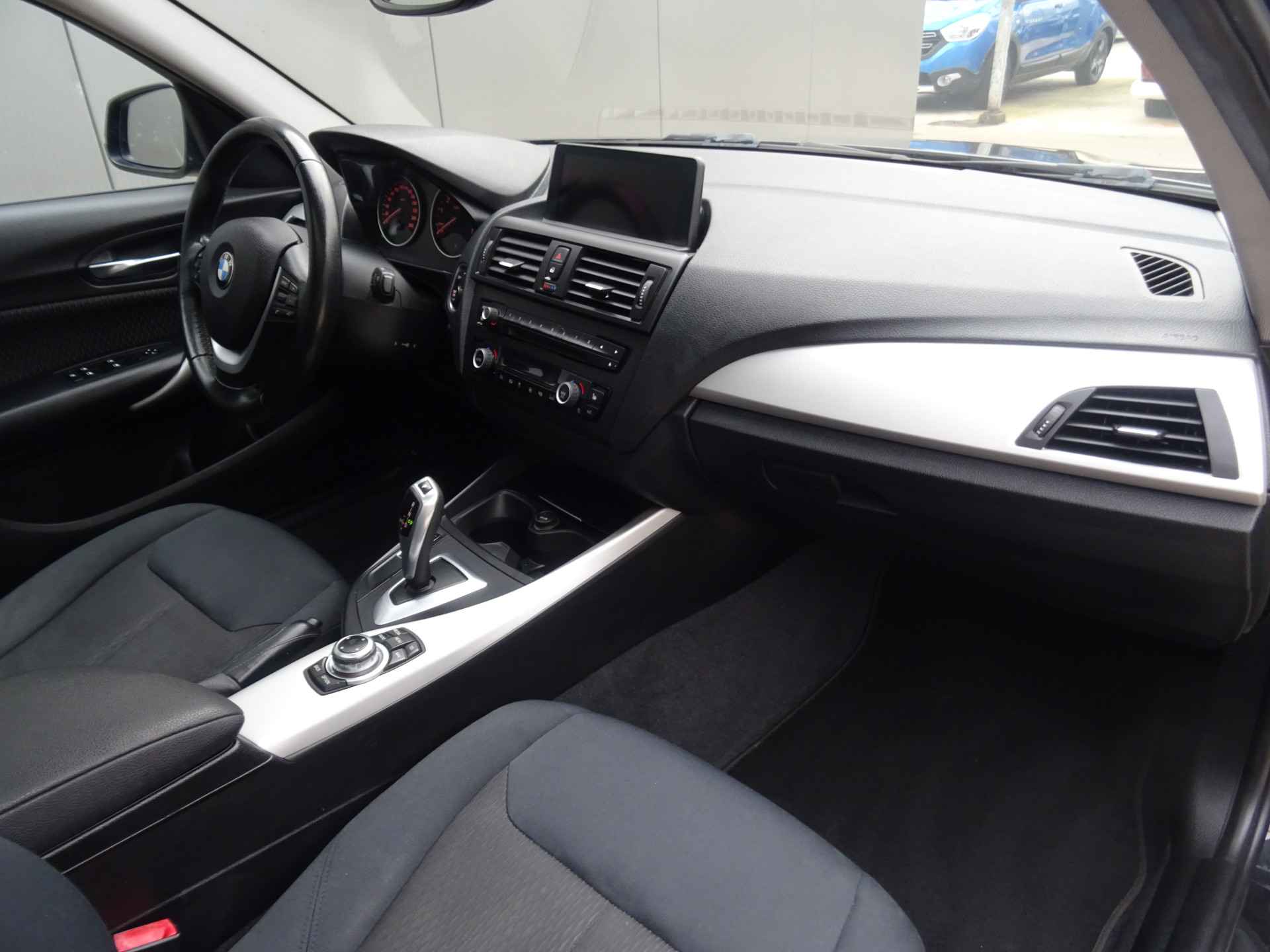 Als toonbeeld van Duitse kwaliteit, laat deze BMW 1-serie met zijn aantrekkelijk design en comfortabel interieur in elk detail zijn topklasse zien. De aandrijving komt voor rekening van een 136 PK benzinemotor en een automatische transmissie. Doe maar luxe! Neem plaats in de verwarmbare voorstoelen en voel de weldaad in koude dagen. Wat een licht geeft dat glazen elektrisch bedienbare panoramadak. Xenonverlichting zorgt voor een krachtige en heldere lichtbundel. Stilstaan: motor uit. Rijden: motor aan. Zo simpel is het met het aanwezige start-stopsysteem. En dat scheelt in brandstof! Natuurlijk behoren 17 inch lichtmetalen velgen en in delen neerklapbare achterbank ook tot de uitrusting van deze complete auto.