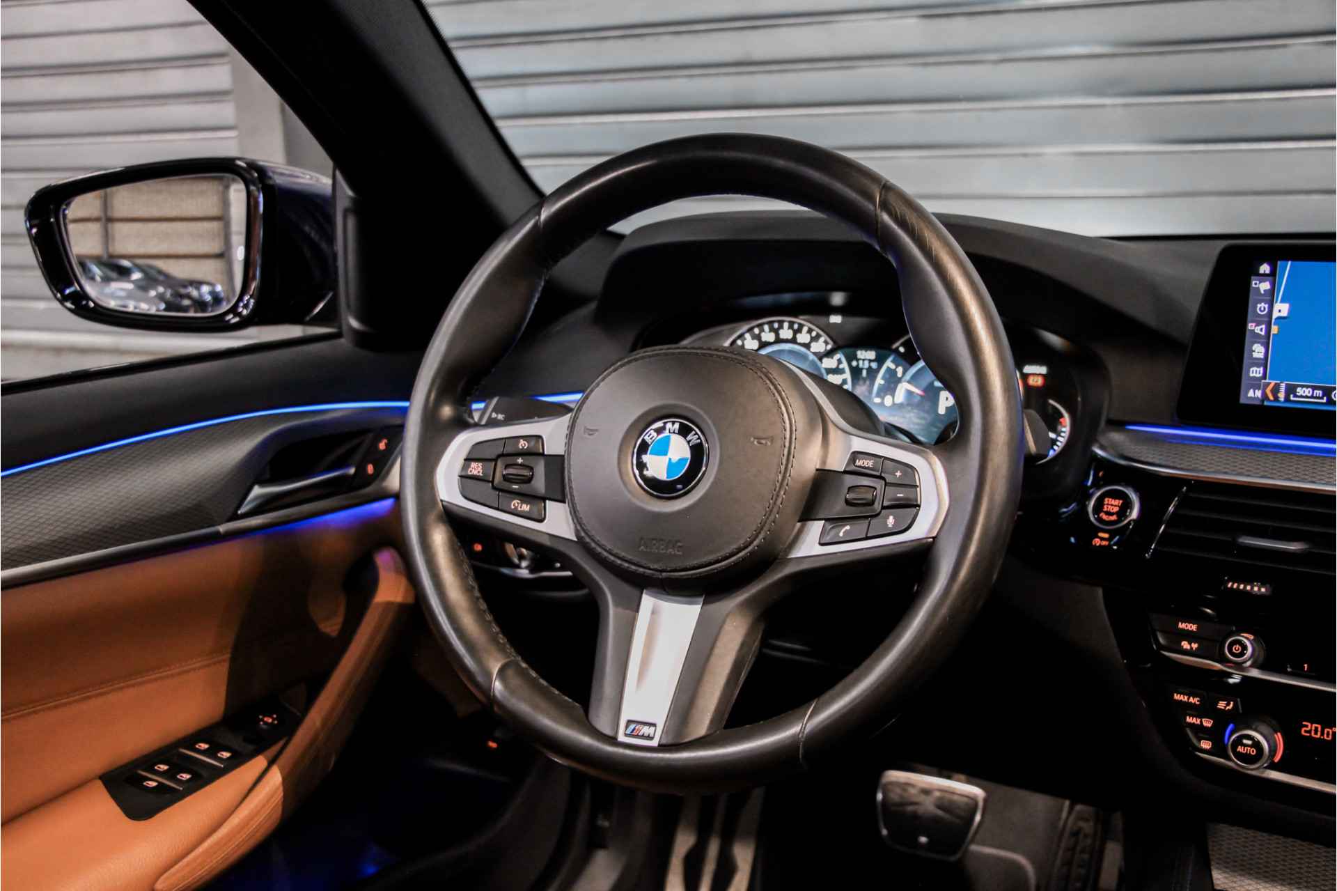 Nu bij ons in Elburg ; deze zeer strakke en volledig onderhouden 520i in een prachtige kleur stelling mét M Pakket.
