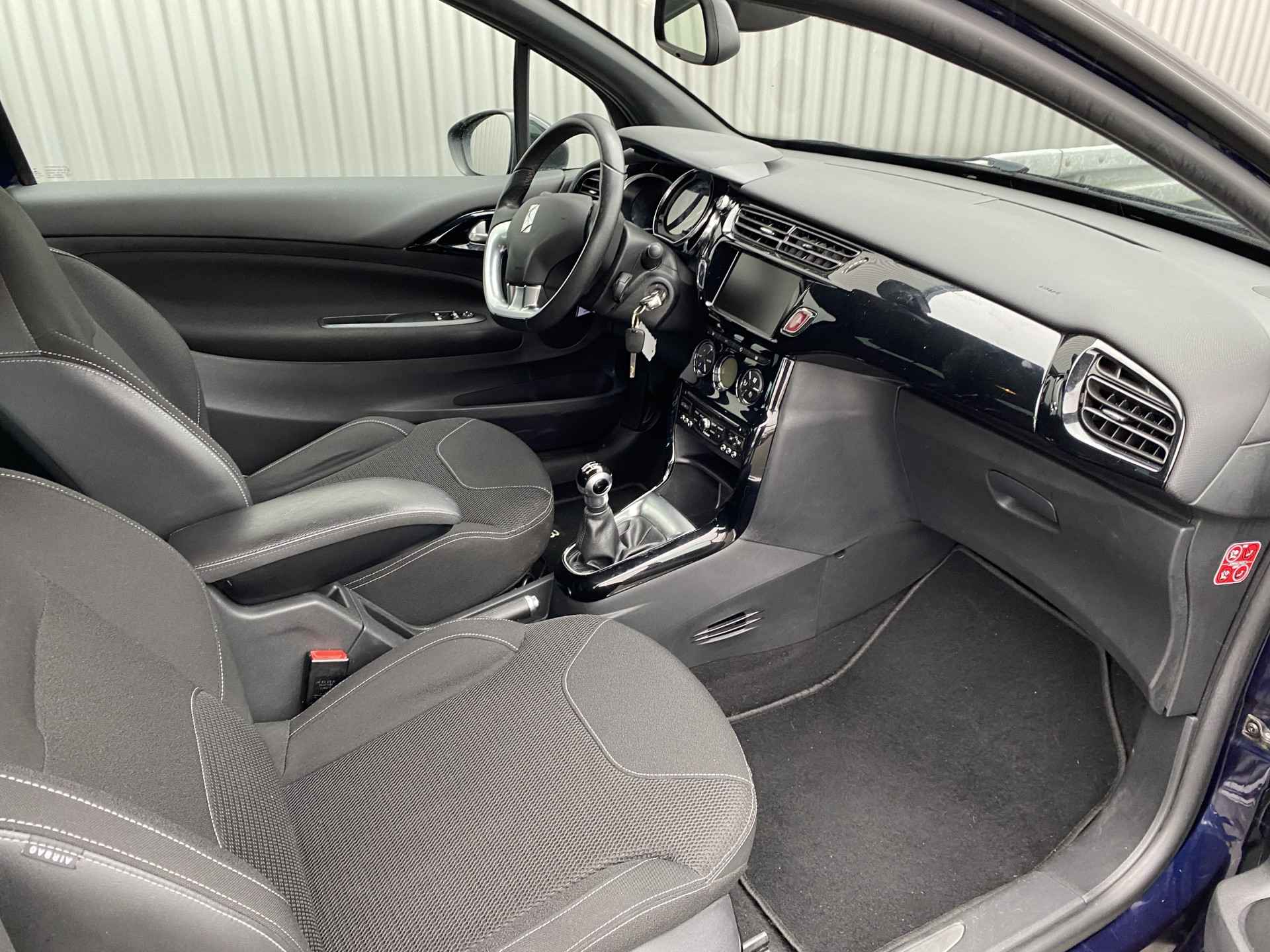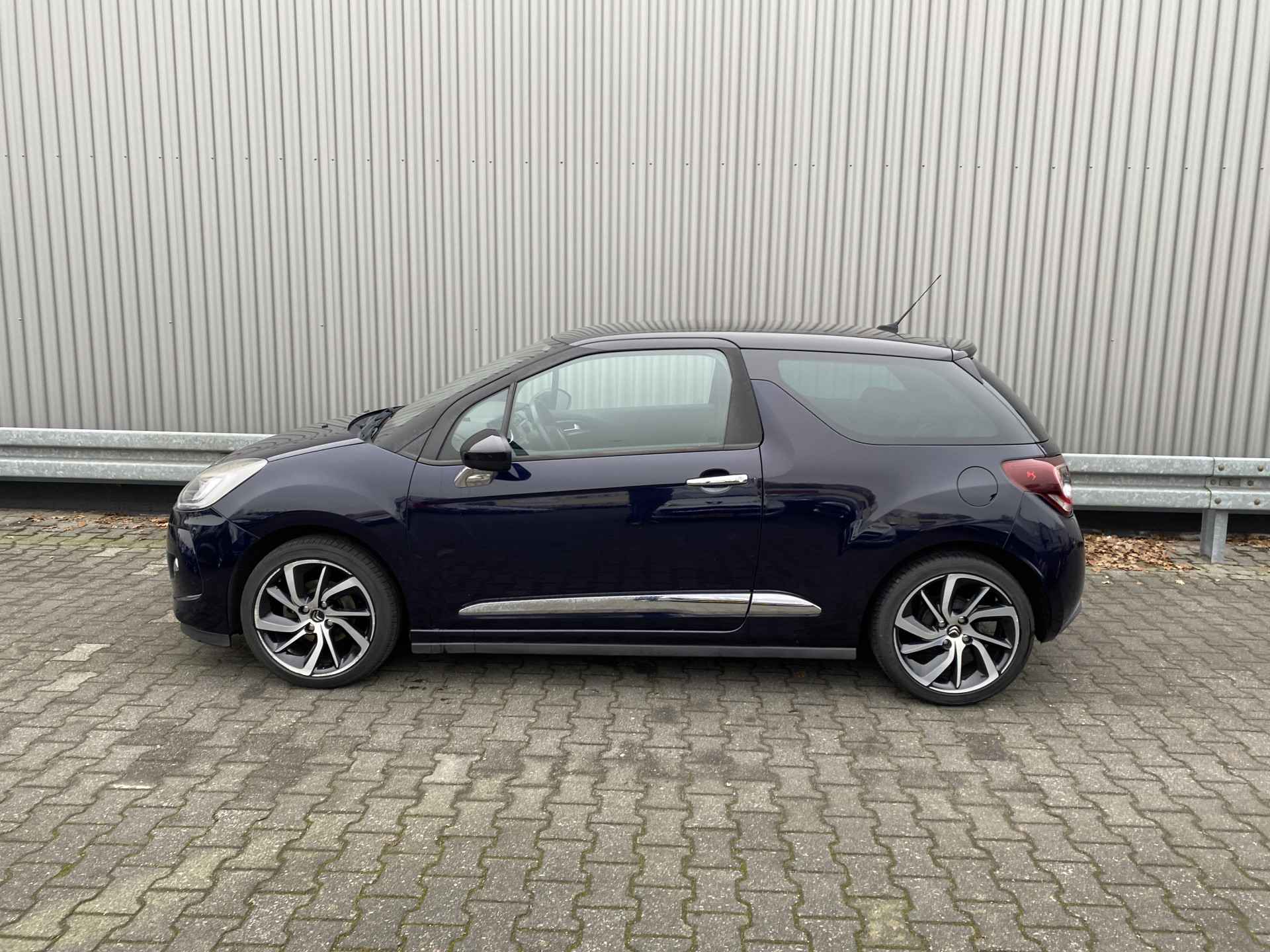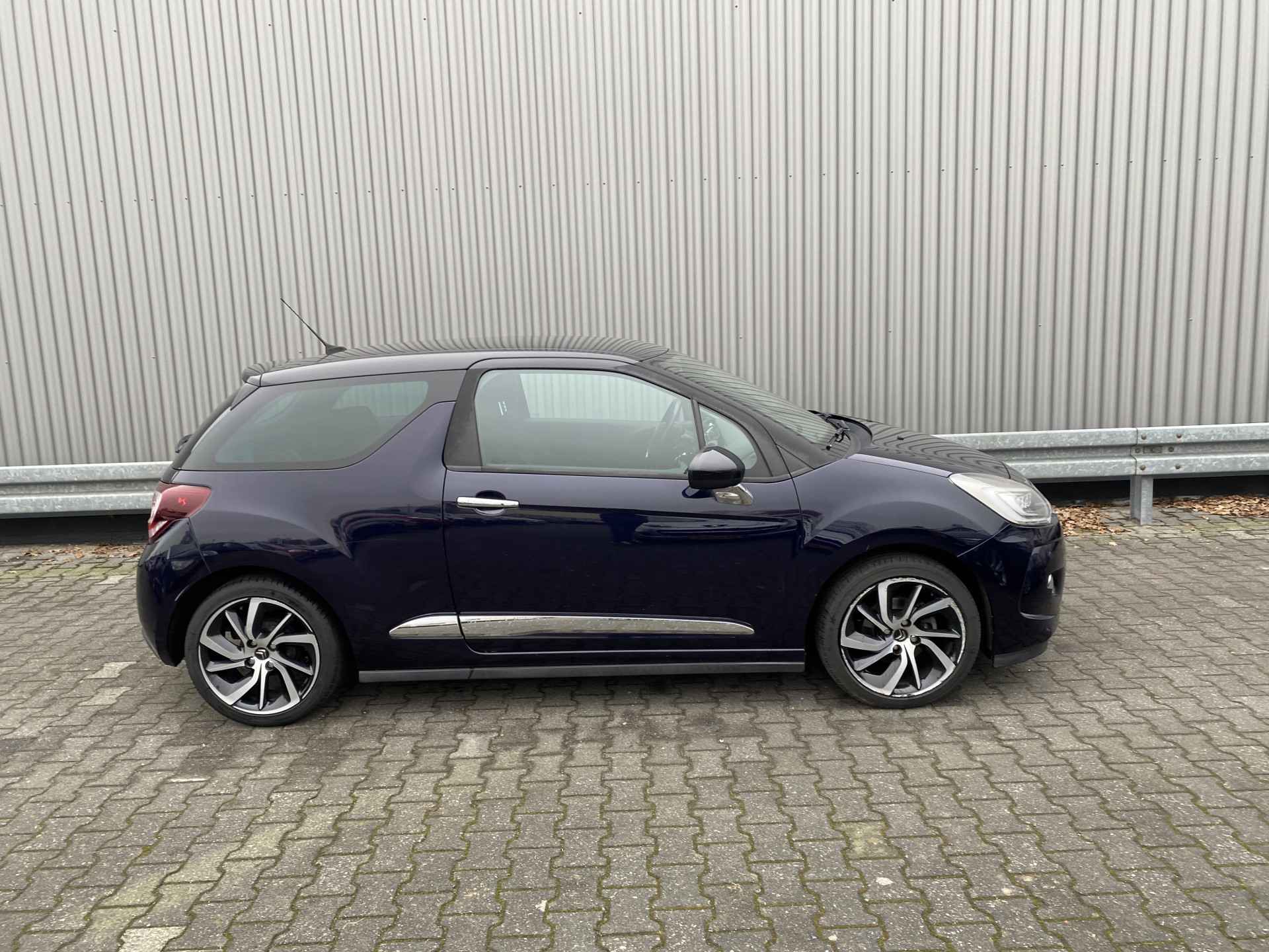 WIJ ZIJN ALLEEN OPEN OP TELEFONISCHE AFSPRAAK. Nette en goed rijdende Citroën DS3 1.2 PureTech So Chic, slechts 155Dkm. NAP op de klok en met o.a. Automatische Klimaatregeling, Navigatiesysteem, Bluetooth (Carkit), Cruise Control, Park Distance Control, Origineel Licht Metaal. Inruil is uiteraard bespreekbaar.