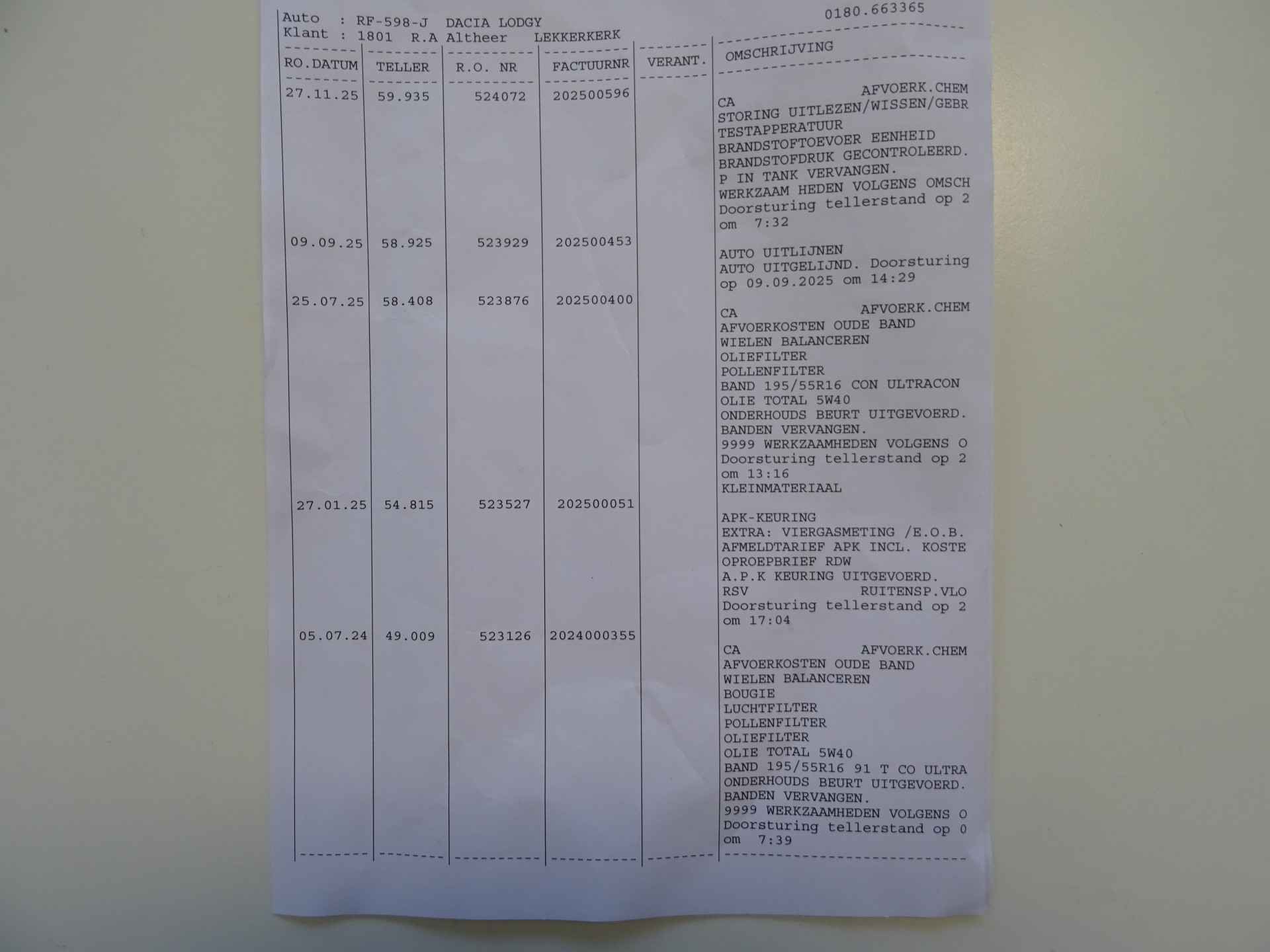 Laatste service is bij 58Dkm uitgevoerd.