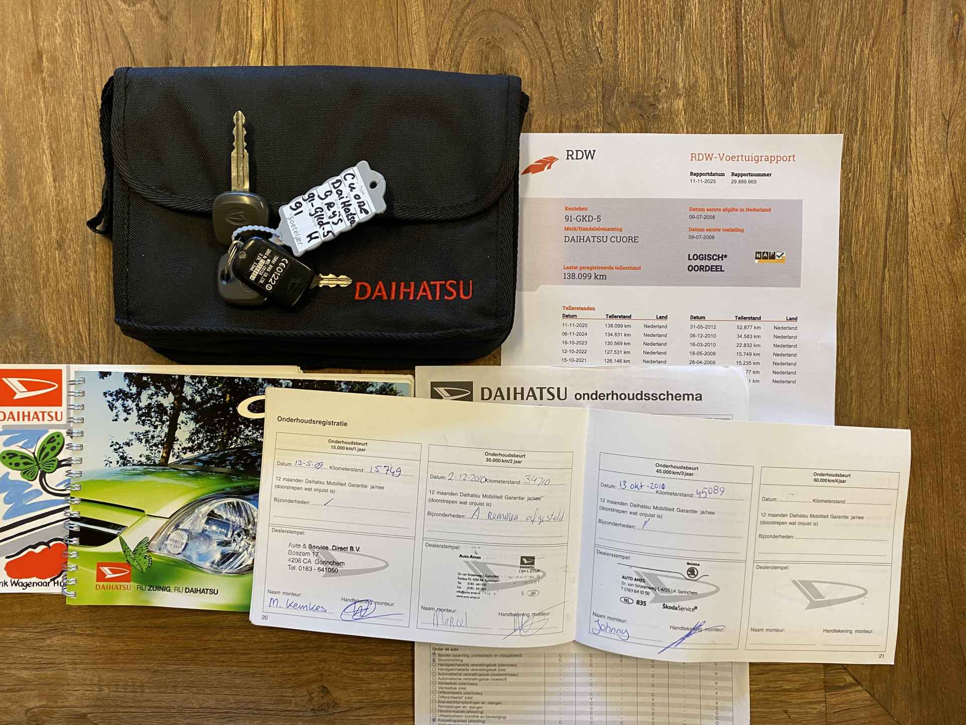 WIJ ZIJN ALLEEN OPEN OP TELEFONISCHE AFSPRAAK. Nette en goed rijdende 5 Deurs Daihatsu Cuore 1.0 Premium, slechts 138Dkm. NAP op de klok en met o.a. Klimaatregeling en nieuwe APK. Inruil is uiteraard bespreekbaar.