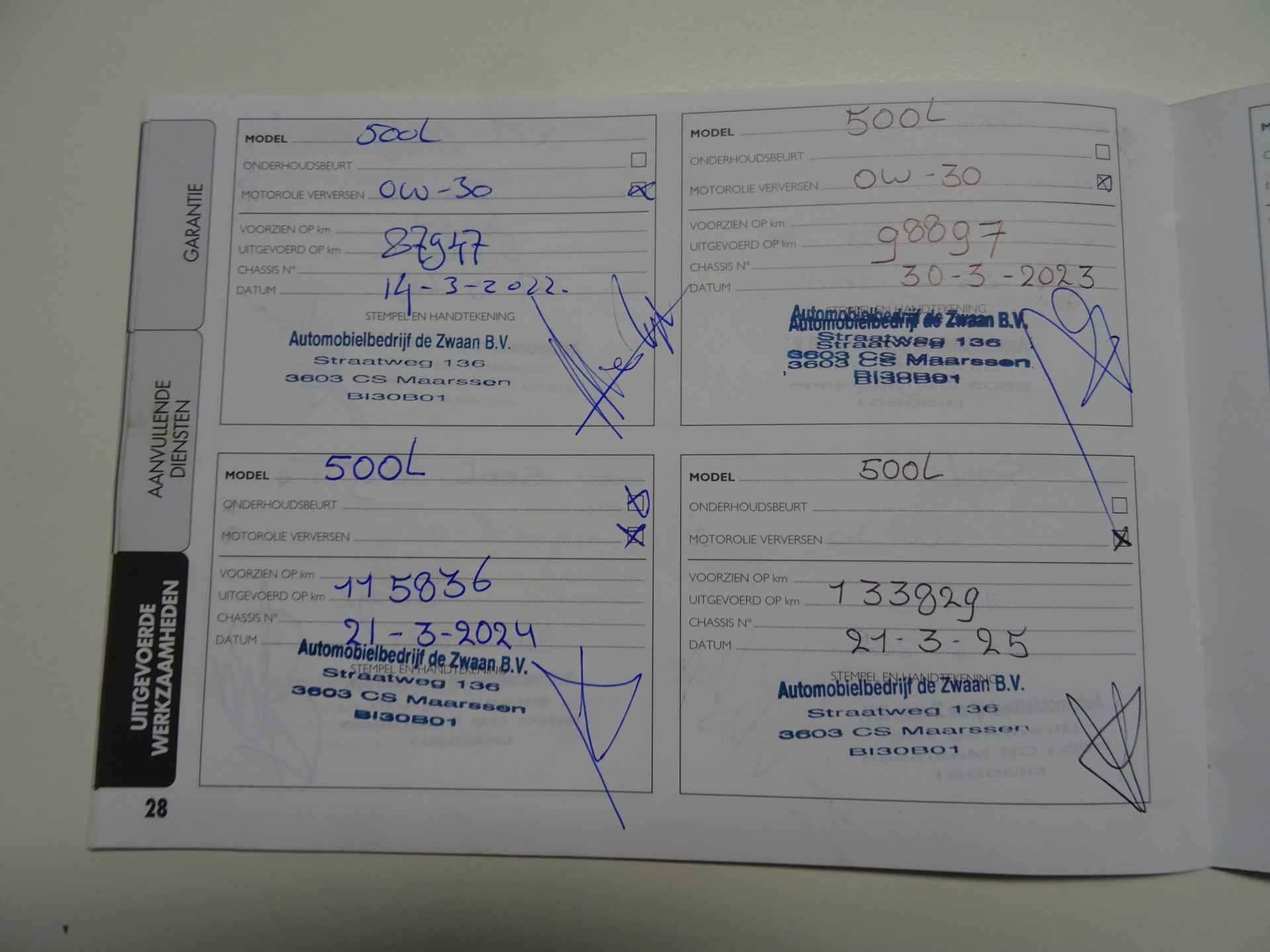 Laatste dealerbeurt is bij 133Dkm uitgevoerd.