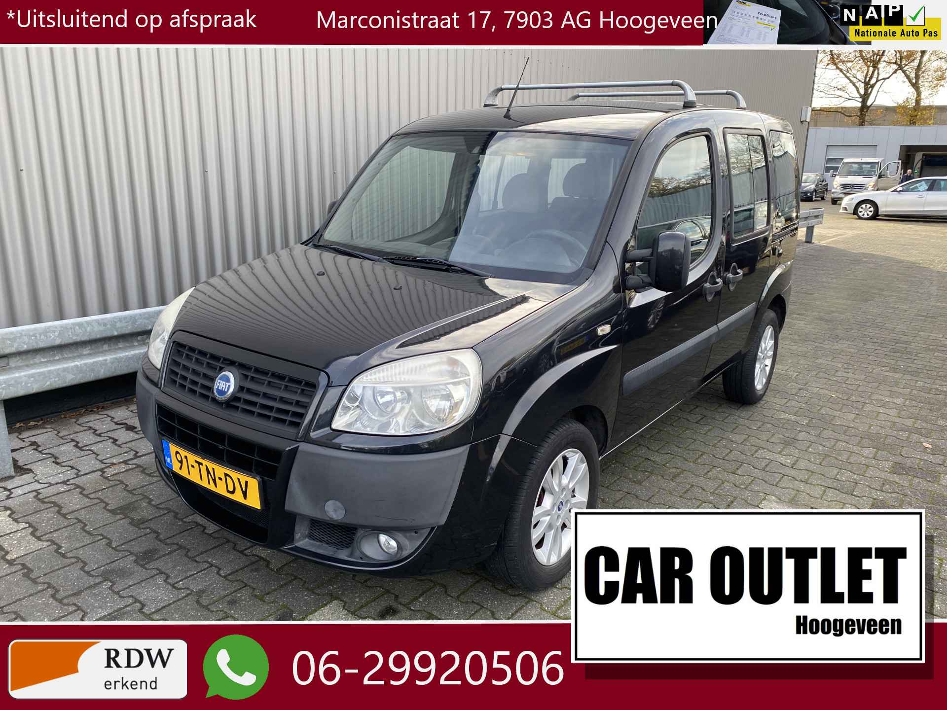 WIJ ZIJN ALLEEN OPEN OP TELEFONISCHE AFSPRAAK. Goed Rijdende Fiat Doblò 1.4 Family Plus met o.a. Klimaatregeling, Origineel Licht Metaal, Trekhaak en nieuwe APK. Inruil is uiteraard bespreekbaar.