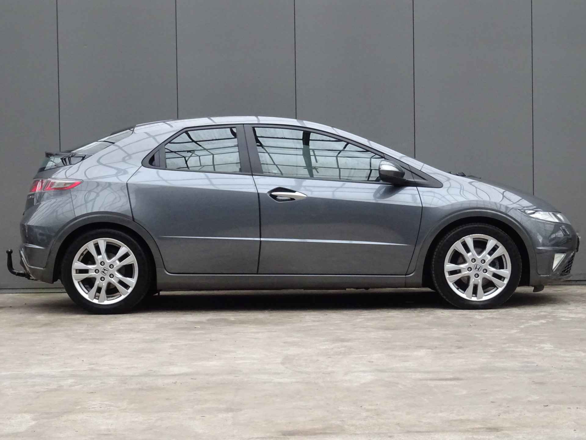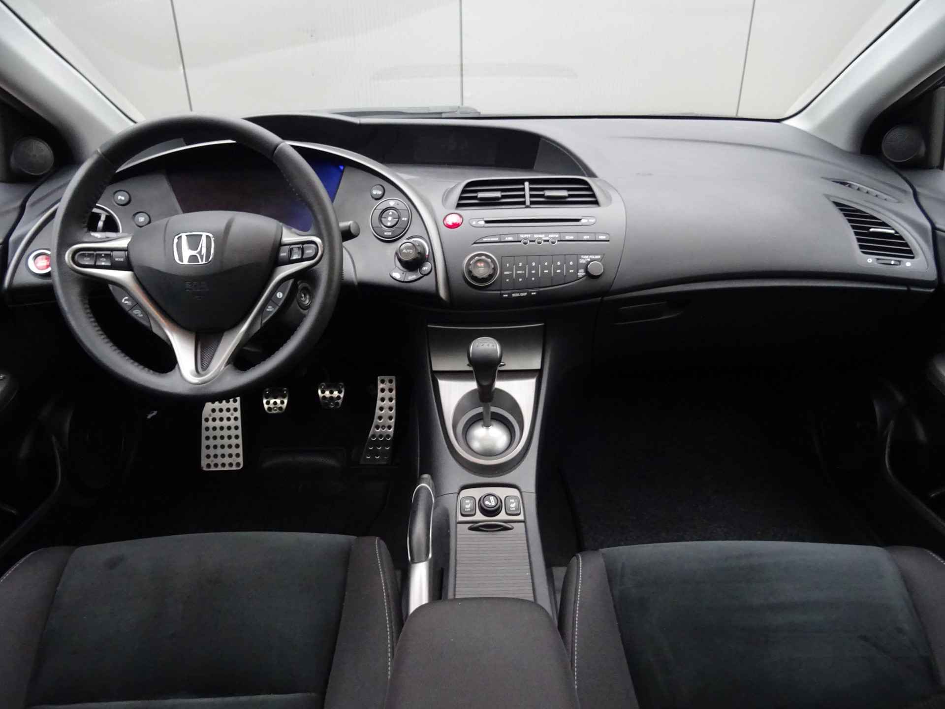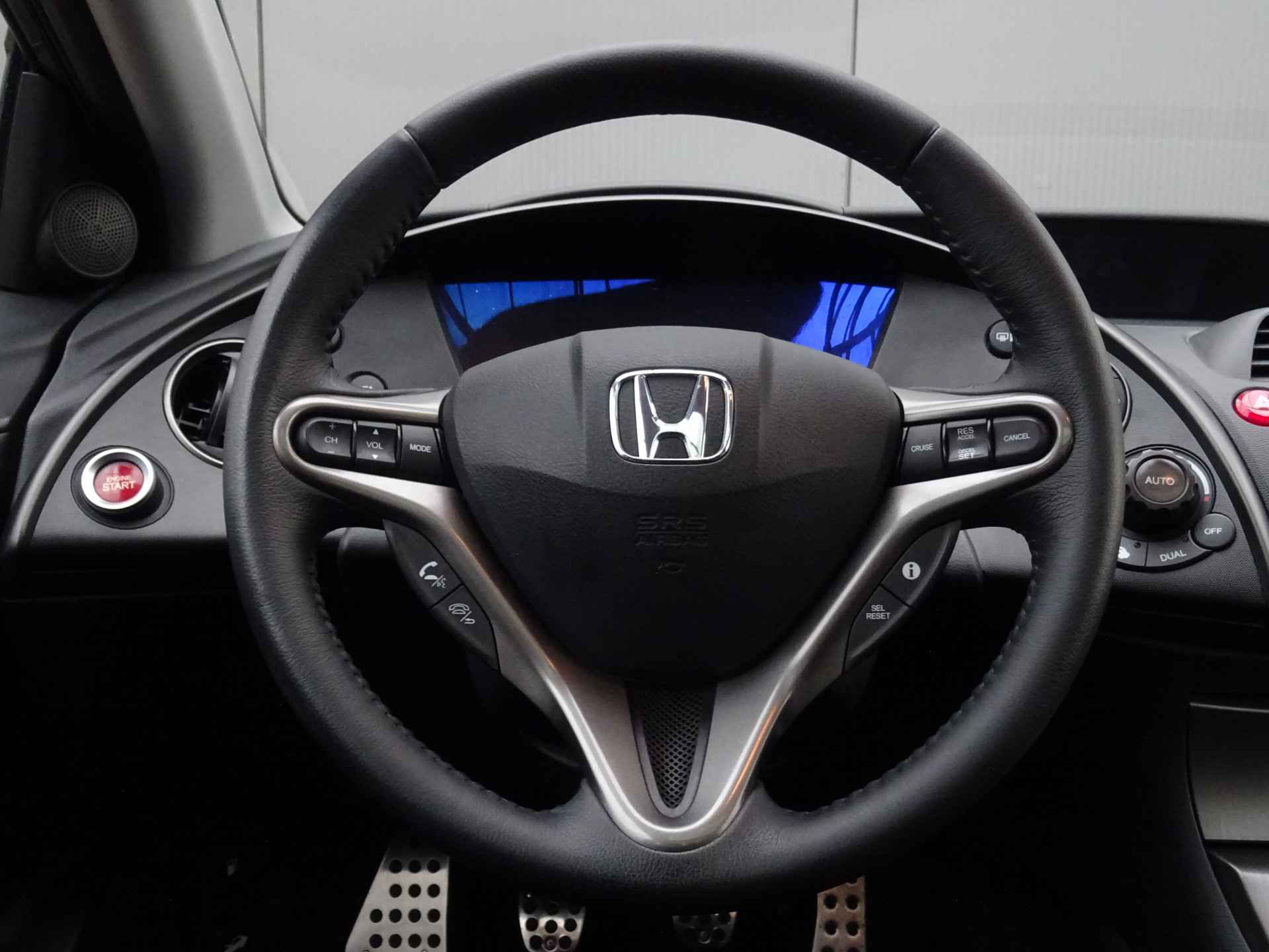 In deze Civic vindt u schakelaars op het stuur om het audiosysteem te bedienen. Of het buiten nu warm is of koud, dankzij automatische airconditioning is het binnen altijd behaaglijk. Parkeersensoren helpen u tijdens het in- en uitparkeren. De automatisch inschakelbare verlichting en regensensor zorgen dat onderweg automatisch de verlichting en de ruitenwissers worden ingeschakeld. Daarmee nemen ze u veel werk uit handen. De voordelen van de aanwezige cruise control hoeven we niet uit te leggen. Een mooie, constante snelheid - niet te snel, niet te langzaam. Precies goed. En dan is deze auto ook nog eens voorzien van automatisch dimmende binnenspiegel, lederen stuur, centrale deurvergrendeling met afstandsbediening en boordcomputer.