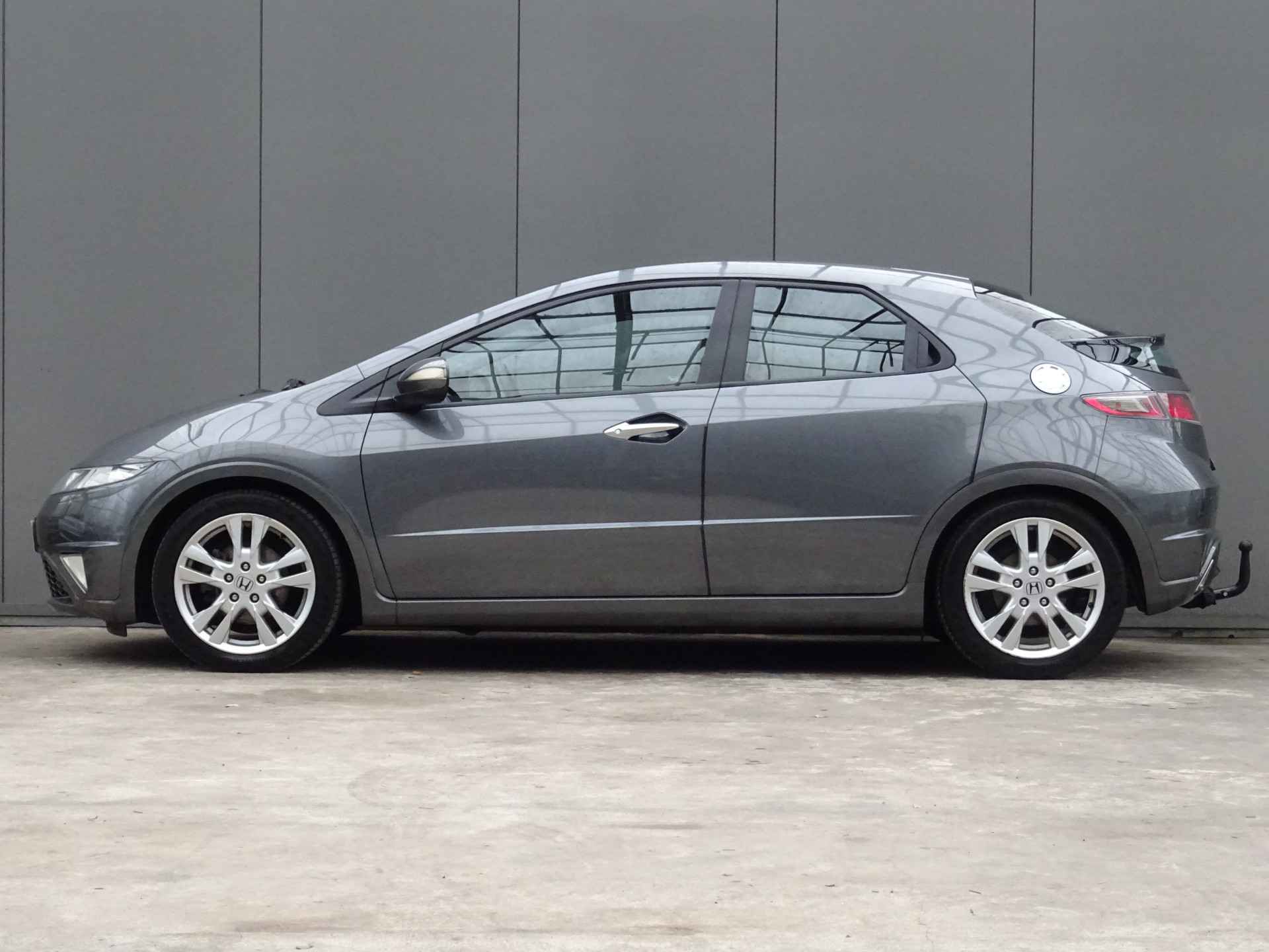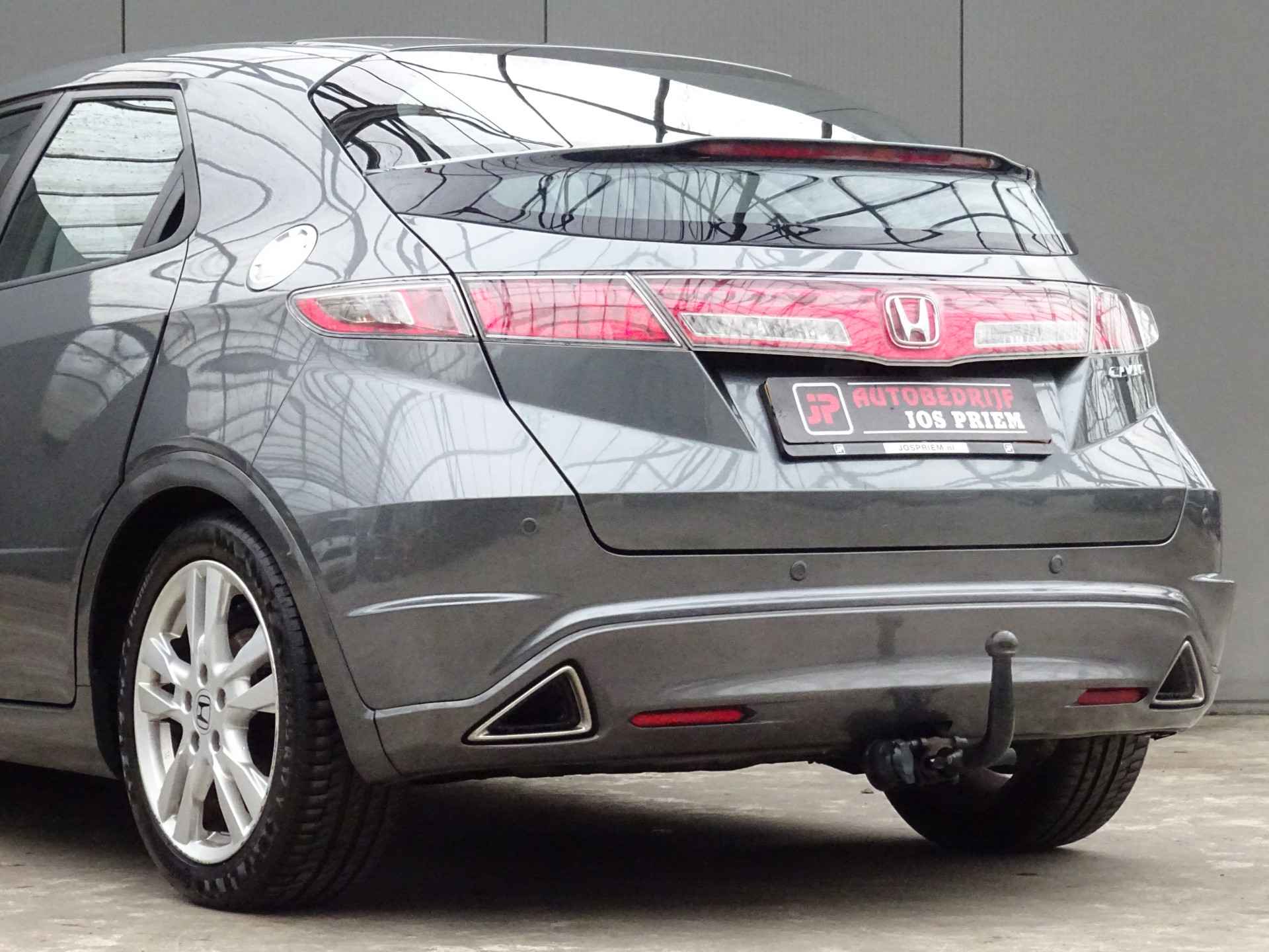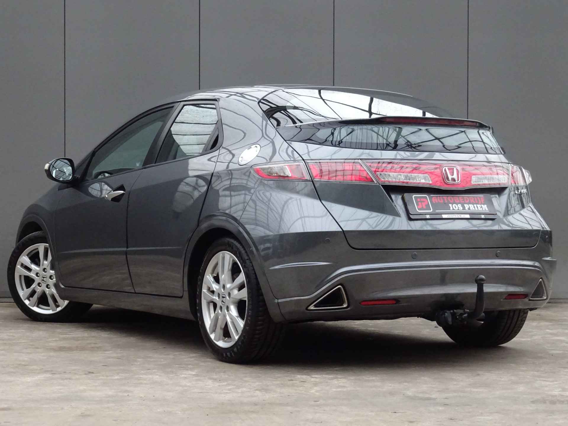 In deze Civic vindt u schakelaars op het stuur om het audiosysteem te bedienen. Of het buiten nu warm is of koud, dankzij automatische airconditioning is het binnen altijd behaaglijk. Parkeersensoren helpen u tijdens het in- en uitparkeren. De automatisch inschakelbare verlichting en regensensor zorgen dat onderweg automatisch de verlichting en de ruitenwissers worden ingeschakeld. Daarmee nemen ze u veel werk uit handen. De voordelen van de aanwezige cruise control hoeven we niet uit te leggen. Een mooie, constante snelheid - niet te snel, niet te langzaam. Precies goed. En dan is deze auto ook nog eens voorzien van automatisch dimmende binnenspiegel, lederen stuur, centrale deurvergrendeling met afstandsbediening en boordcomputer.