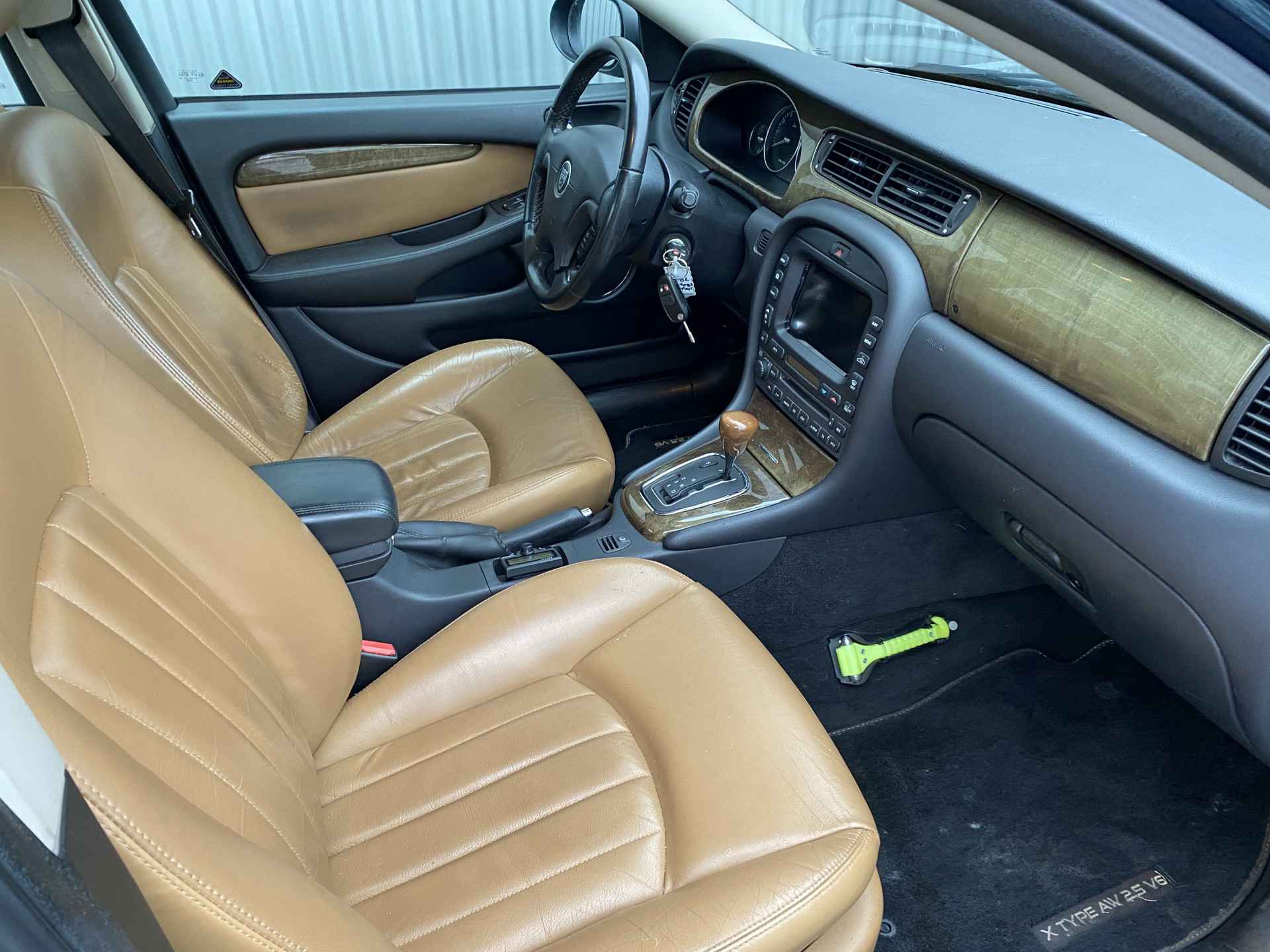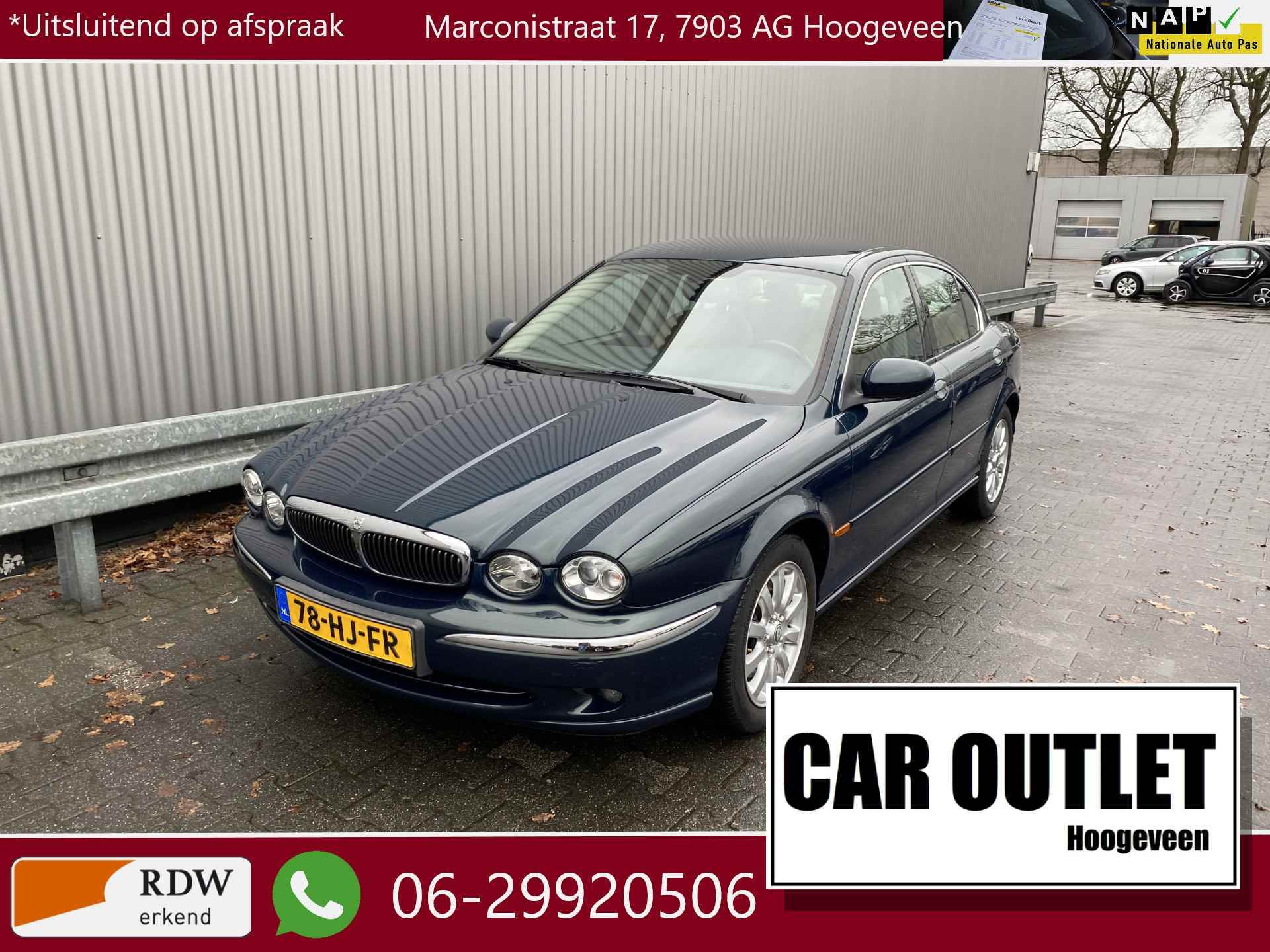 WIJ ZIJN ALLEEN OPEN OP TELEFONISCHE AFSPRAAK. Nette en goed rijdende Jaguar X-type 2.5 V6 Executive, slechts 183Dkm. NAP op de klok en met o.a. Automatische Klimaatregeling, Vol Lederen interieur, Navigatiesysteem, Bluetooth (Carkit), Cruise Control, Origineel Licht Metaal en Trekhaak. Deze unieke auto wordt geleverd met nieuwe APK en inruil is uiteraard bespreekbaar.