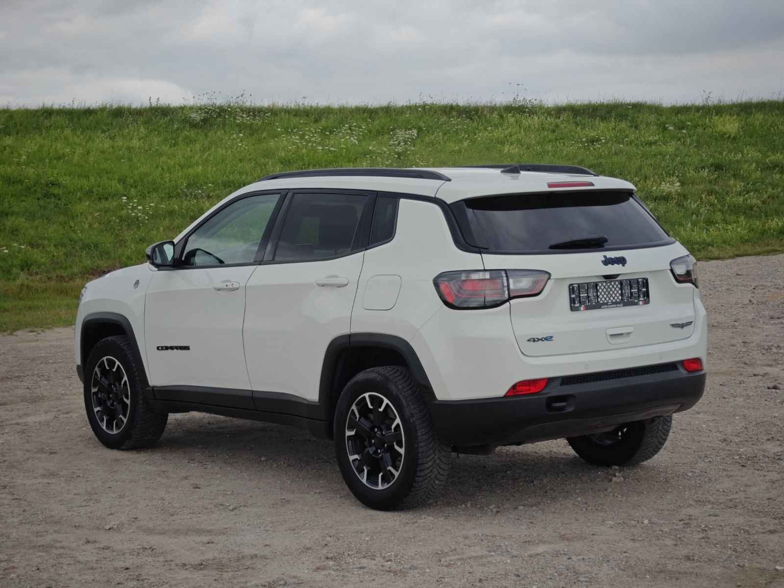 Prachtige en super luxe uitgevoerde Jeep Compass Trailhawk PHEV, de sticker op de motorkap is origineel maar kan verwijderd worden.