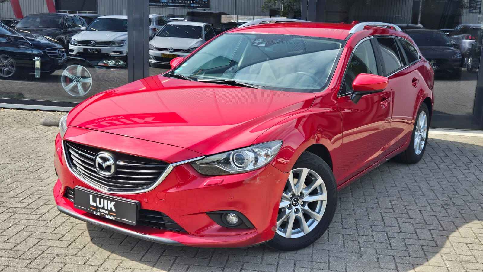Een Mazda 6 in de speciale lak Soulred Metallic en volledig dealeronderhouden bij de Mazda dealer. De Mazda heeft veel opties zoals lederen bekleding, achteruitrijcamera, Sound-systeem BOSE, sportstuur met audiobediening, stoelverwarming voor, Navigatiesysteem, Handsfree-installatie met Voice-Control en Bluetooth, Multi-informatiedisplay met Touchscreen-kleurendisplay (5,8 Inch), USB-interface, Multimediabus AUX-IN, Cruisecontrolsysteem, Parkeersensoren, Automatische airconditioning 2 zones etc.