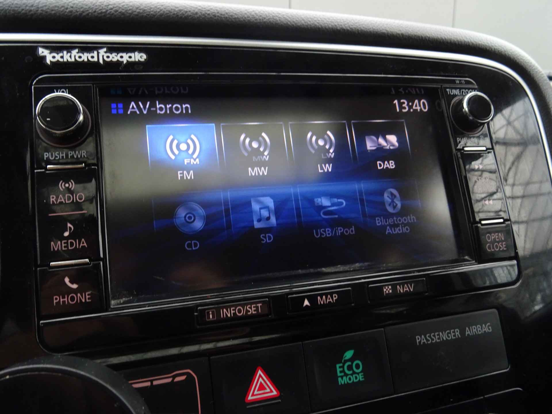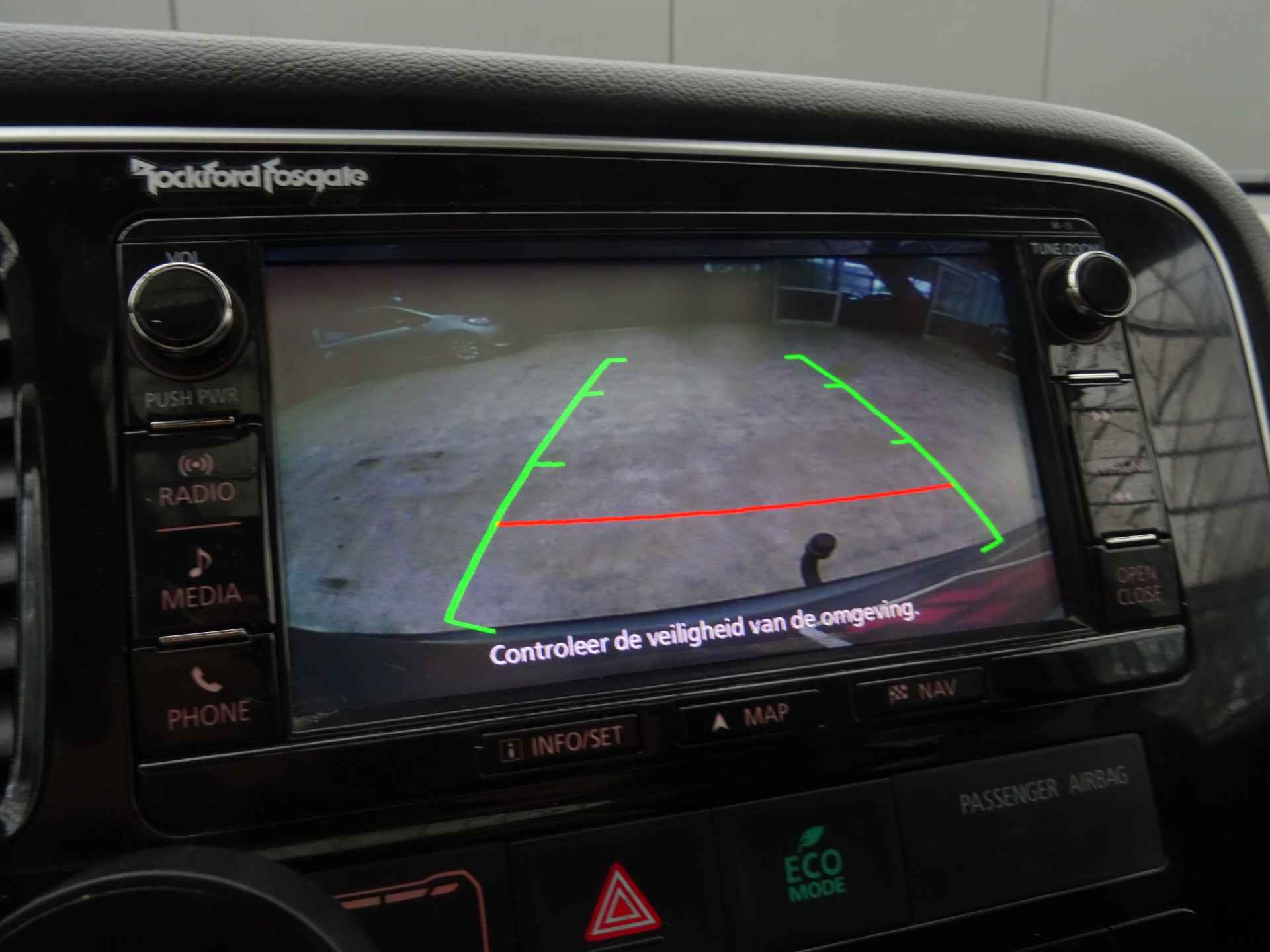 Het high performance audiosysteem met subwoofer staat garant voor een levendige en krachtige muziekweergave. Voor storingvrije digitale radio-ontvangst zorgt de DAB-ontvanger. Voor de belangrijkste functies van het geluidssysteem hoeft u uw blik niet van de weg te halen. De audiobediening bevindt zich op het stuur. Selecteer uw reisbestemming en het full map navigatiesysteem brengt u snel waar u moet zijn. Ook is de auto voorzien van electronic climate control. De achteruitrijcamera laat duidelijk zien hoeveel ruimte u nog heeft bij het inparkeren. Om de veiligheid onderweg te verhogen, heeft deze Mitsubishi zowel een automatisch inschakelbare verlichting als een regensensor aan boord, zodat hij zelf de verlichting en de ruitenwissers kan inschakelen. De centrale ontgrendeling gebeurt automatisch dankzij de keyless entry. Ook is de Mitsubishi uitgerust met: multifunctioneel lederen stuur en automatisch dimmende binnenspiegel.