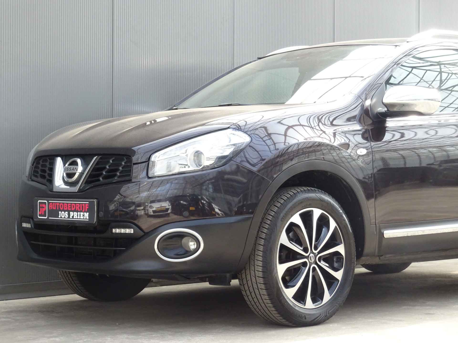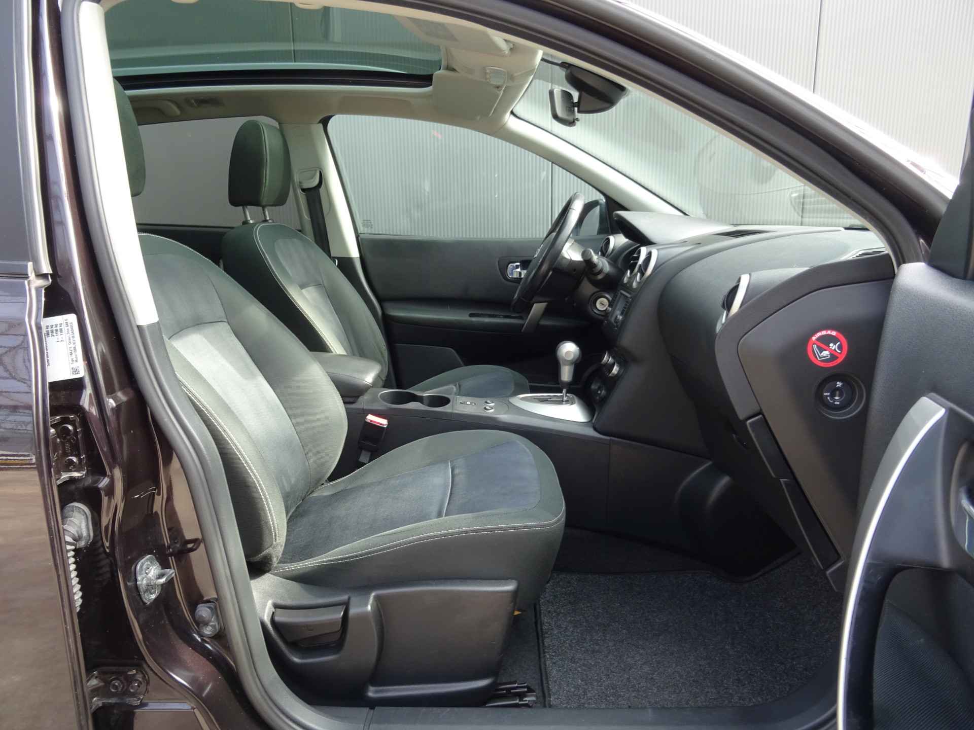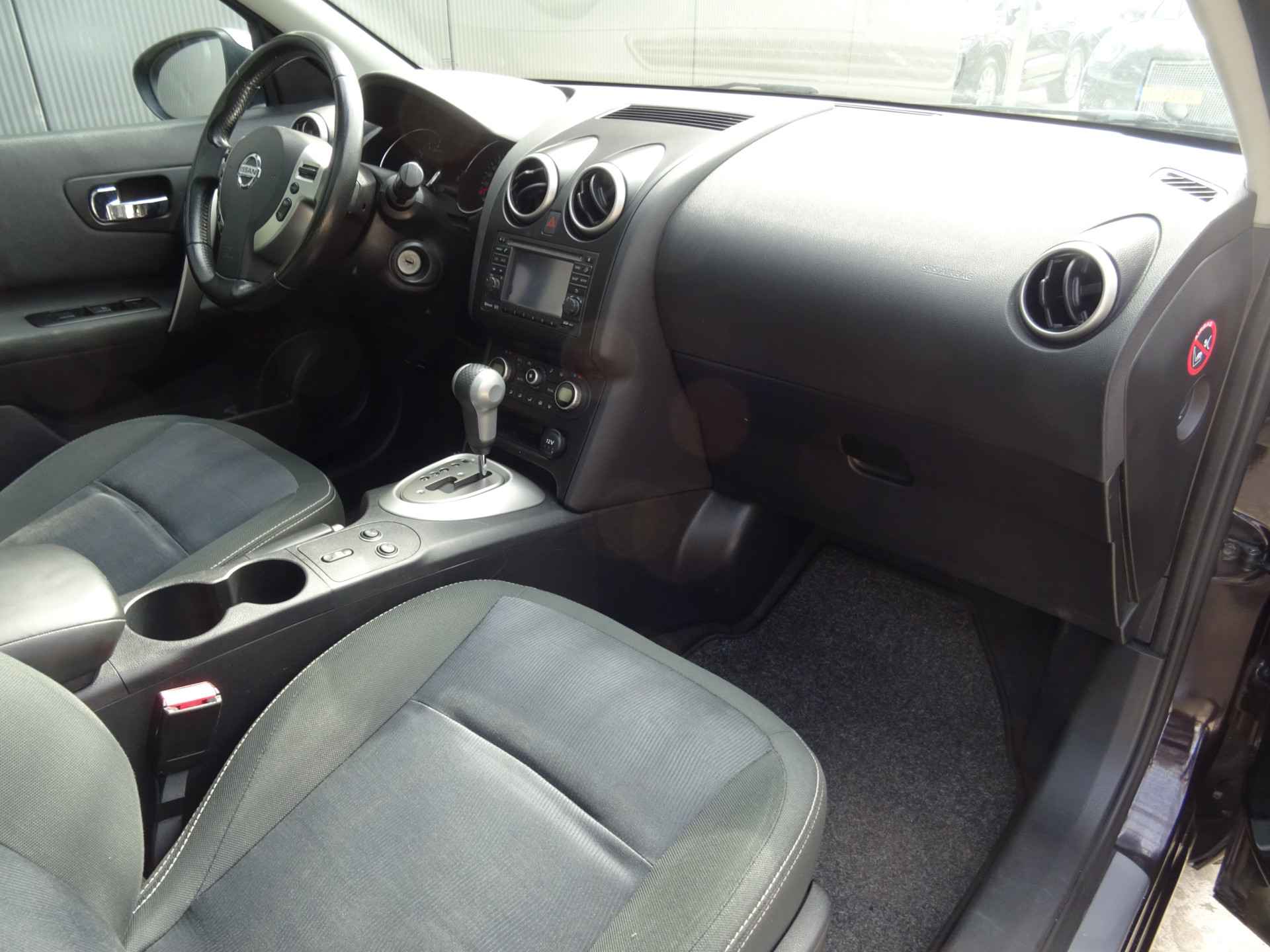 Uw nieuwe auto staat klaar voor vertrek. Stap gerust in, deze Nissan Qashqai heeft 206692 kilometer gelopen en is van het bouwjaar 2011. Voor de aandrijving van deze SUV zorgen een 142 PK benzinemotor en een automatische transmissie. Tijdens gure dagen is het prettig zitten in de verwarmbare voorstoelen. Het interieur baadt in een zee van licht door het glazen panoramadak. Bij de rijke uitrusting horen ook 18 inch lichtmetalen velgen, elektrisch inklapbare buitenspiegels, donker getint glas achter, verstelbare lendensteunen en elektrisch bedienbare ramen achter.