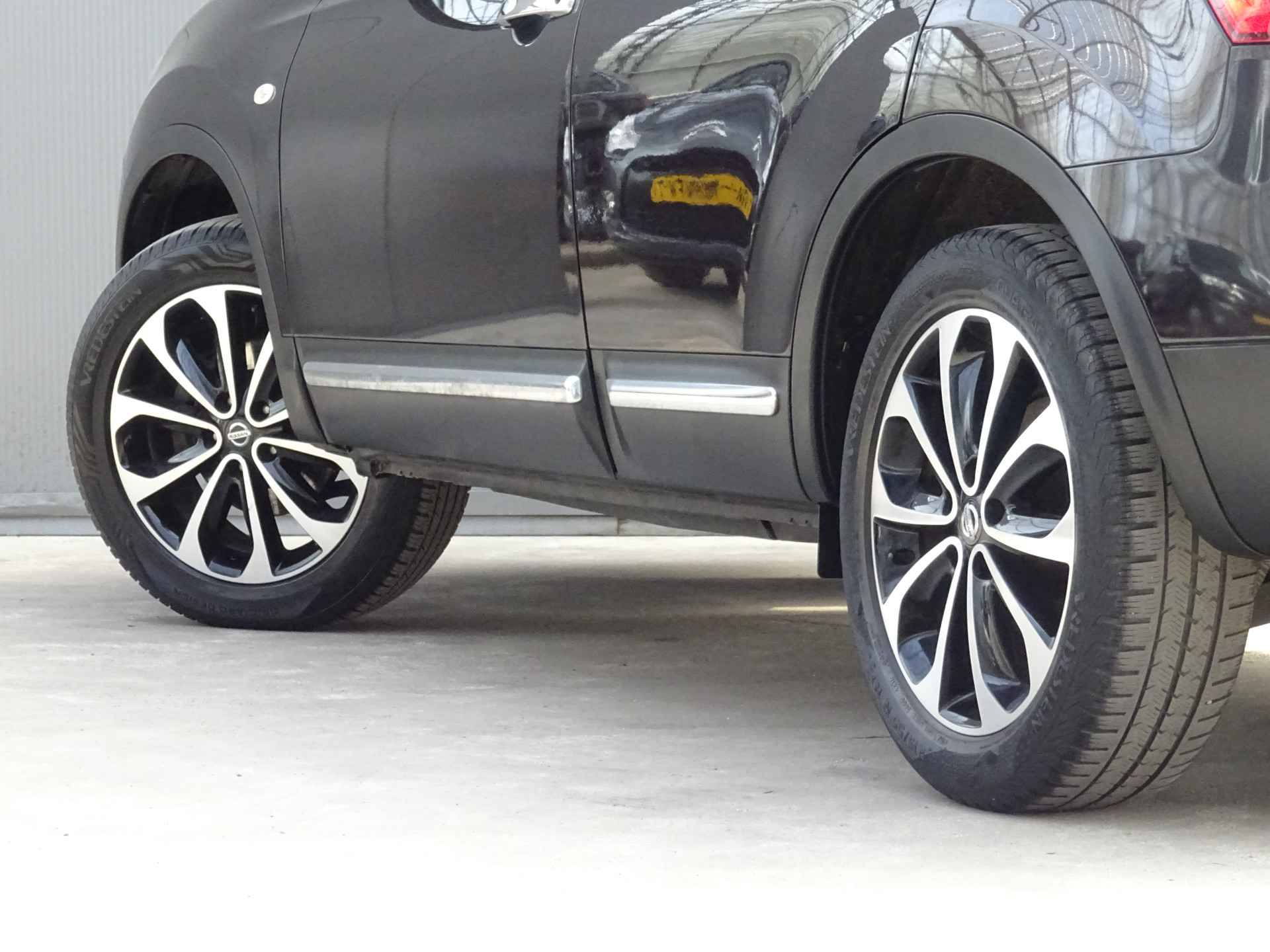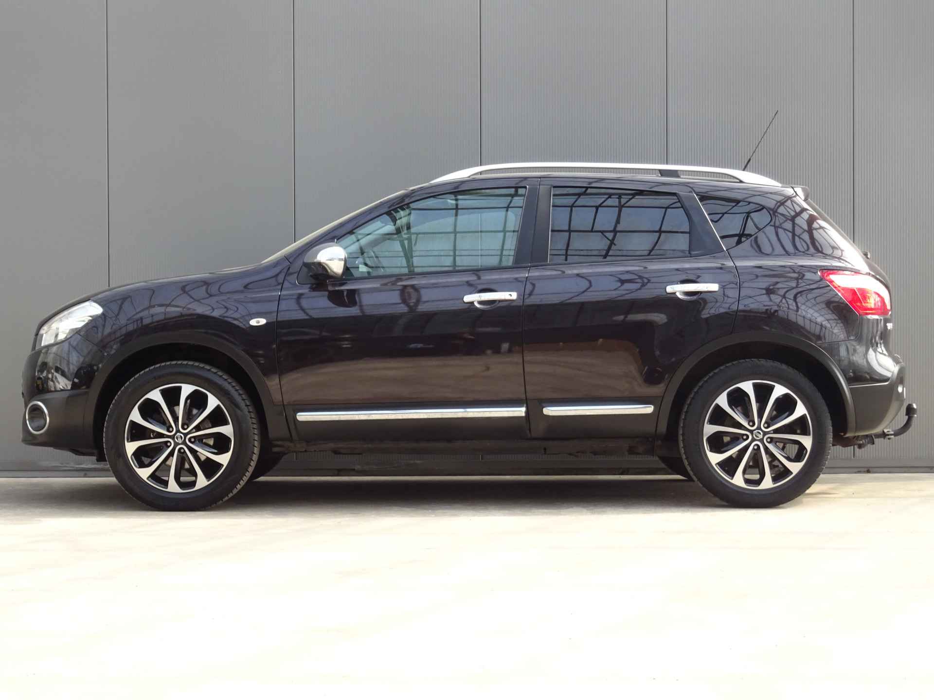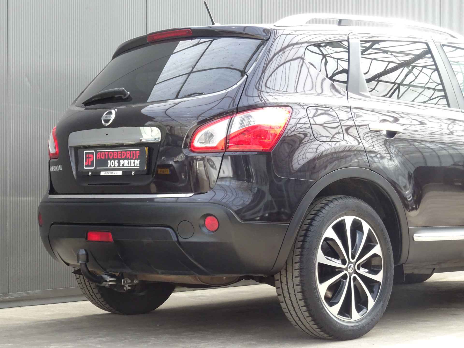 Uw nieuwe auto staat klaar voor vertrek. Stap gerust in, deze Nissan Qashqai heeft 206692 kilometer gelopen en is van het bouwjaar 2011. Voor de aandrijving van deze SUV zorgen een 142 PK benzinemotor en een automatische transmissie. Tijdens gure dagen is het prettig zitten in de verwarmbare voorstoelen. Het interieur baadt in een zee van licht door het glazen panoramadak. Bij de rijke uitrusting horen ook 18 inch lichtmetalen velgen, elektrisch inklapbare buitenspiegels, donker getint glas achter, verstelbare lendensteunen en elektrisch bedienbare ramen achter.