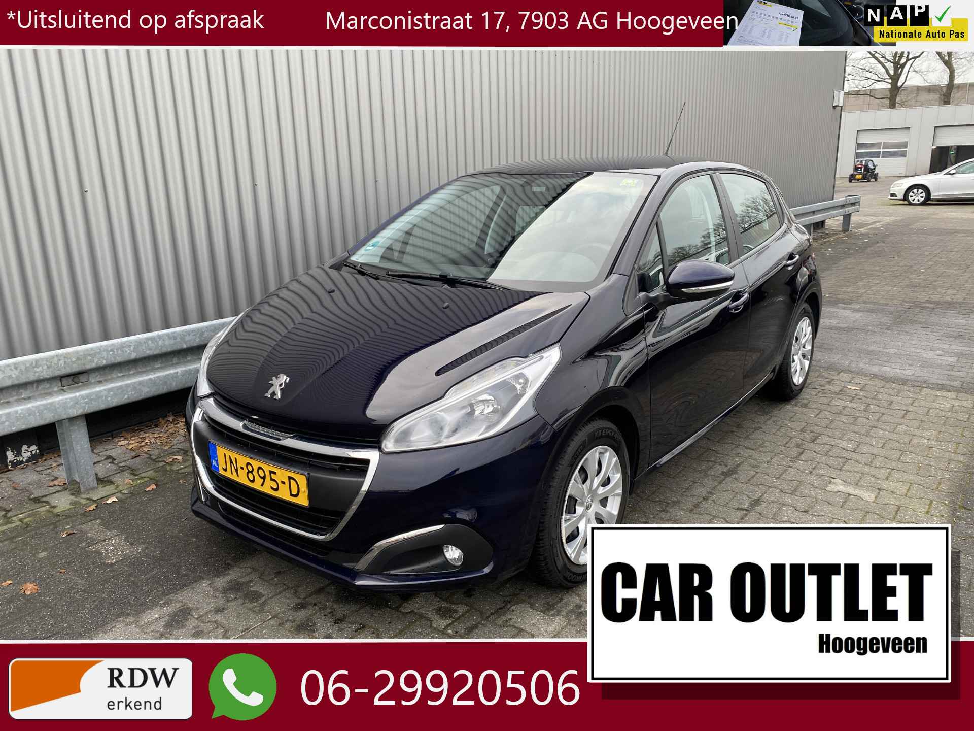 WIJ ZIJN ALLEEN OPEN OP TELEFONISCHE AFSPRAAK. Nette en goed rijdende 5 Deurs Peugeot 208 1.2 PureTech Blue Lion, slechts 43Dkm. NAP op de klok en met o.a. Klimaatregeling, Navigatiesysteem, Bluetooth (Carkit), Cruise Control, Park Distance Control, Trekhaak en nieuwe APK. Inruil is uiteraard bespreekbaar.