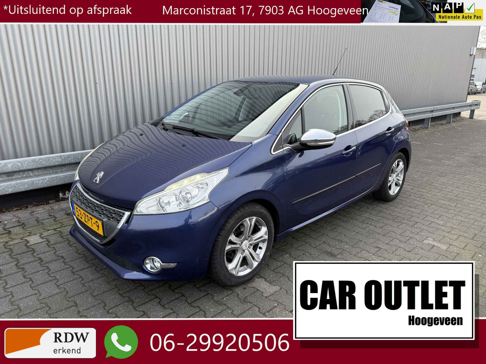 WIJ ZIJN ALLEEN OPEN OP TELEFONISCHE AFSPRAAK. Nette en goed rijdende 5 Deurs Peugeot 208 1.6 VTi Allure met o.a. Gescheiden individueel instelbare Klimaatregeling, Navigatiesysteem, Bluetooth (Carkit), Cruise Control, Park Distance Control, Origineel Licht Metaal, Trekhaak en nieuwe APK. Inruil is uiteraard bespreekbaar.