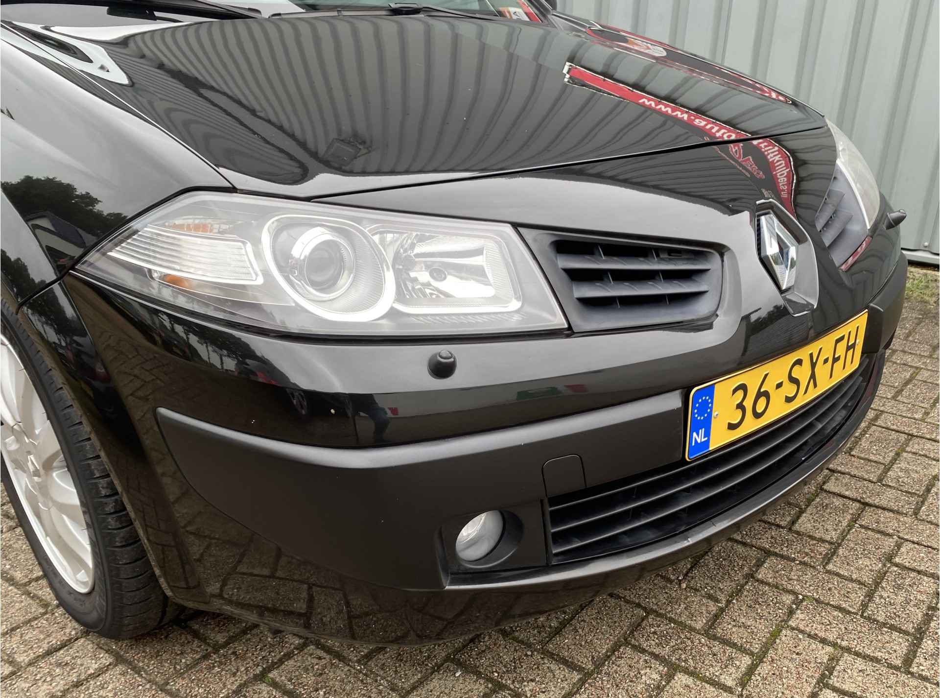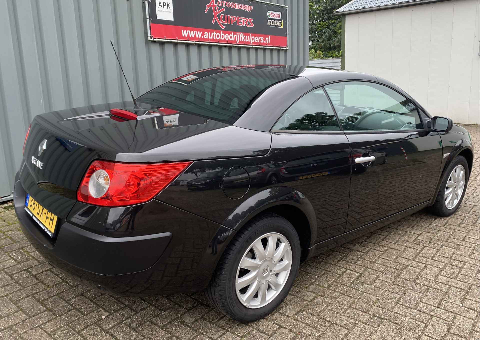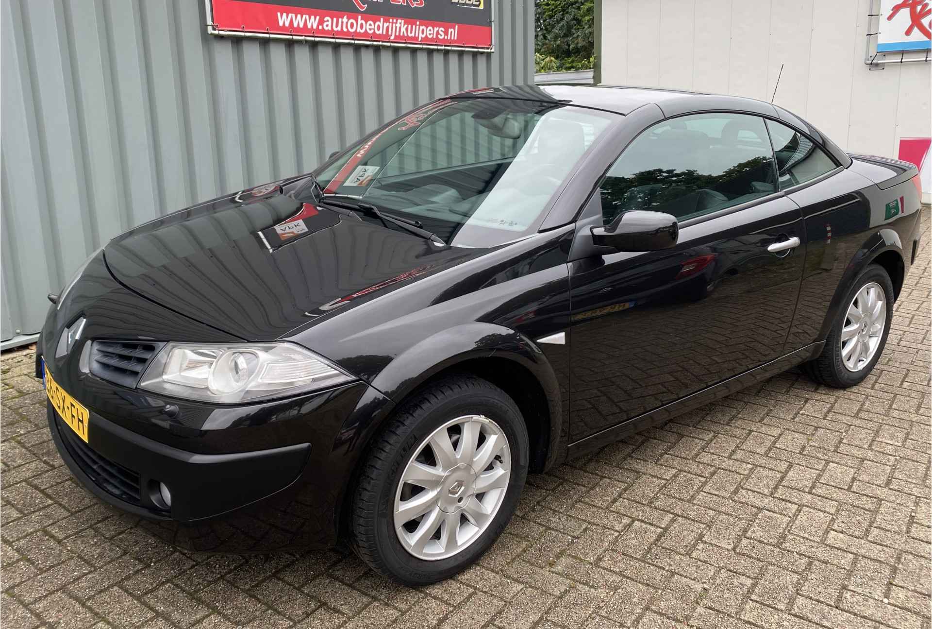 Zodra de zon zich laat zien, kunt u heerlijk genieten achter het stuur van deze cabriolet. Goede prestaties, aantrekkelijke extra's en perfect onderhouden: deze Renault Mégane Coupé-Cabriolet stelt zich graag aan u voor! De aandrijving van deze Renault wordt verzorgd door een viercilinder benzinemotor en een handgeschakelde vijfversnellingsbak. Deze Renault Mégane Coupé-Cabriolet komt in de luxe uitvoering, inclusief lederen interieur. Het blijft een indrukwekkend schouwspel als de elektrisch bedienbare kap opent en sluit. Xenonverlichting zorgt voor een heldere witblauwe lichtkleur en een scherp lichtbeeld. Bij de zeer complete uitrusting van deze auto behoren ook 16 inch lichtmetalen velgen en in hoogte verstelbare voorstoelen.