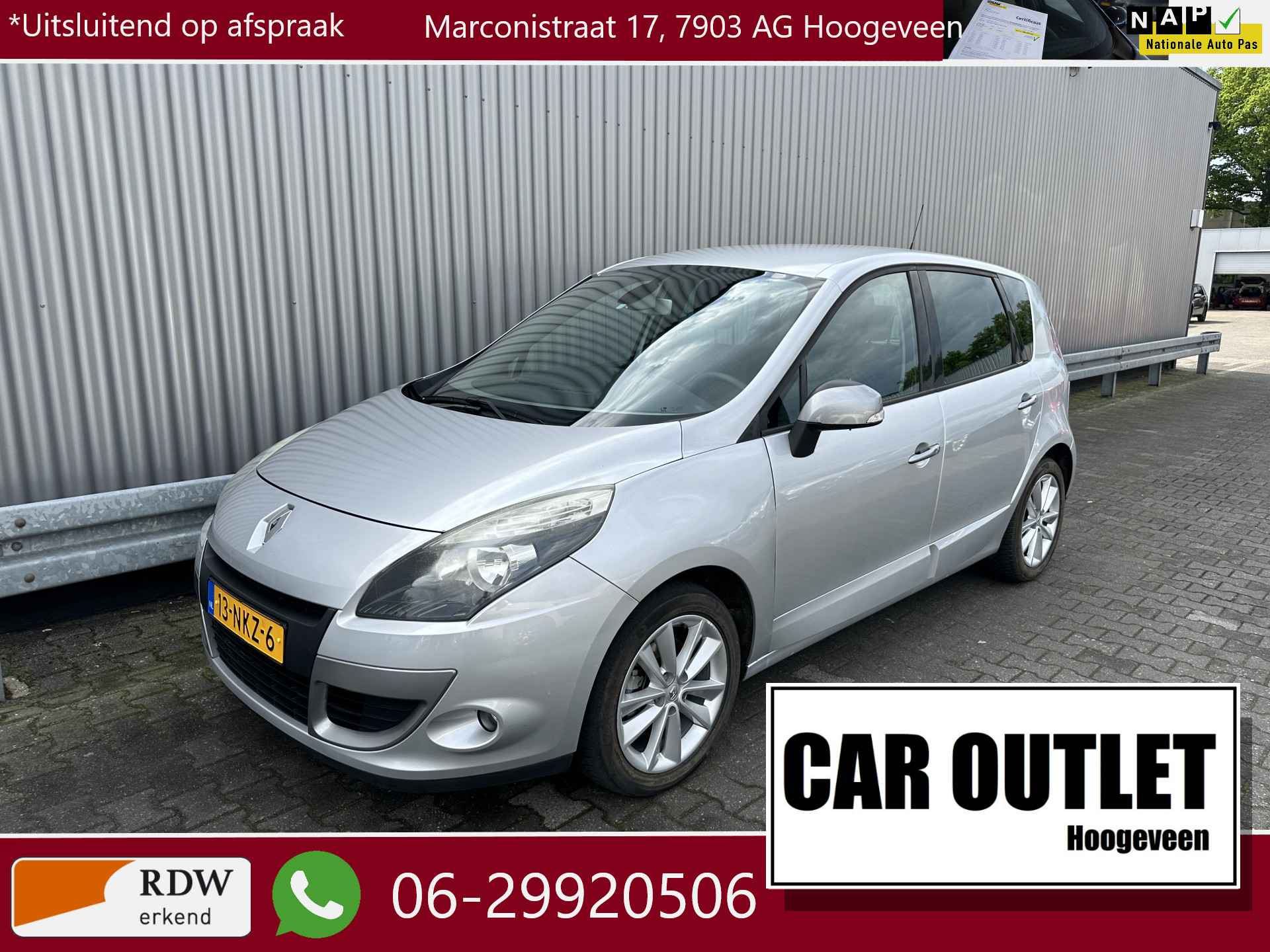 WIJ ZIJN ALLEEN OPEN OP TELEFONISCHE AFSPRAAK. Goed Rijdende Renault Scénic 1.6 Celsium met o.a. Automatische Klimaatregeling, Navigatiesysteem, Cruise Control, Origineel Licht Metaal, Trekhaak en nieuwe APK. Inruil is uiteraard bespreekbaar.