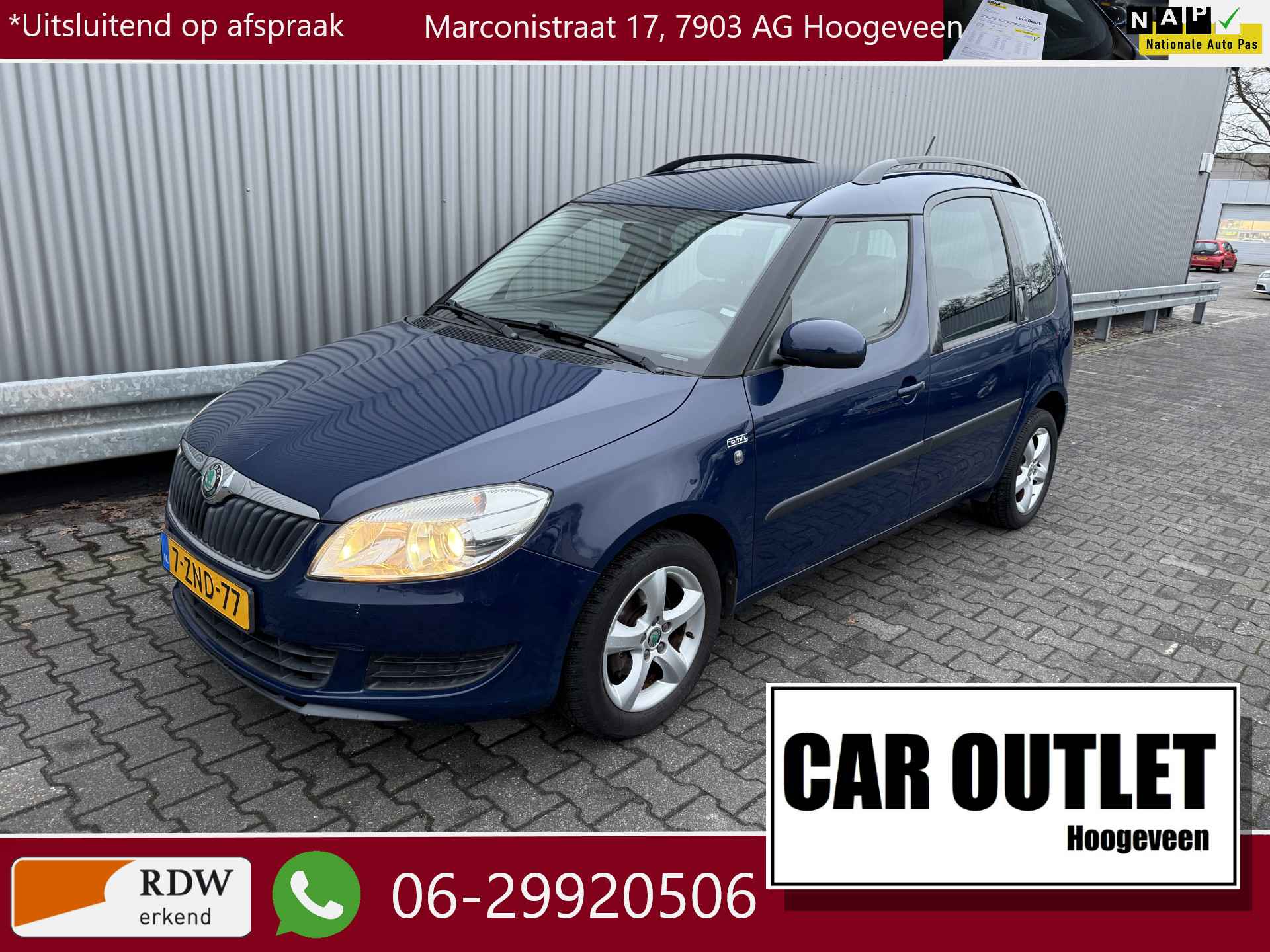WIJ ZIJN ALLEEN OPEN OP TELEFONISCHE AFSPRAAK. Nette en goed rijdende Skoda Roomster met slechts 77Dkm. Auto heeft een nieuwe APK en inruil is bespreekbaar.