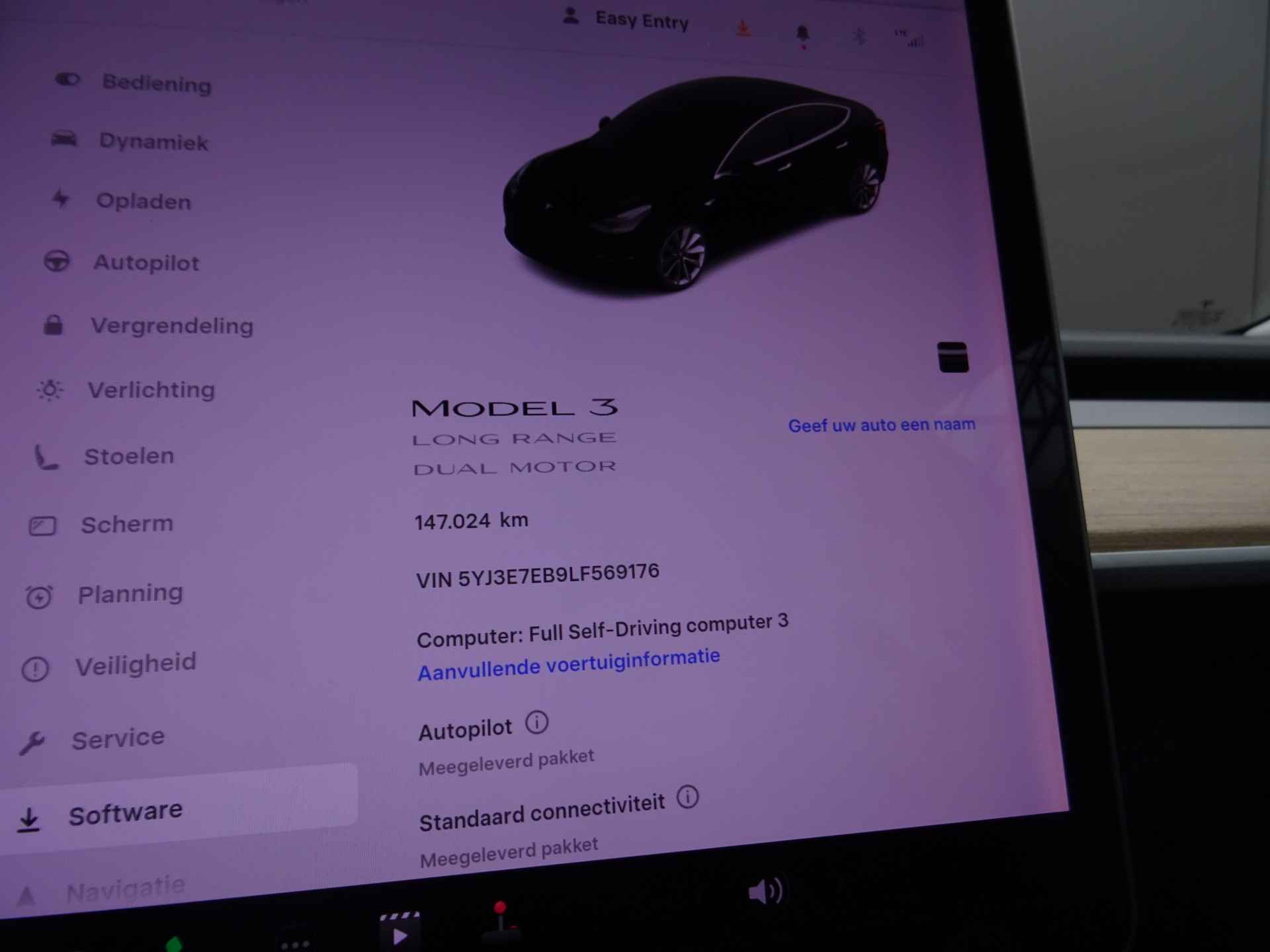 Zoals u mag verwachten van deze Tesla Model 3 is hij uitgerust met een reeks aan actieve veiligheidssystemen. Botsingen met een voorligger gebeuren relatief vaak. De forward collision warning slaat tijdig alarm als dat risico ontstaat, zodat u kunt ingrijpen. De veiligheidsoptie van de lane assist is een rijstrookhulp die ervoor zorgt dat u niet ongecontroleerd van baan wisselt. De auto is ook uitgerust met dodehoekdetectie en autonoom remsysteem.