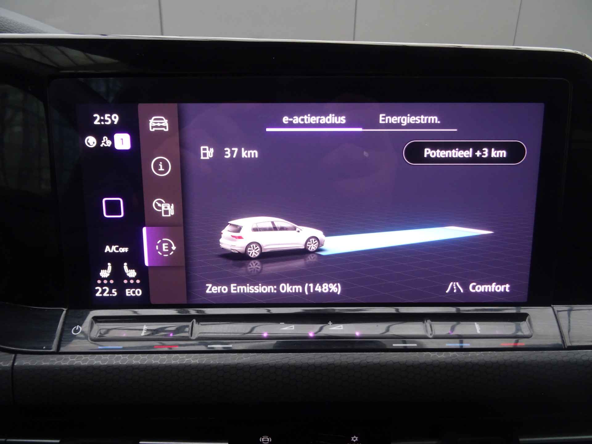 Het digitale dashboard vertelt u alles wat u wilt weten voor een slimme, comfortabele en veilige rit. Afstand schatten bij het achteruitrijden? Niet nodig. U weet het precies, dankzij de achteruitrijcamera. Met adaptive cruise control houdt deze auto automatisch afstand tot uw voorligger. Kop aan kont langzaam rijden: dan is afstand houden soms lastig. De file assistent helpt en zorgt automatisch voor veilige ruimte tot de voorligger. Ook als die tot stilstand komt. Deze auto gaat met u in gesprek. Hij vertelt u dankzij remote services alles over de status van diverse onderdelen en laat zich desgevraagd ook activeren. Gewoon via uw smartphone. De Volkswagen is standaard voorzien van: dashboard met spraakbediening, full map navigatiesysteem, achteropkomend verkeer waarschuwing, kruisend verkeer detectie, electronic climate control en schakelpaddles aan het stuur.