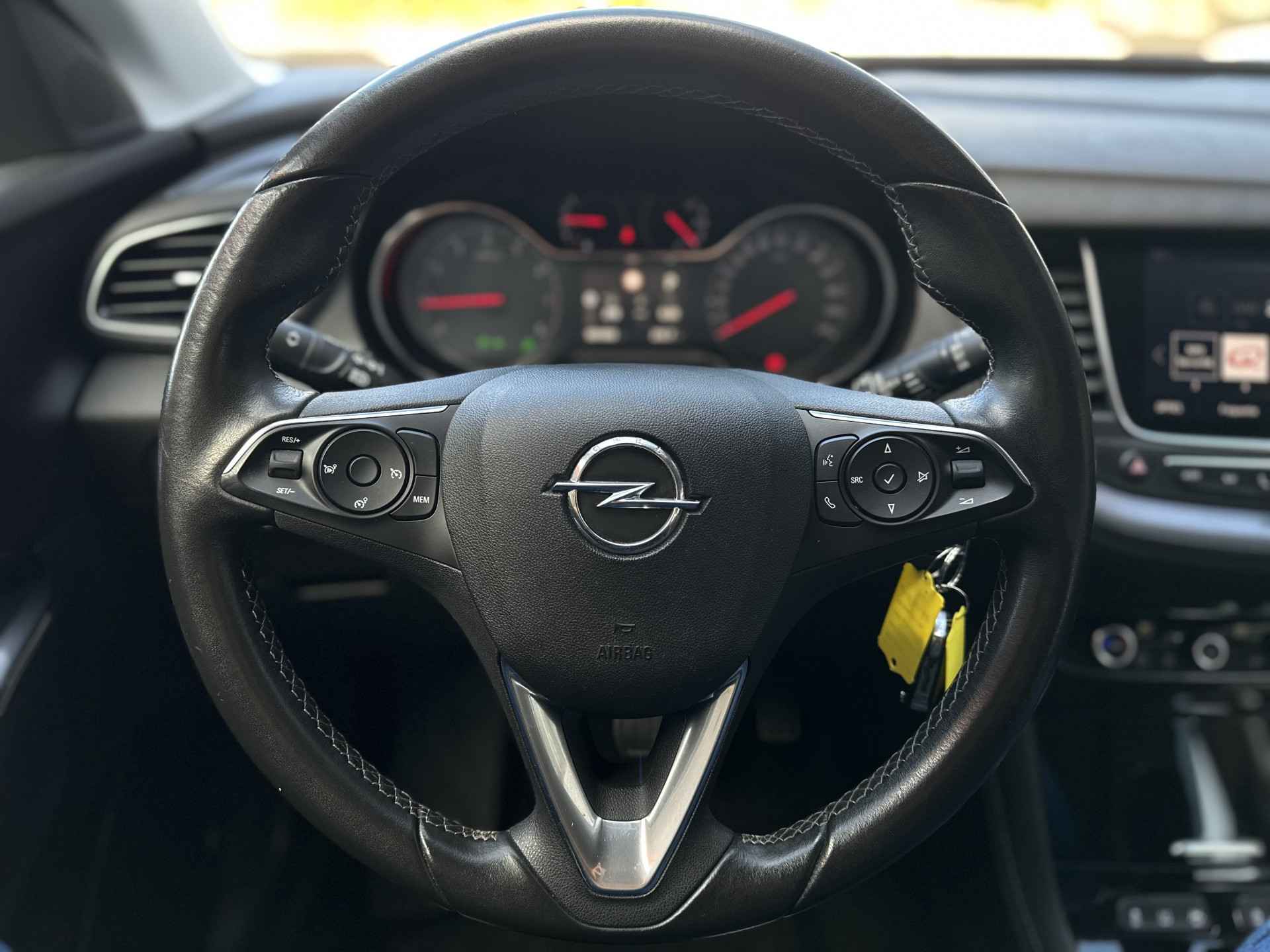 Ontspannen en zorgeloos autorijden, dat doet u met deze Opel Grandland X. Deze auto uit het bouwjaar 2019 heeft 81003 kilometer gelopen. In deze SUV vindt u een driecilinder benzinemotor en een automatische transmissie. De achterklep opent automatisch met een druk op de knop. Handig als u met volle handen staat. Bij de uitrusting van deze auto horen onder meer 18 inch lichtmetalen velgen, LED-dagrijverlichting, donker getint glas achter, in delen neerklapbare achterbank, LED-achterlichten en snelheidsafhankelijke stuurbekrachtiging.