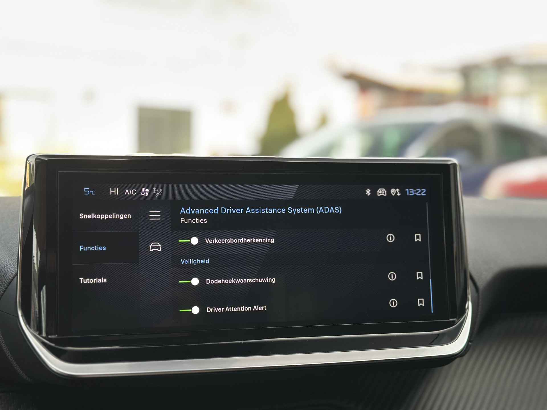 Als bestuurder van deze Peugeot bent u nooit alleen. U wordt onderweg bijgestaan door technologische hulpmiddelen die samen met u de weg in de gaten houden. Als het nodig is, grijpen ze zelfs in, door te remmen of bij te sturen. Bij de veiligheidssystemen van deze auto hoort ook de verkeersbord-detectie. Die leest tijdens het rijden als het ware met u mee en attendeert u op de significante verkeersborden langs en boven de weg. Ongemerkt buiten de rijstrook raken? Nee hoor, het Lane-keeping systeem waarschuwt en corrigeert. De actieve dodehoekdetectie voorkomt dat u een voertuig over het hoofd ziet en waarschuwt tijdig. U bent mede dankzij forward collision warning system, hill hold functie, brake assist, vermoeidheidsherkenning en bandenspanningcontrolesysteem steeds veilig onderweg.