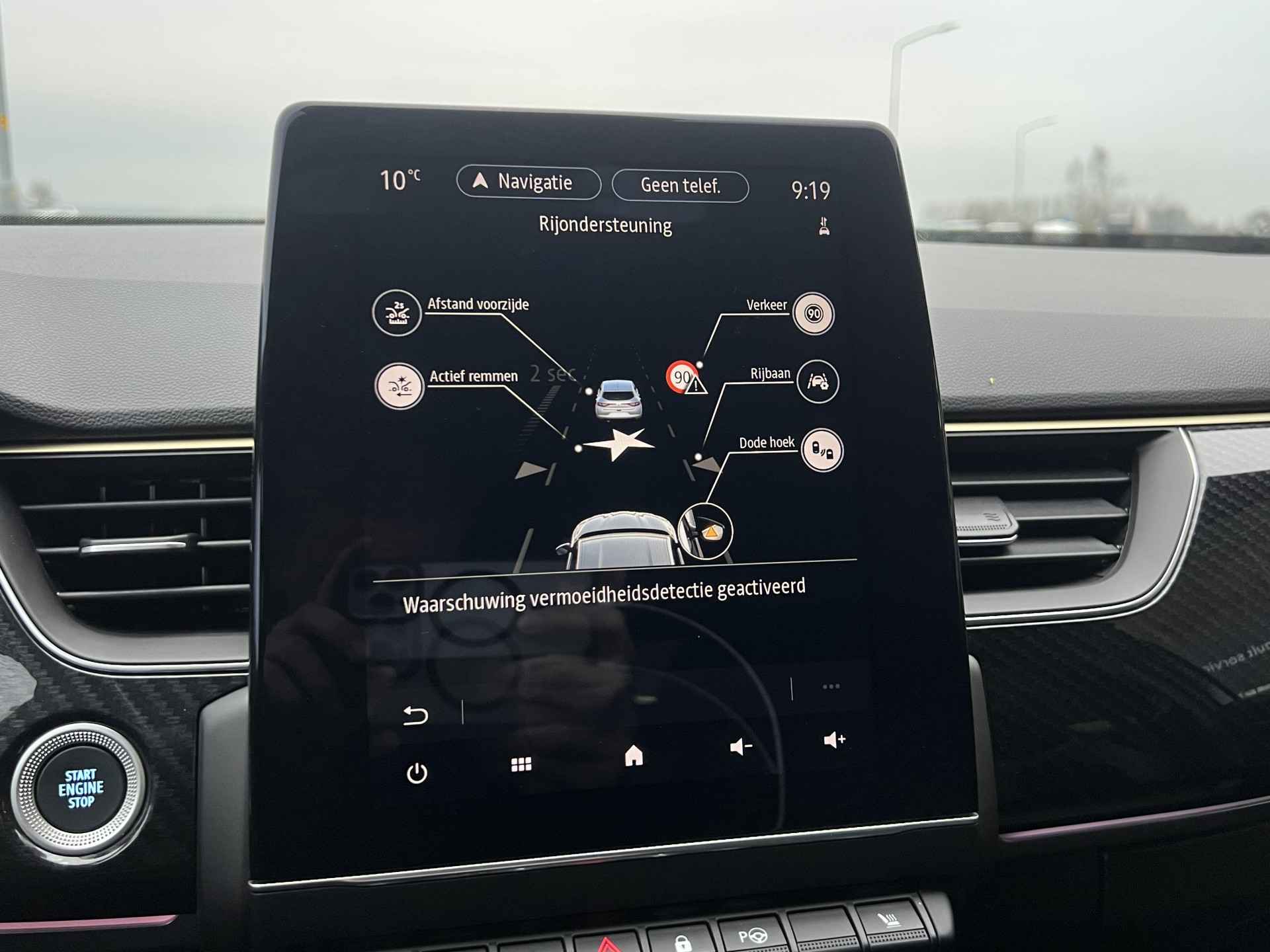 Aan boord van deze Renault houden verschillende geavanceerde systemen voor u de weg in de gaten. Ze waarschuwen u voor noodsituaties en kunnen in een aantal gevallen ook zelf ingrijpen. Onderweg fungeert de verkeersbord-detectie als het ware als uw bijrijder en attendeert u op de verkeersborden langs de weg. Het Lane-keeping systeem zorgt dat u mooi binnen de lijntjes blijft. Ongemerkt buiten de rijstrook komen is er niet meer bij. Een veilige extra is de Brake Assist. Uit onderzoek blijkt dat bestuurders bij een noodstop niet het maximum uit hun remkracht halen. Met deze automatische remondersteuning wel. Ook helpen het dodehoekdetectie, hill hold functie en bandenspanningcontrolesysteem, uw rit tot een veilige rit te maken.