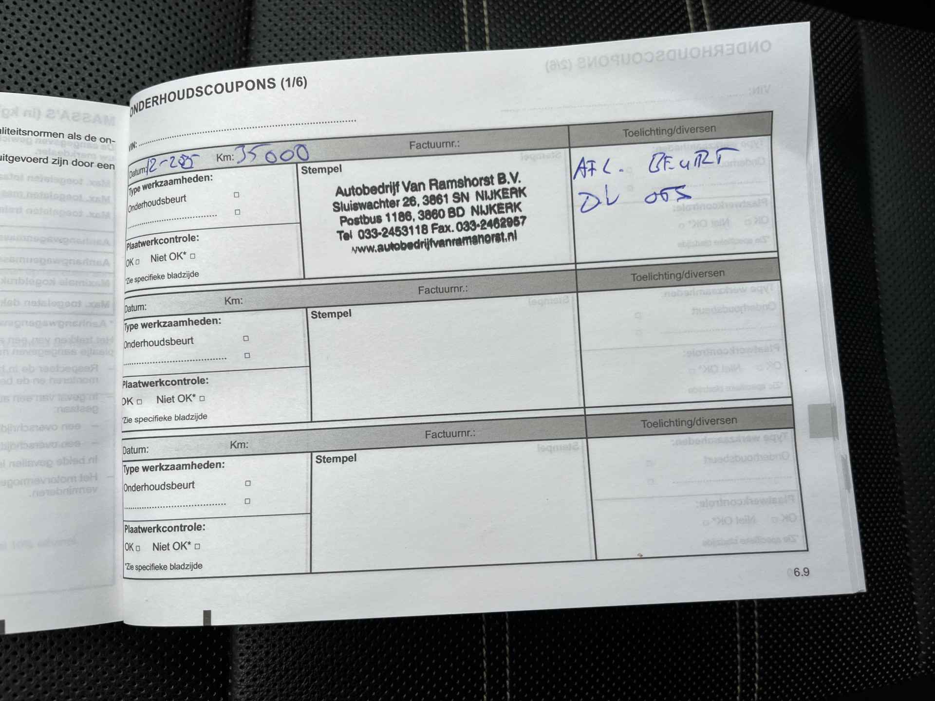In de vraagprijs is een geldige APK inbegrepen. Het rijklaar maken van de auto kost €795. In dit bedrag zijn de volgende zaken inbegrepen: